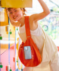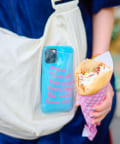 内ポケットがあるのに加え、表側にはロゴ入りクリアポケットもあり遊び心溢れるデザイン。
