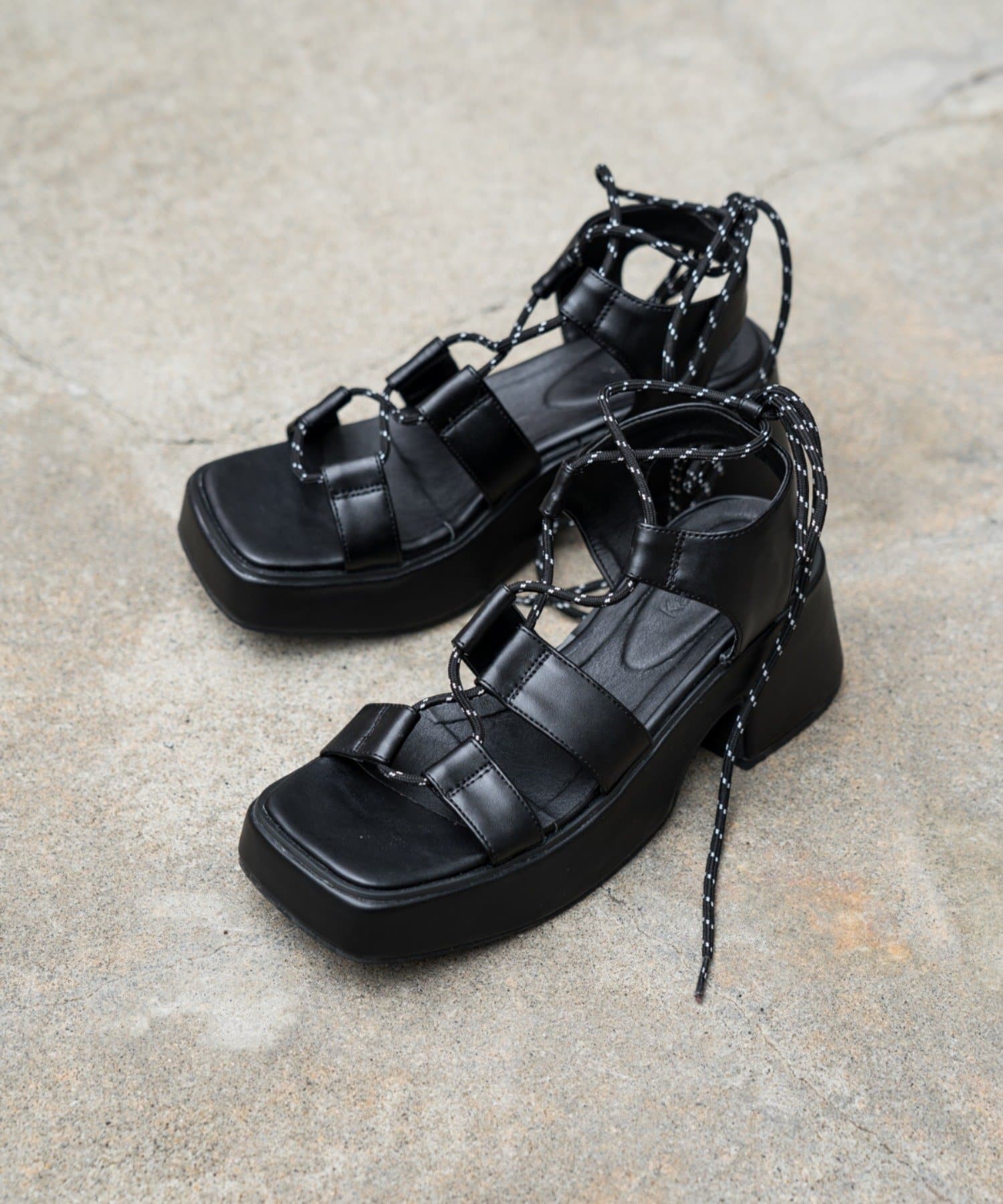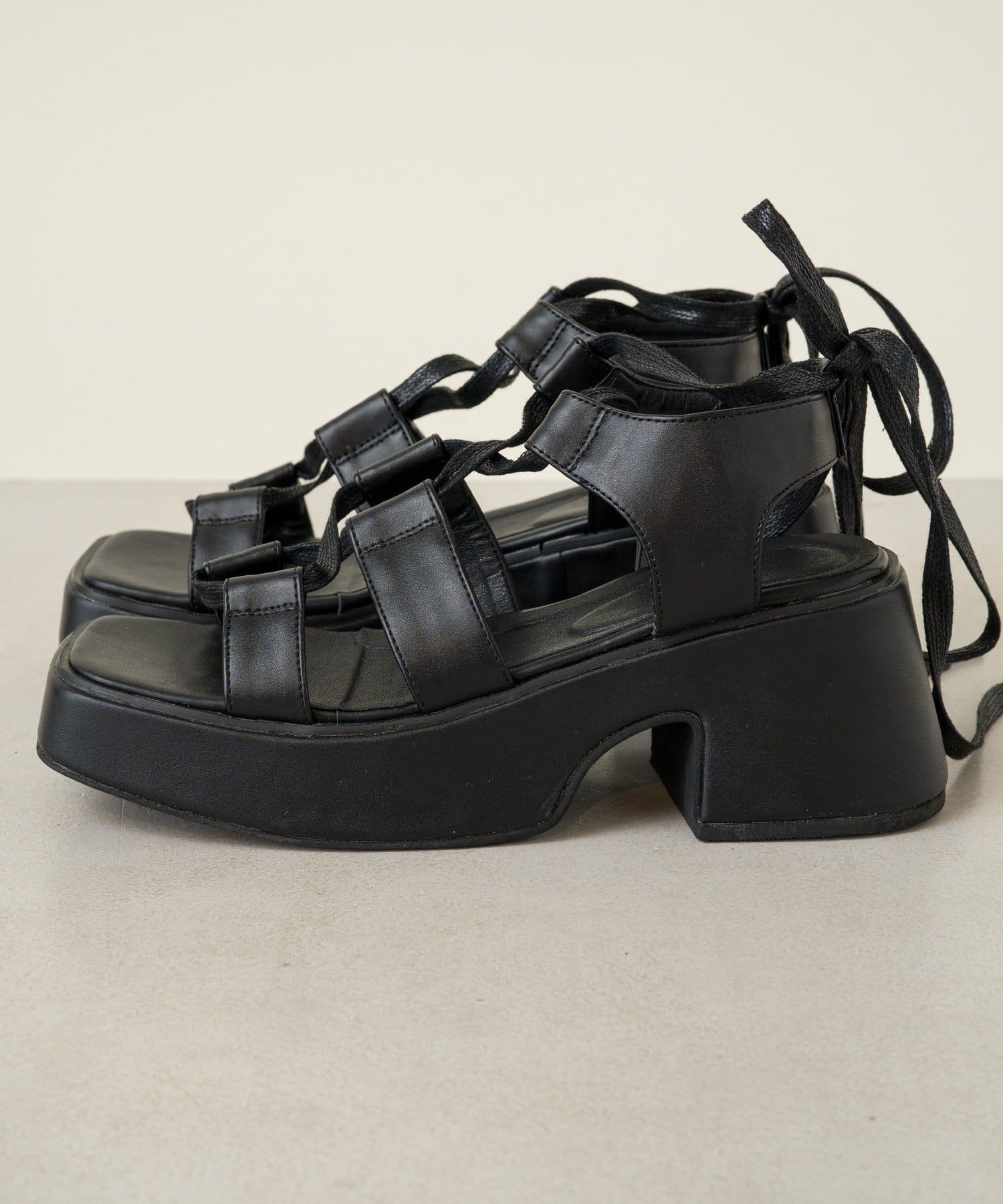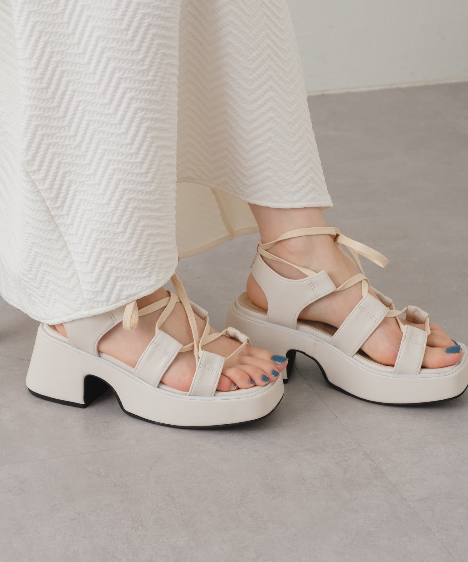 レースアップでホールド力が高く厚底でも安全に履いて頂けます。
