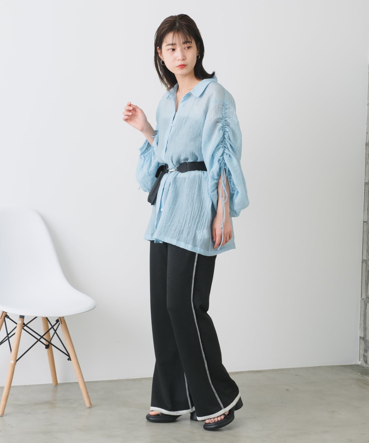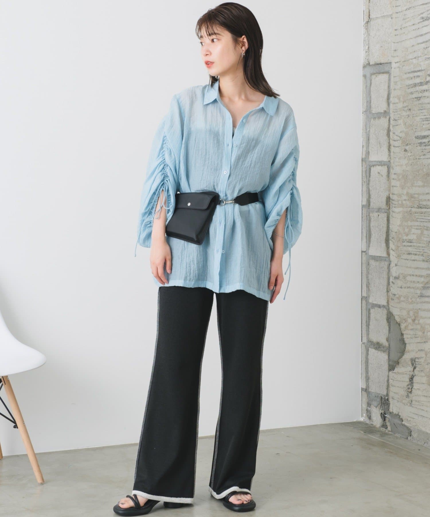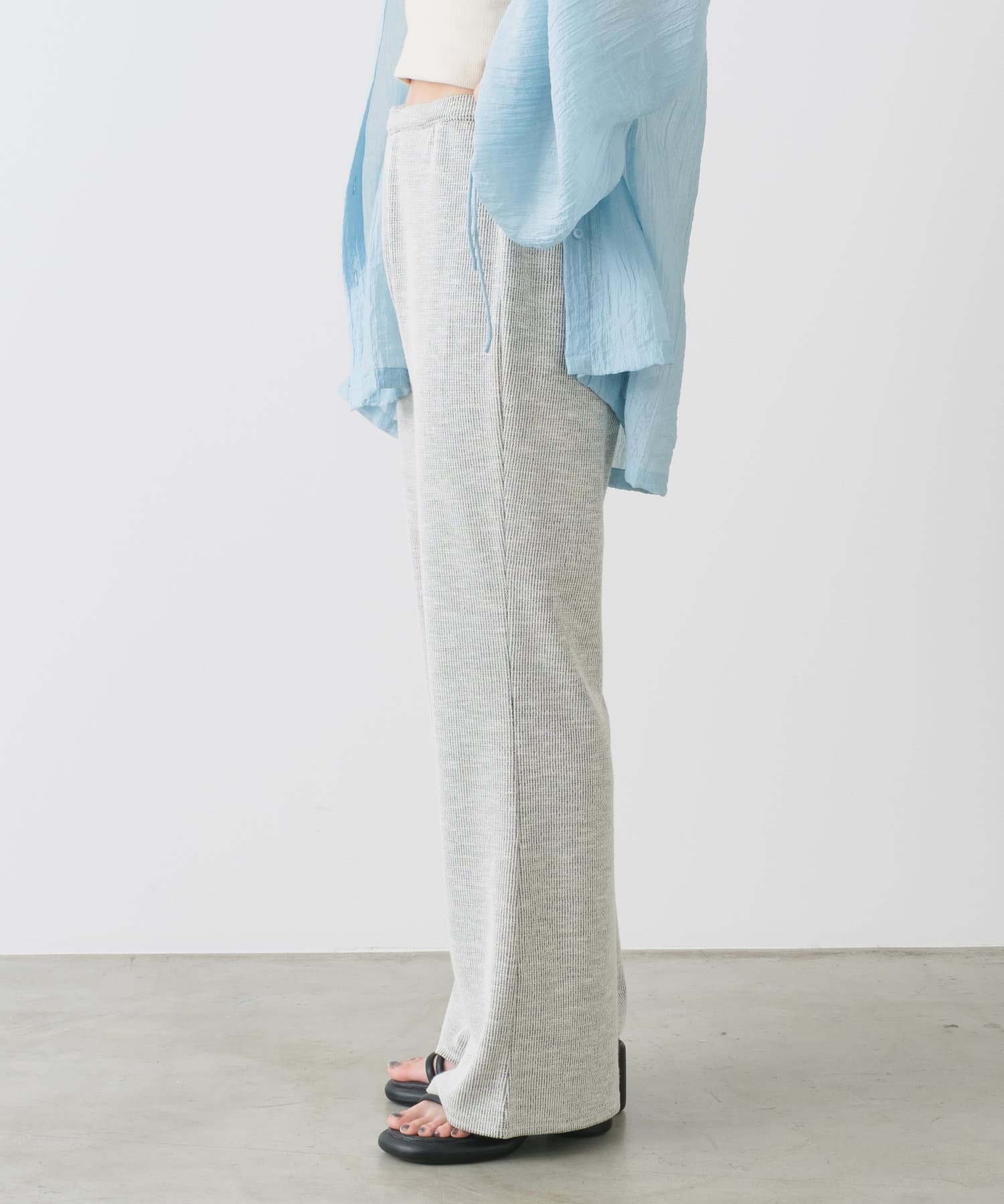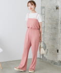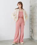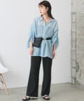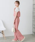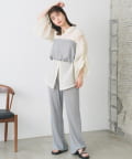 Tシャツなどと合わせて同素材のビスチェとセットアップはもちろん、スリムなパンツなのでトップスは