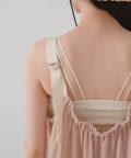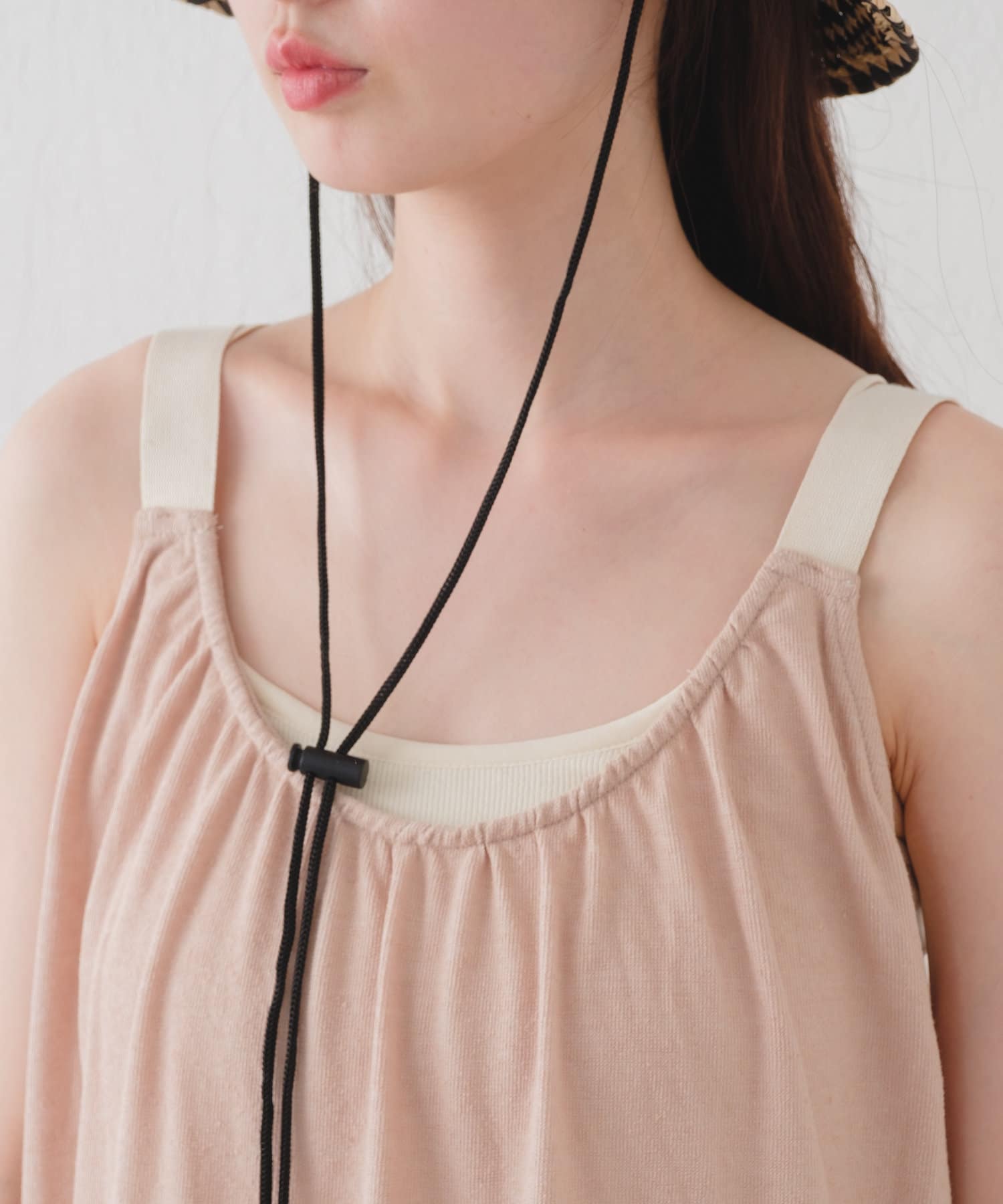 気温が高い時期はタンクトップやカップ付きキャミソールと合わせて着て頂くと涼しげでヘルシーな印象に◎