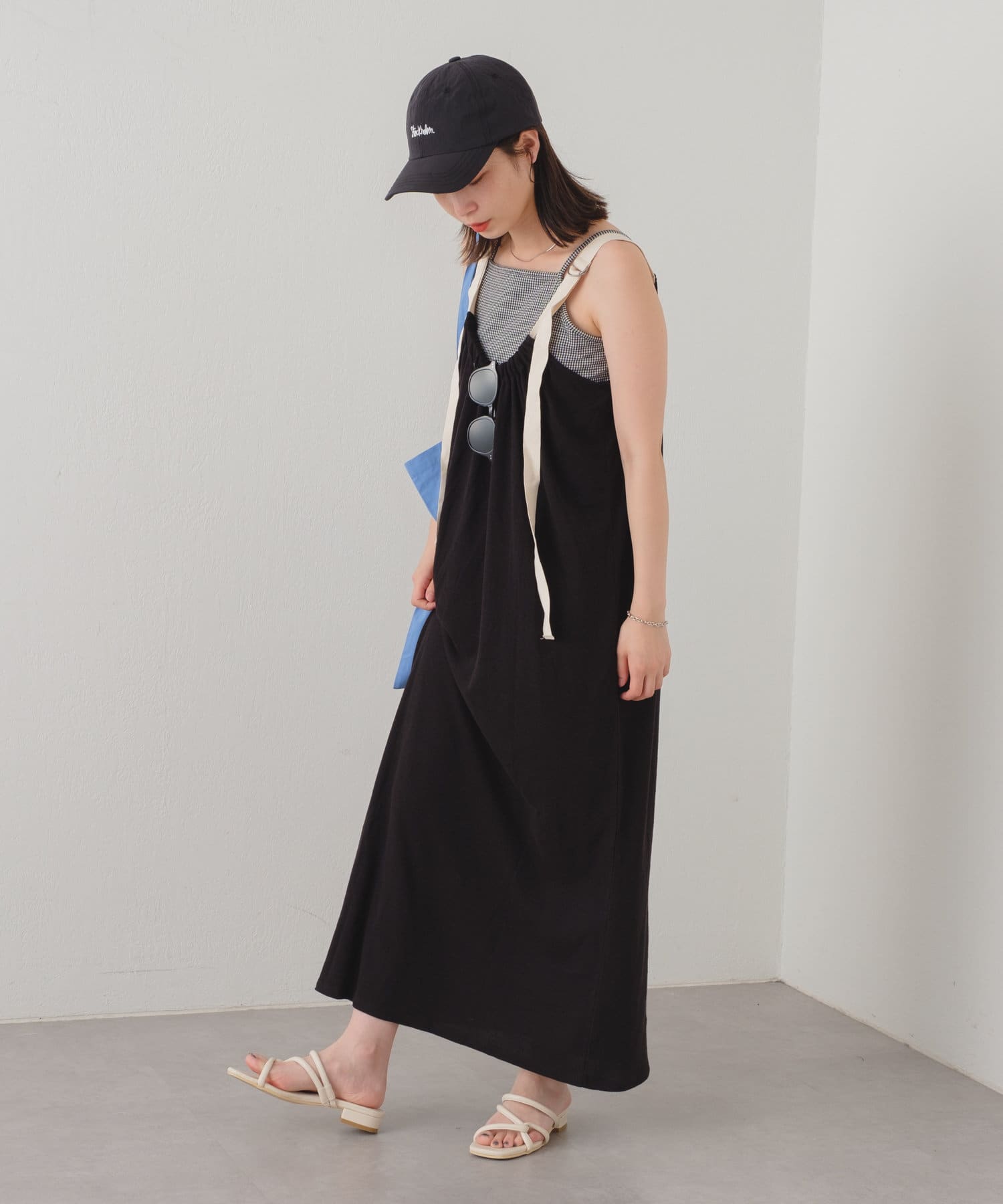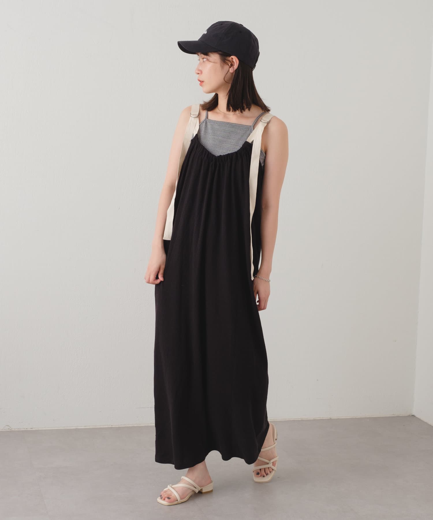 透け感があり涼しいので真夏に大活躍します。サイズ調節できる且つサイズ展開もあるので高身長の方にも嬉しいワンピです。