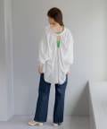 伸縮性も抜群でボディラインにややフィットするシルエットが安心に着られる一枚。