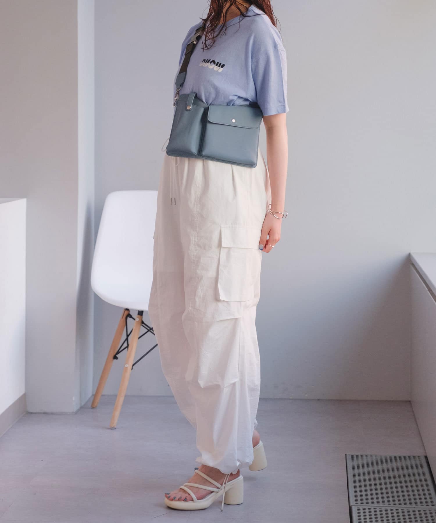 トレンドのショート丈なのでハイウエストボトムと好相性。