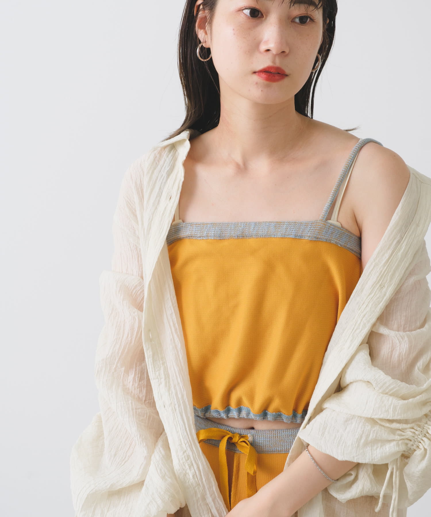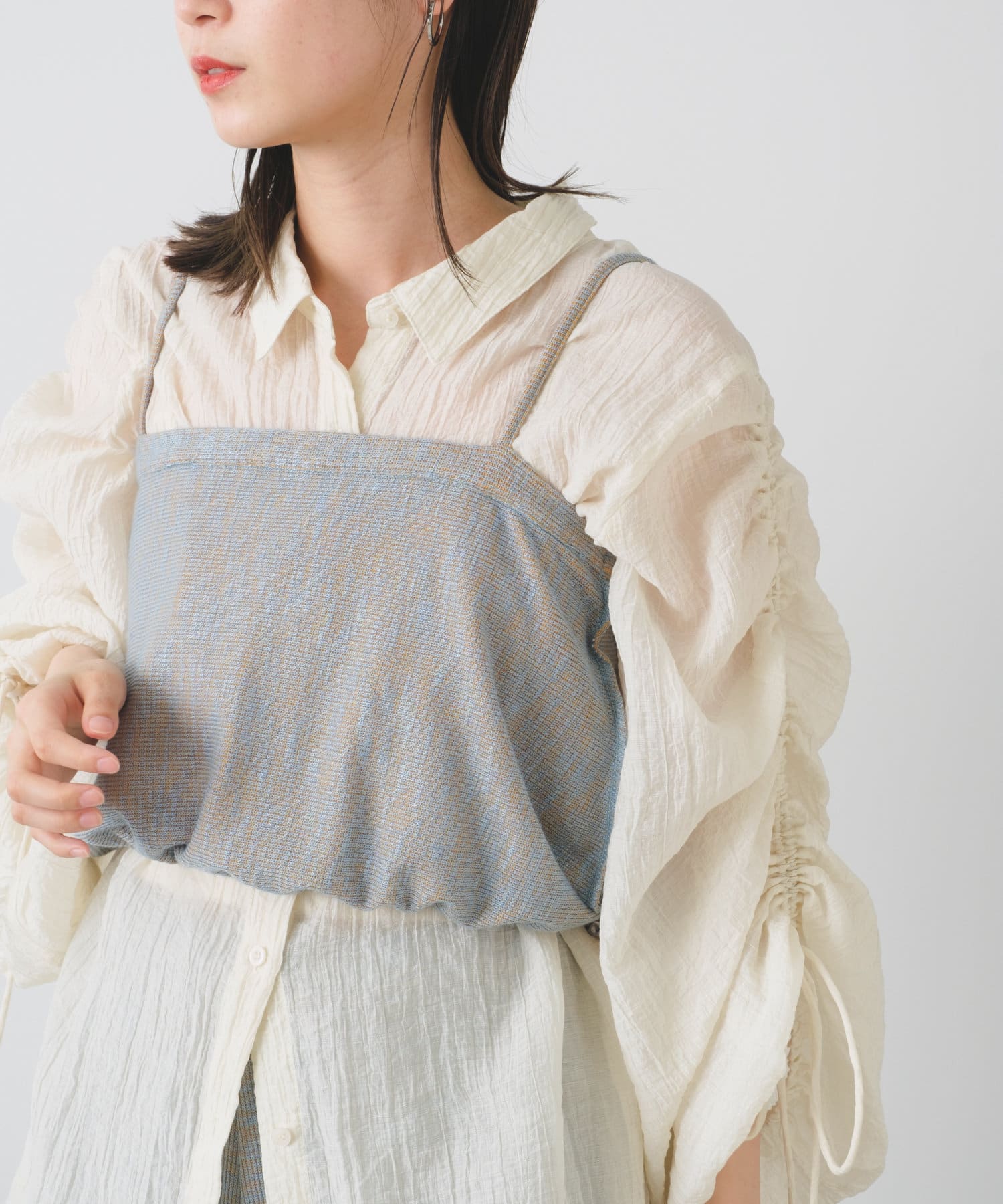 さらりと薄手の素材のワンピースに重ねてもと、いつものスタイリングに取り入れて頂く事でトレンド感をプラスすることのできるアイテムとして重宝します。