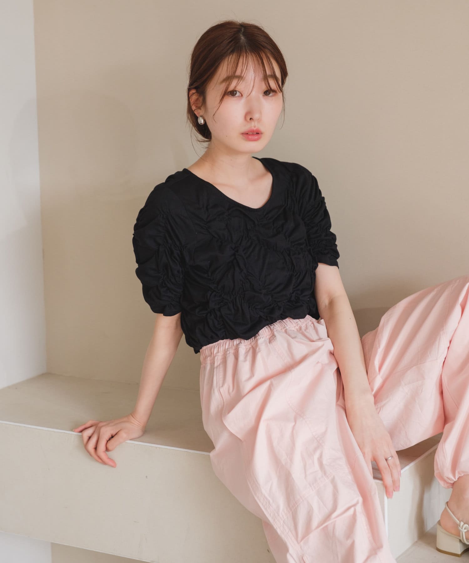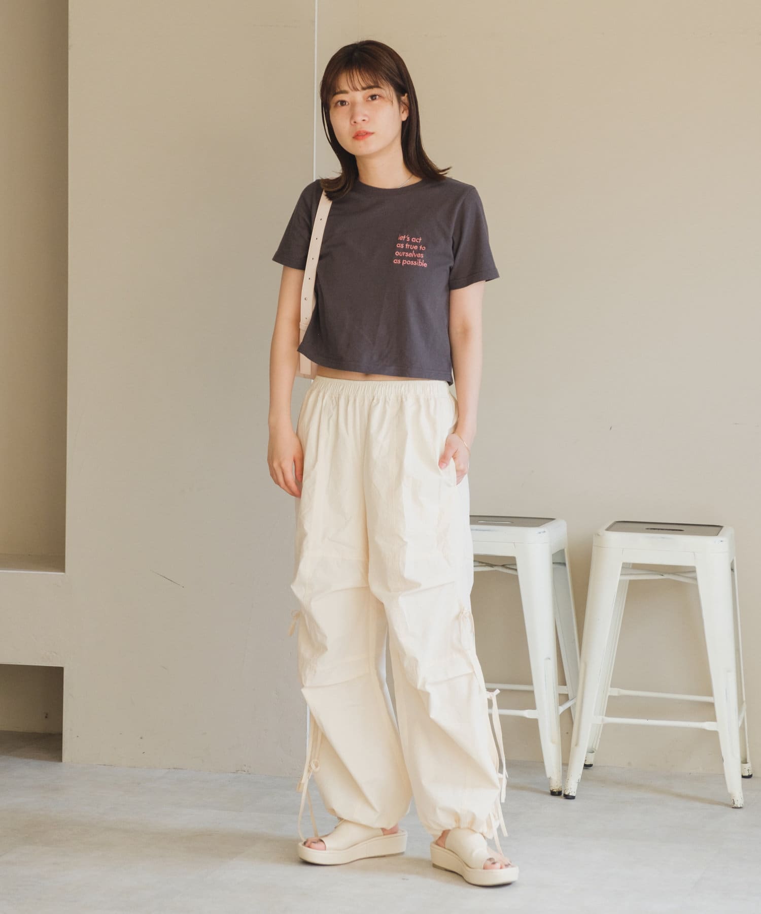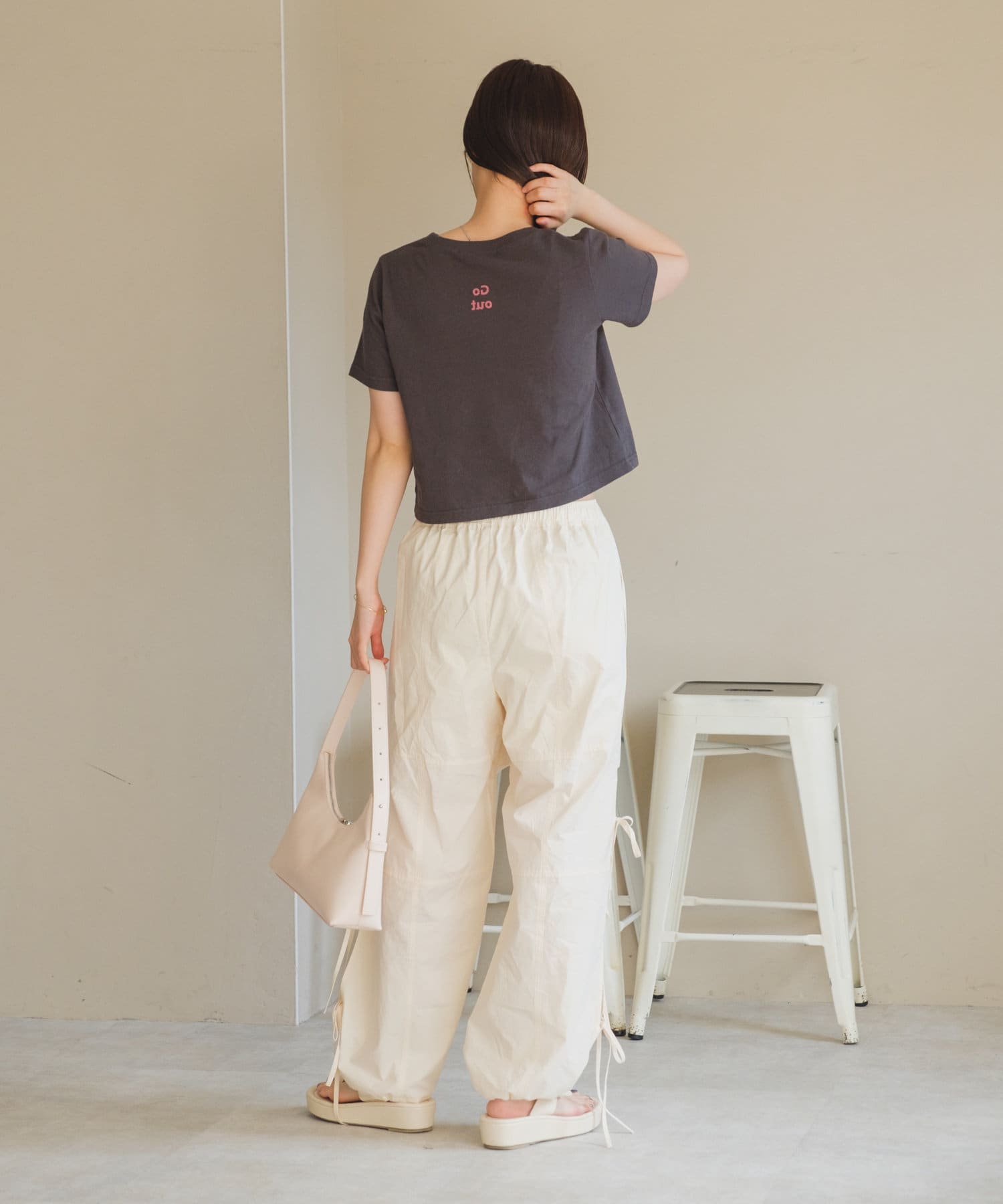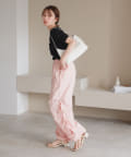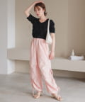 ボリューム感のあるパンツなのでクロップド丈トップスやタンクトップなど