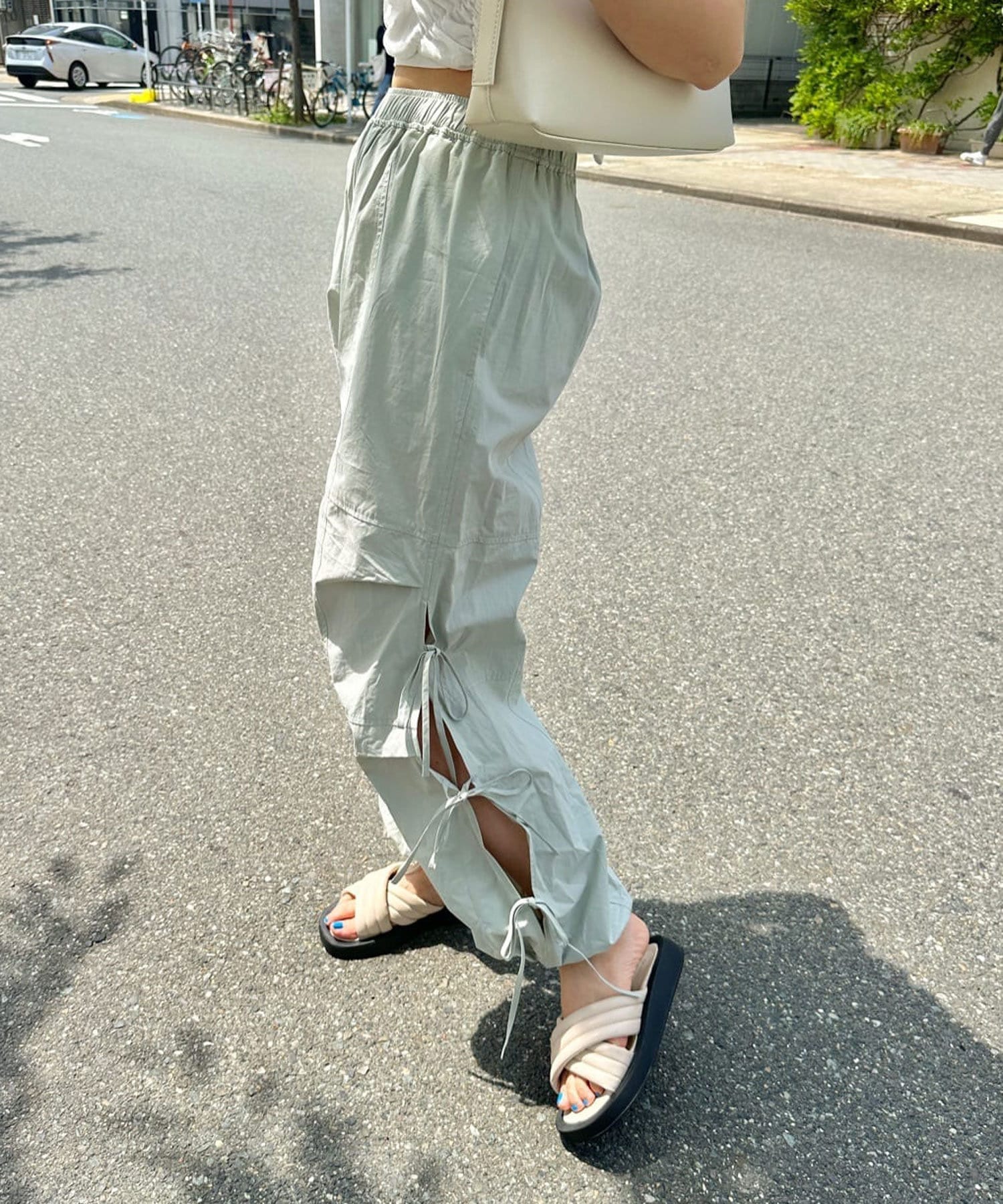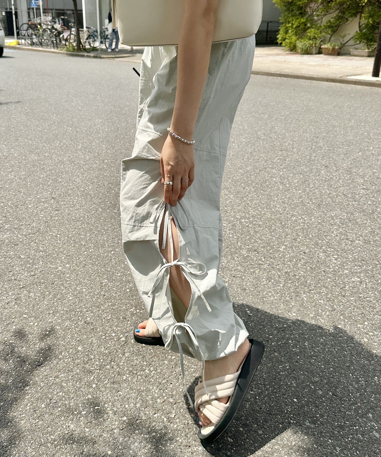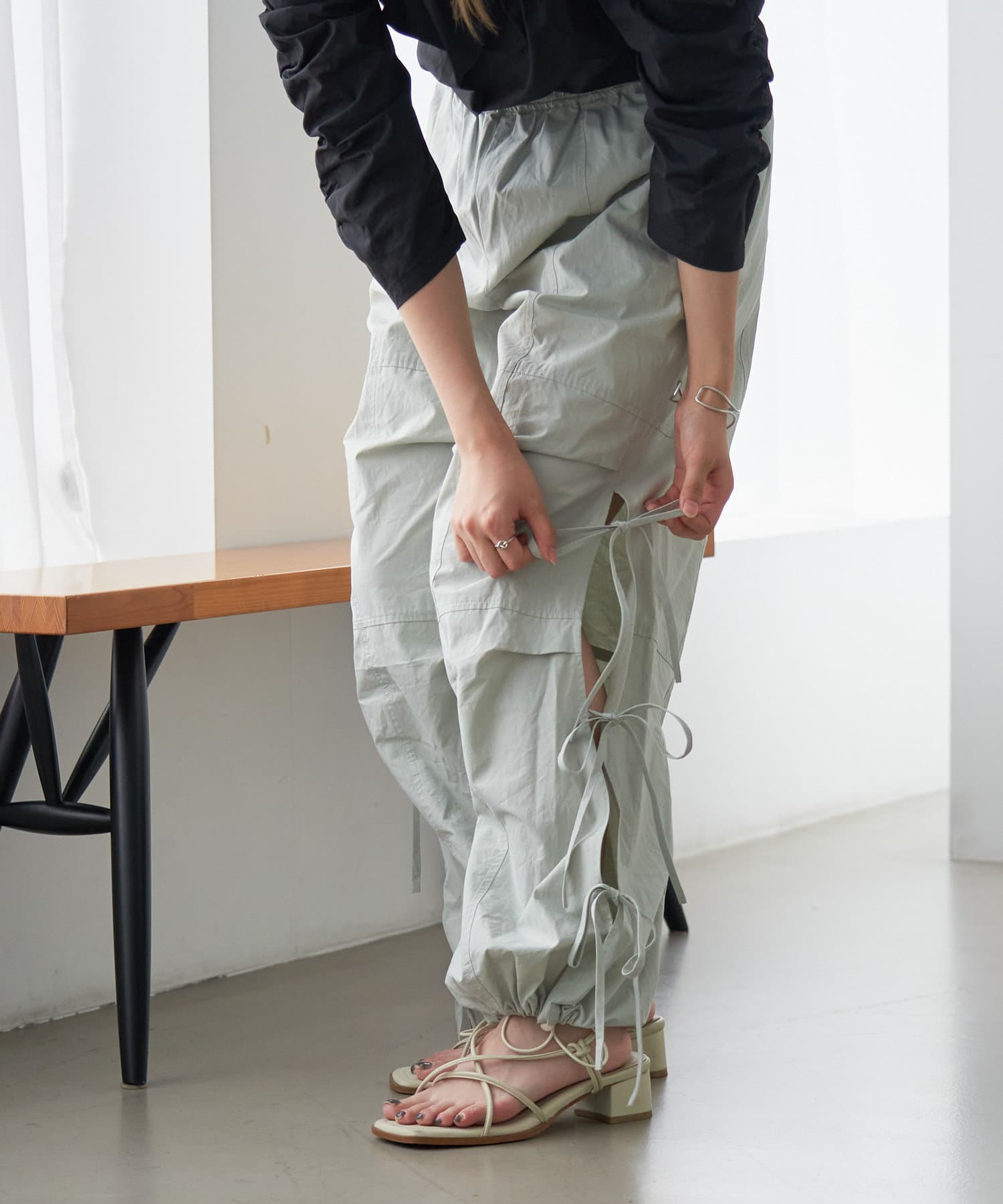 サイドから肌見せ出来るトレンドナイロンパンツ
