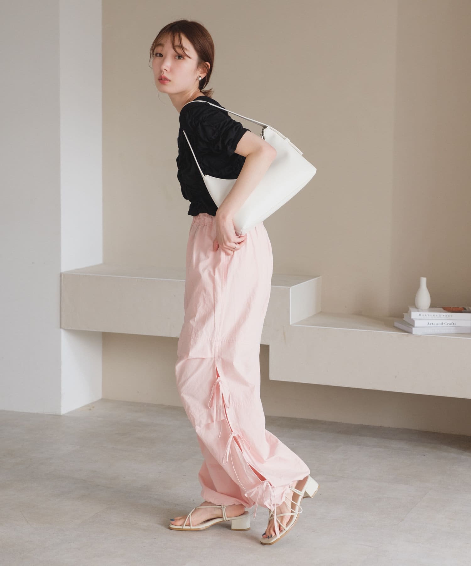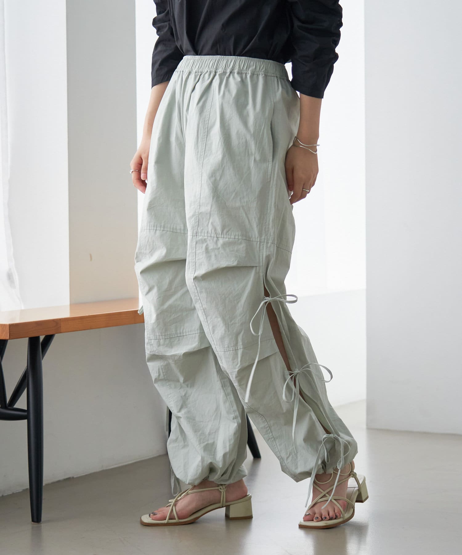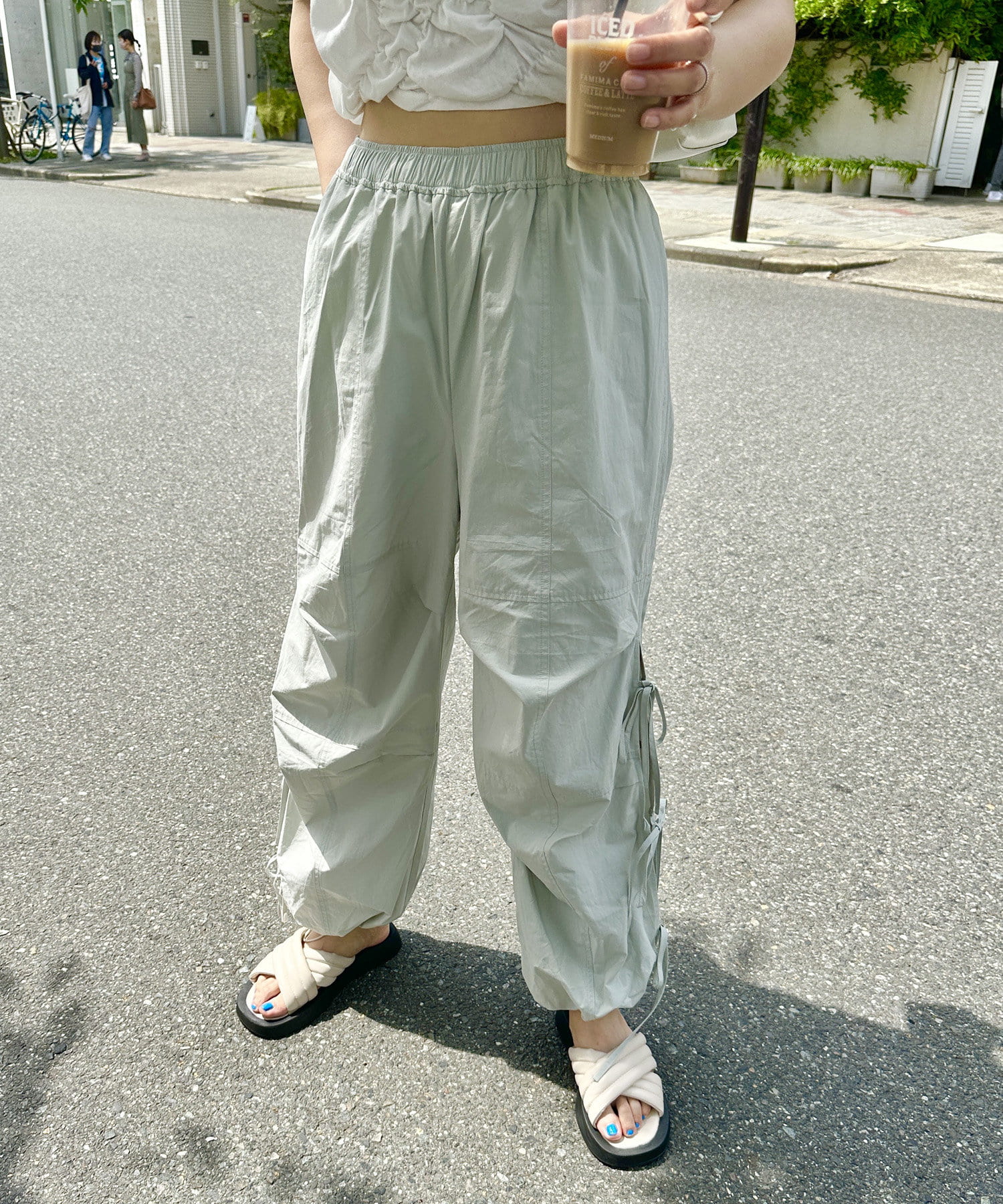 サイドから肌見せ出来るトレンドナイロンパンツ