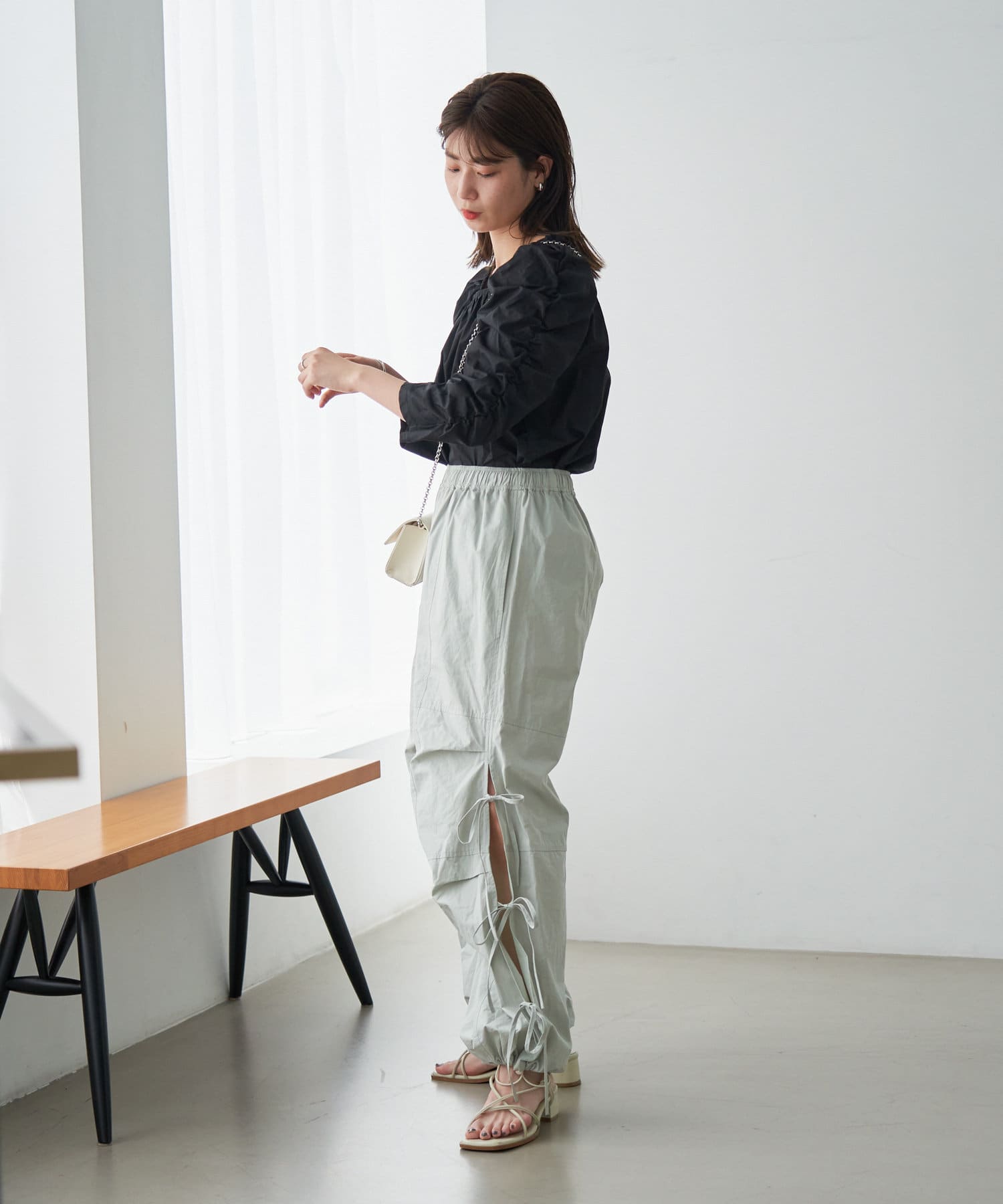 裾の絞られたデザインがトレンド感あるアイテムです。