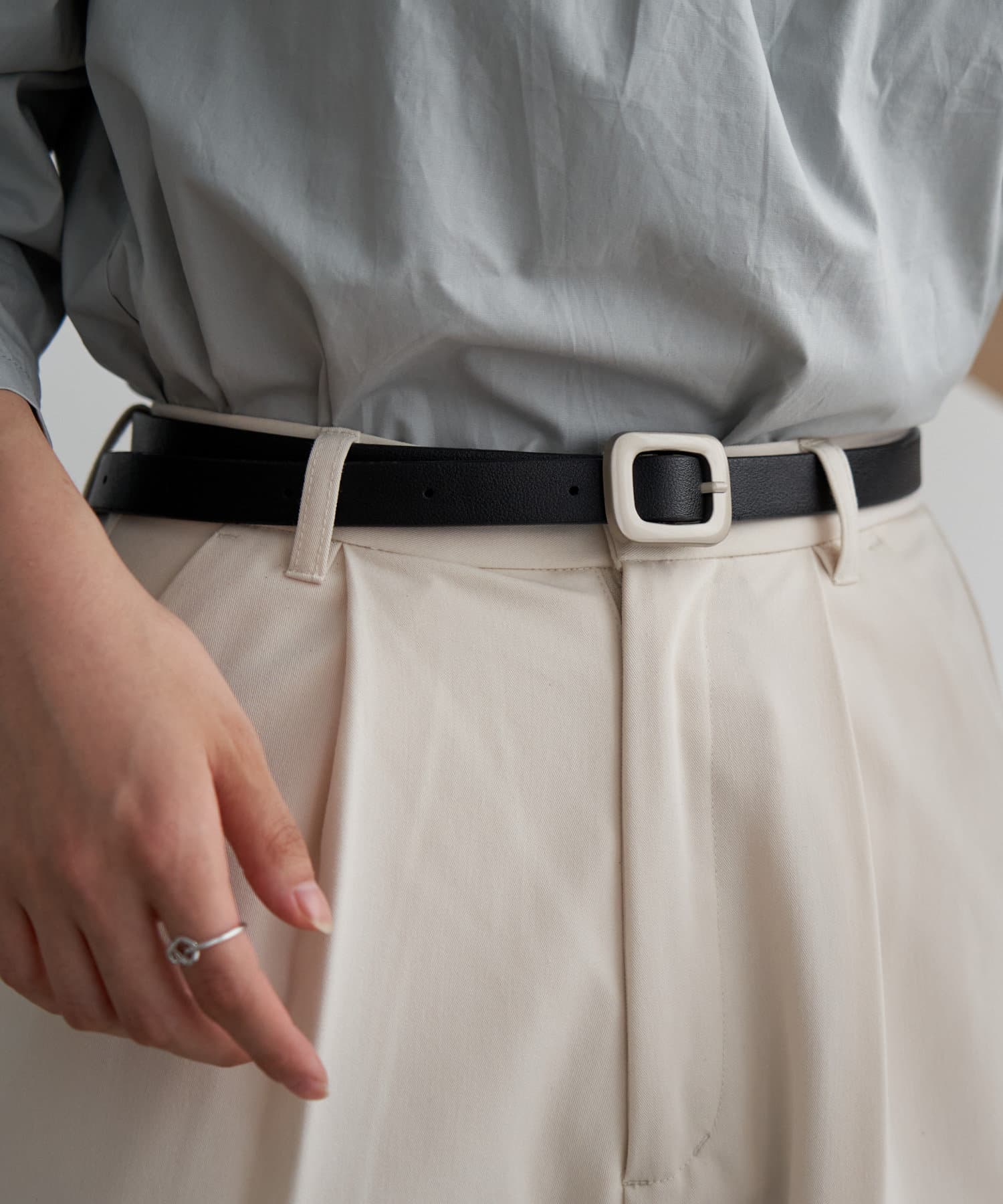 シルバーのスクエアバックルがポイントになるベルトが登場。