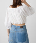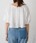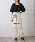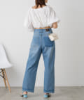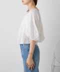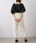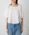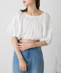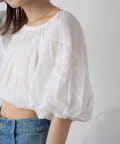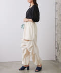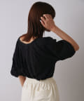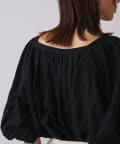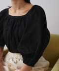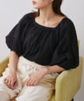 全体にあしらわれたギャザーとボリューム袖がフェミニンさをプラス。
