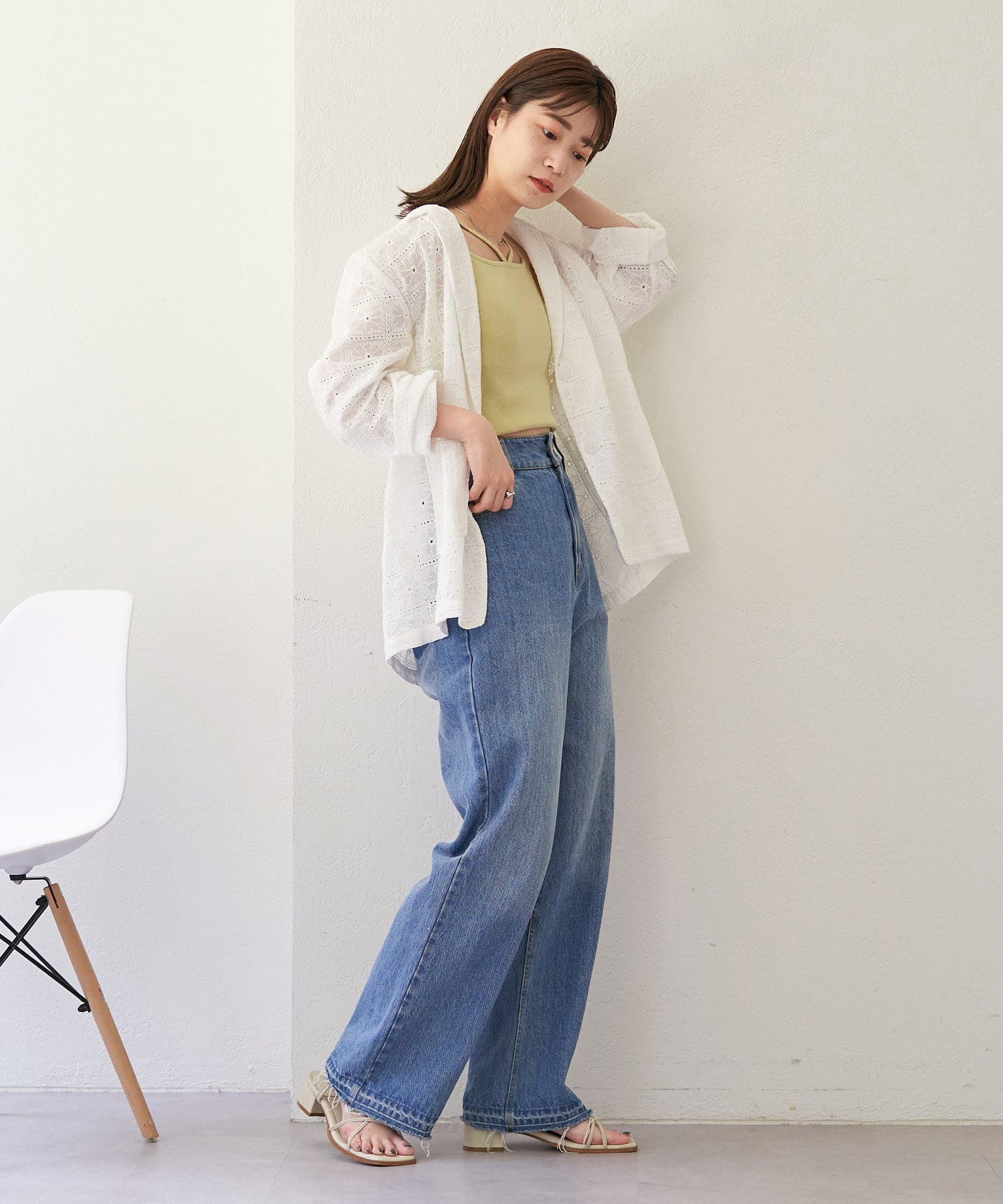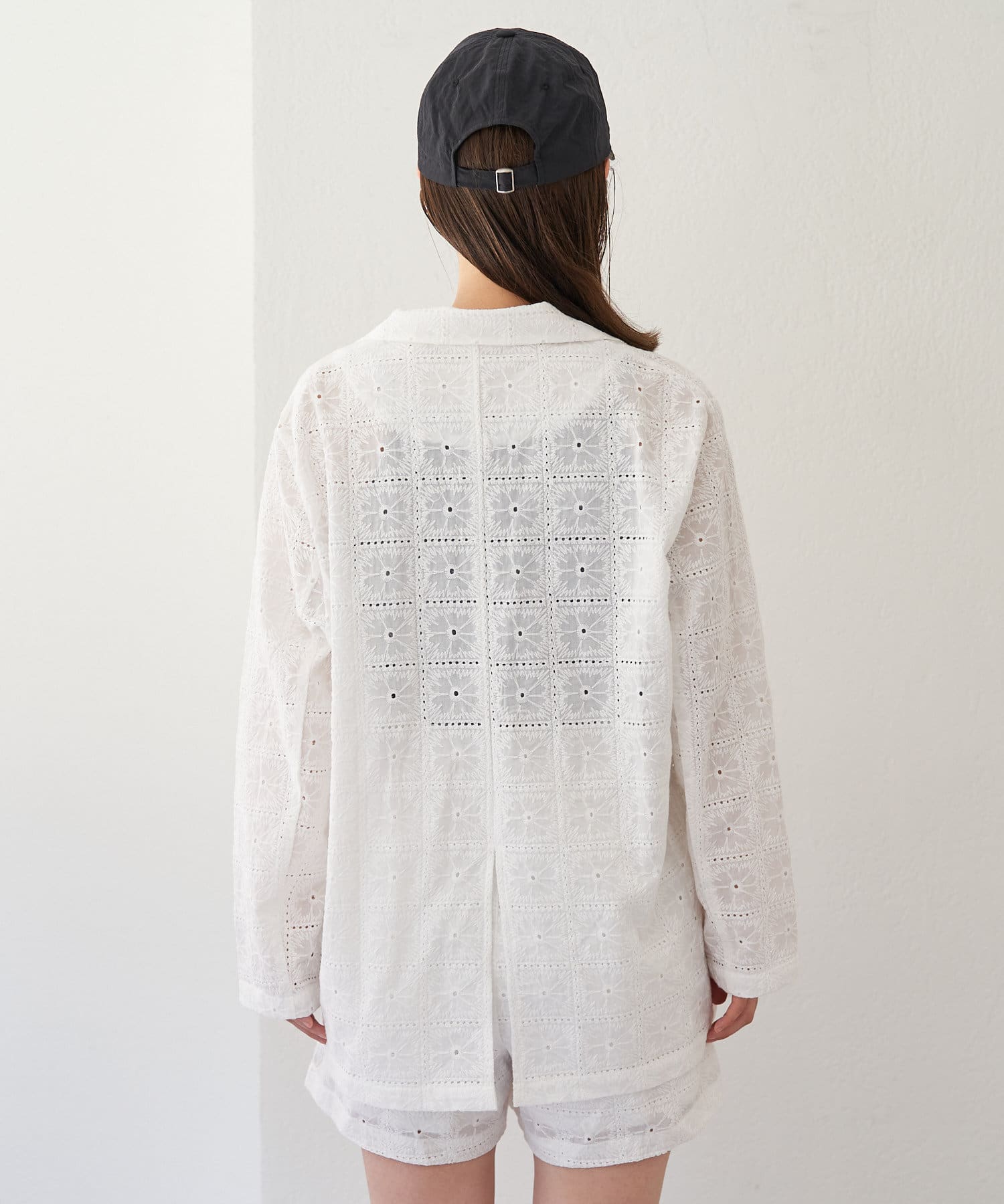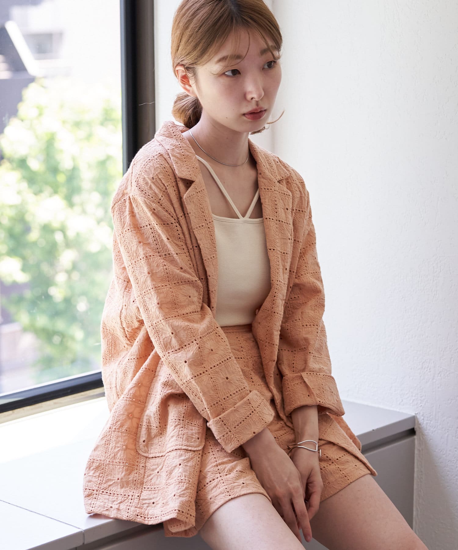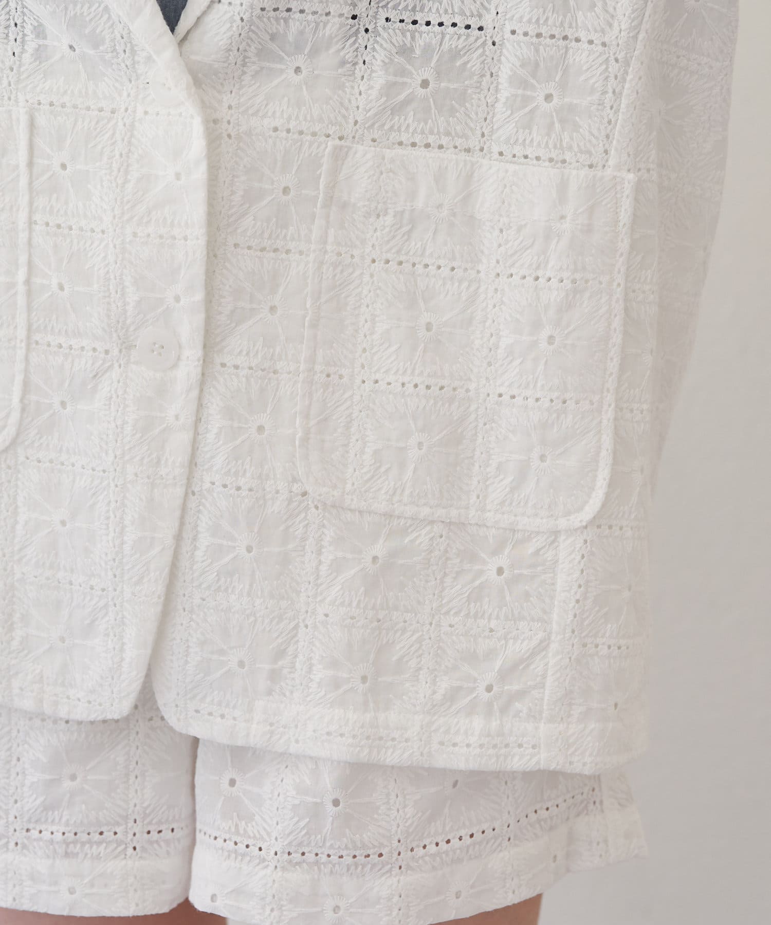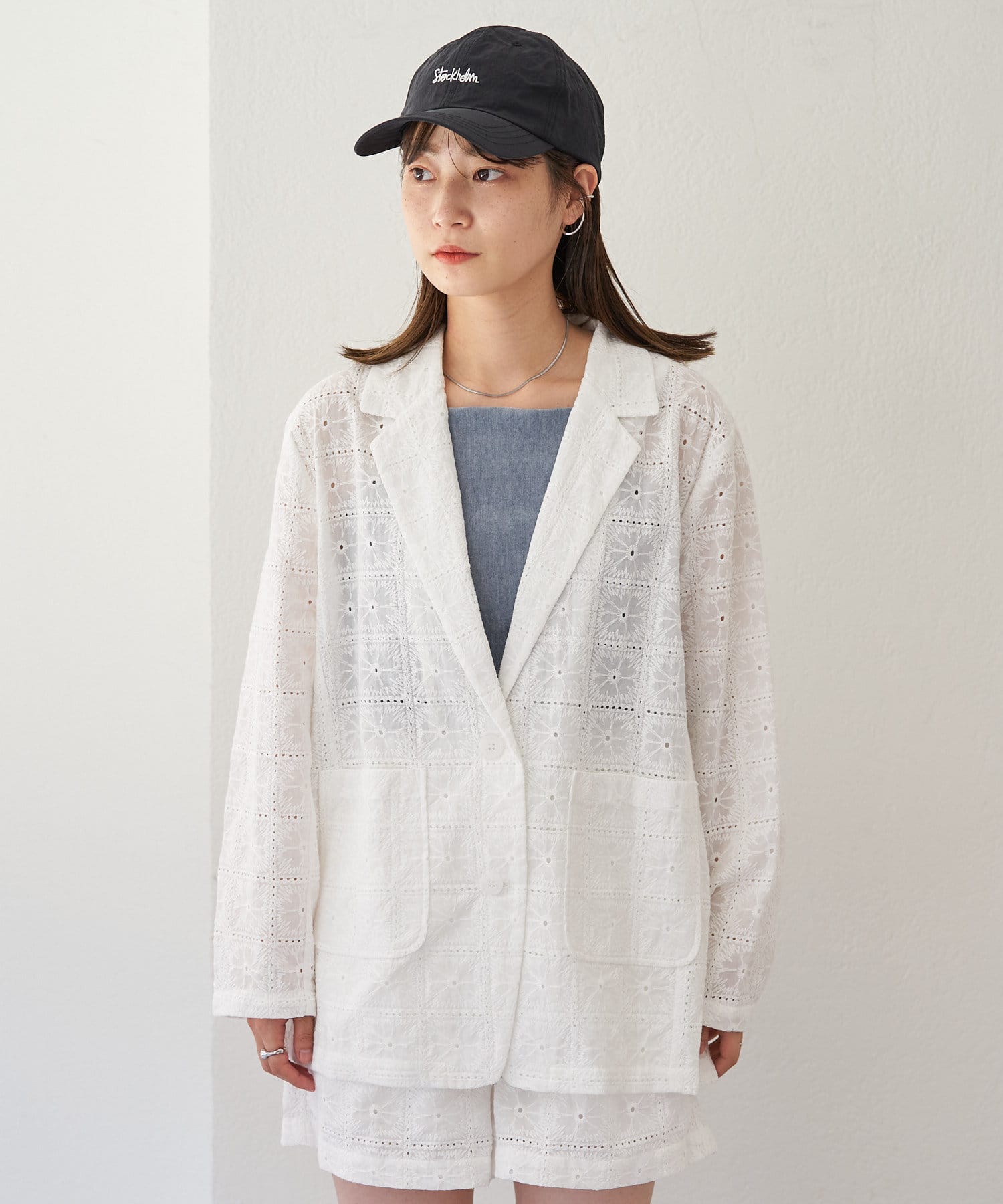 程よく甘めで柔らかい印象になるアイレットレースジャケットが登場。