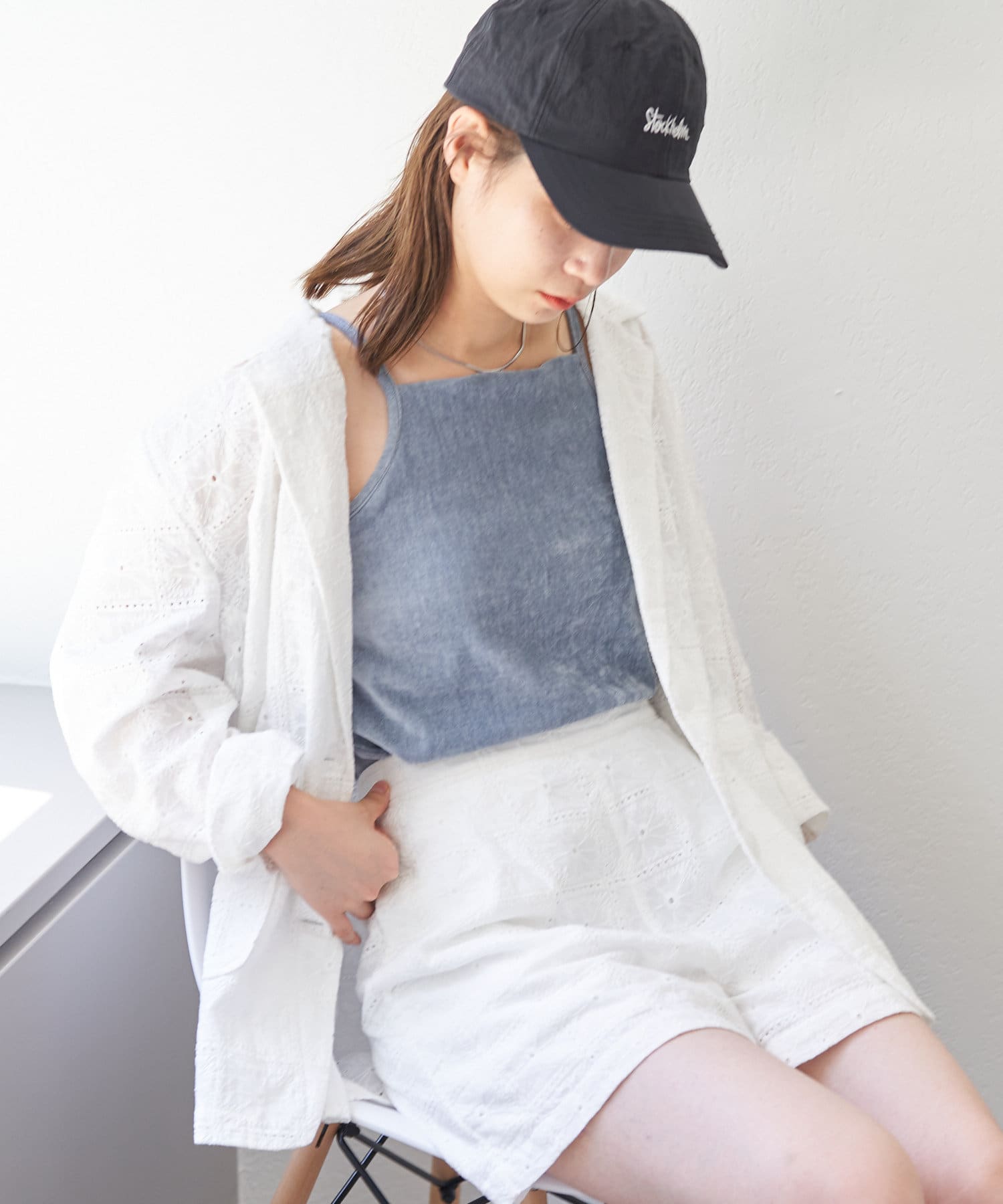 カップ付きキャミソールやタンクトップの上から羽織として着ていただくのがおすすめ。