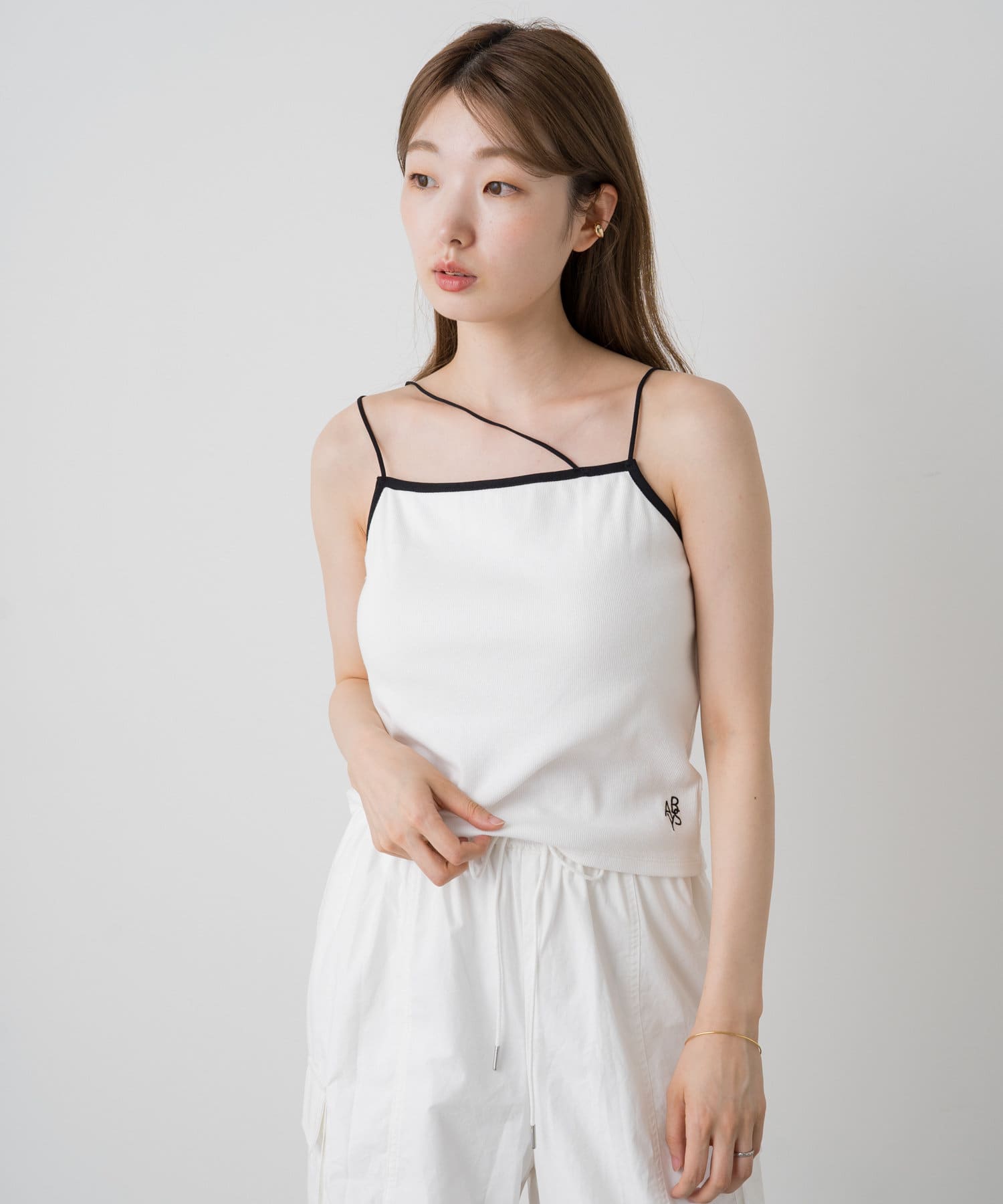 パイピングデザインと裾の刺繍がアクセントになるキャミソールが登場。