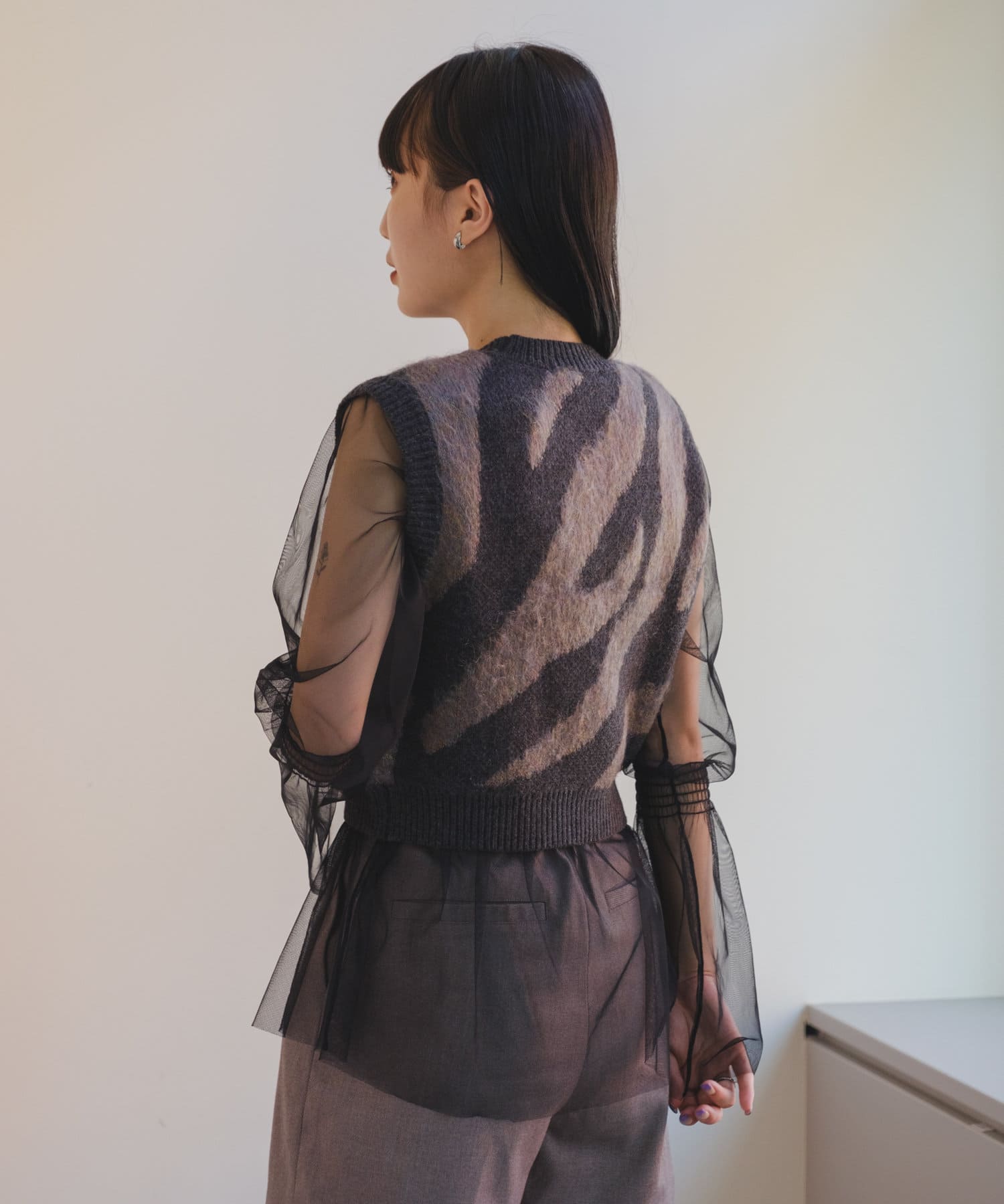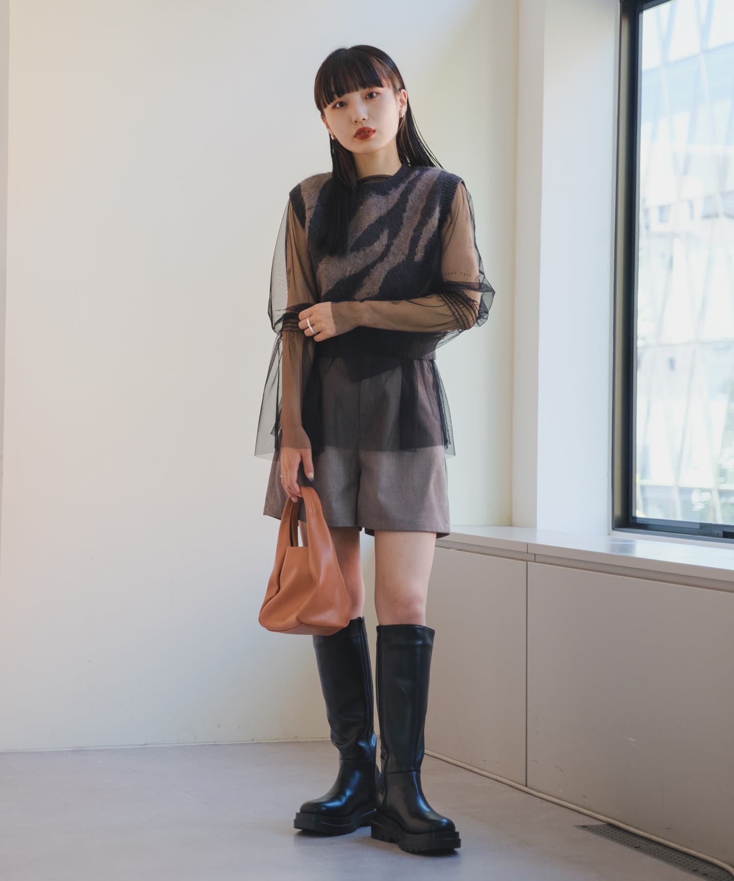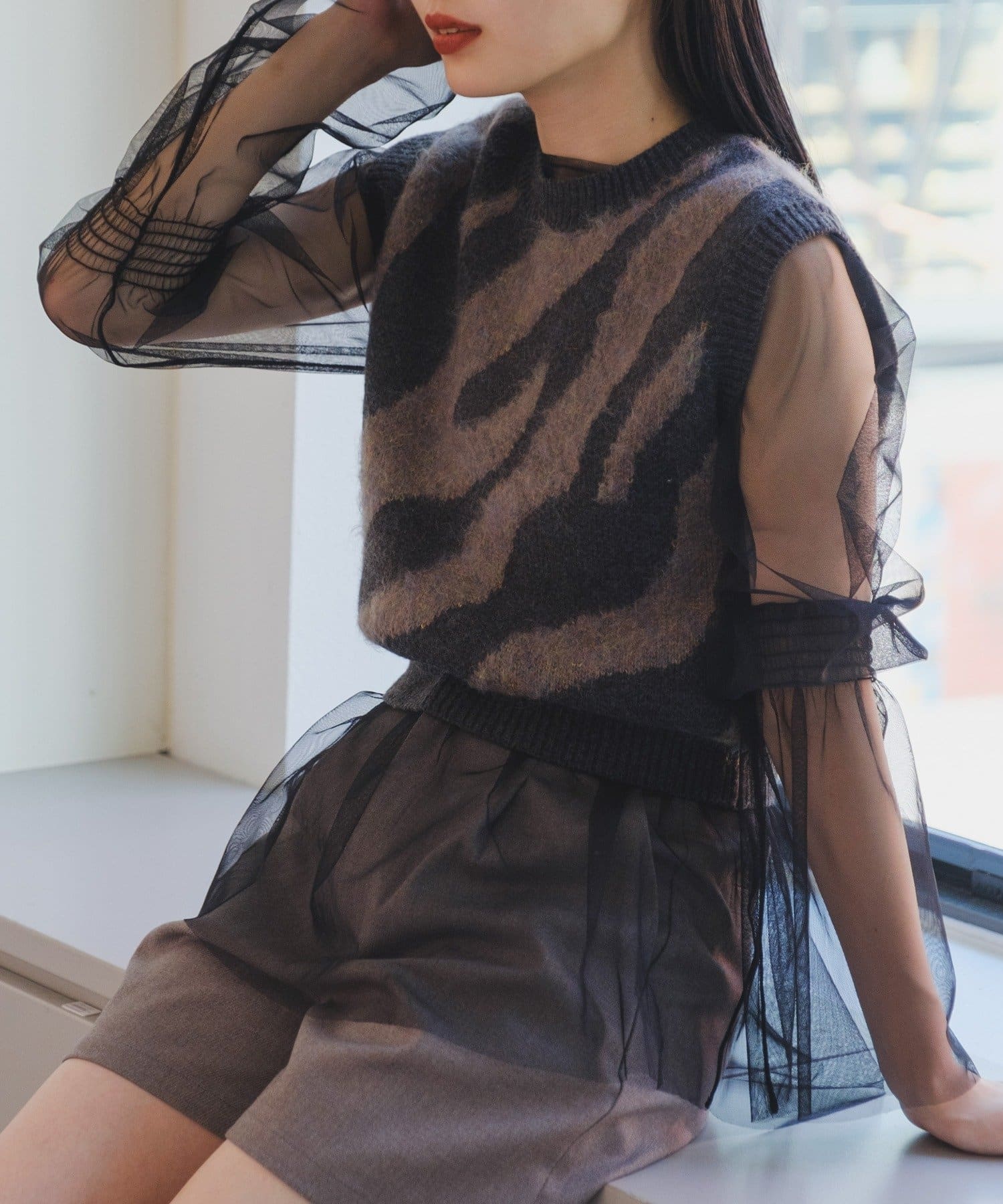ブラウスに重ねたレイヤードスタイルや、ゆとりのあるシアーインナーを上から重ねると上級者な着こなしに。