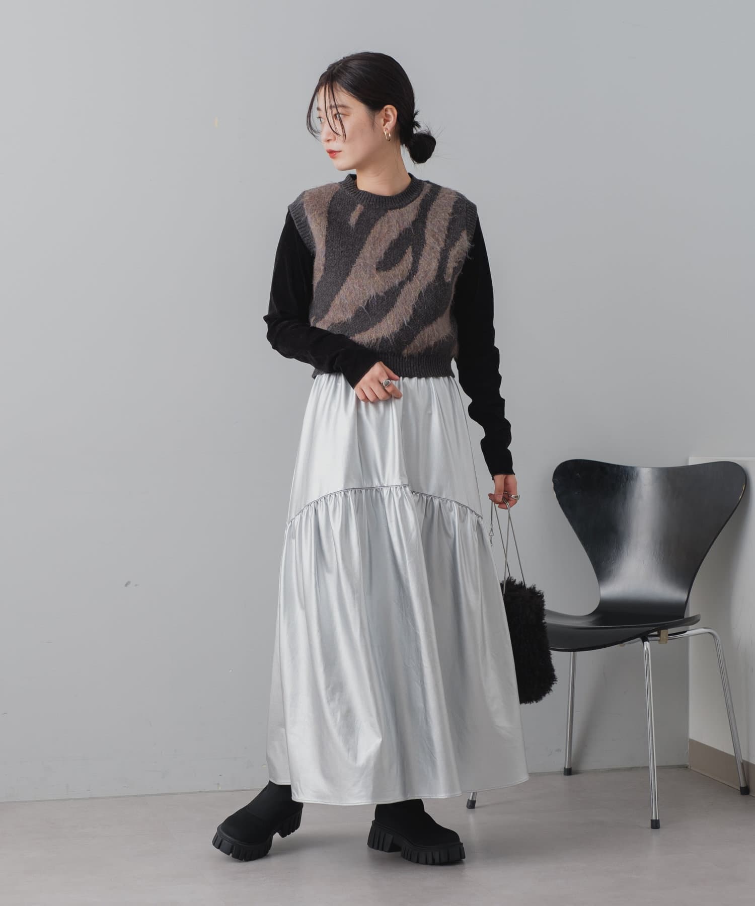 シンプルにロングワンピースと合わせていただくのもおすすめです。