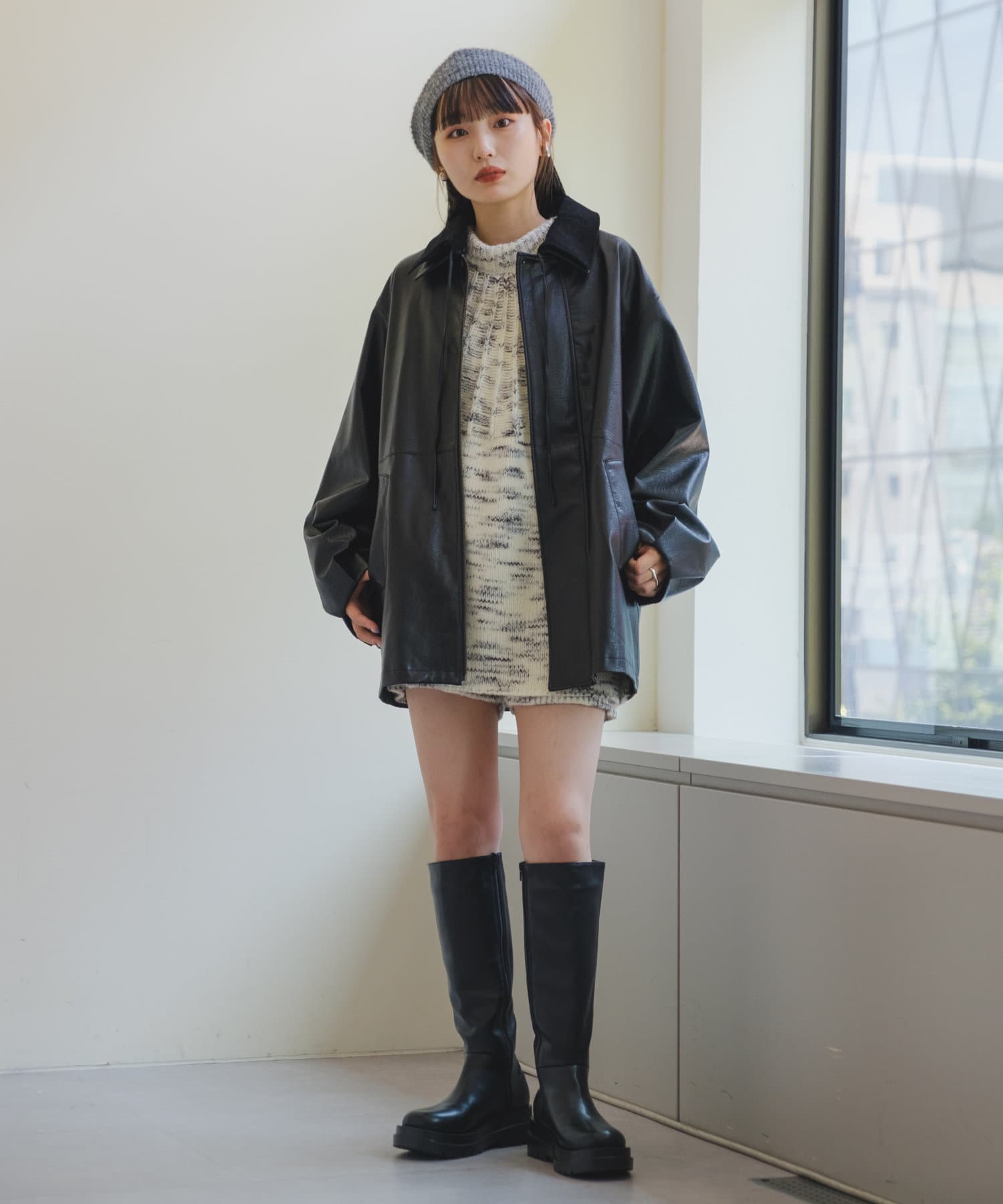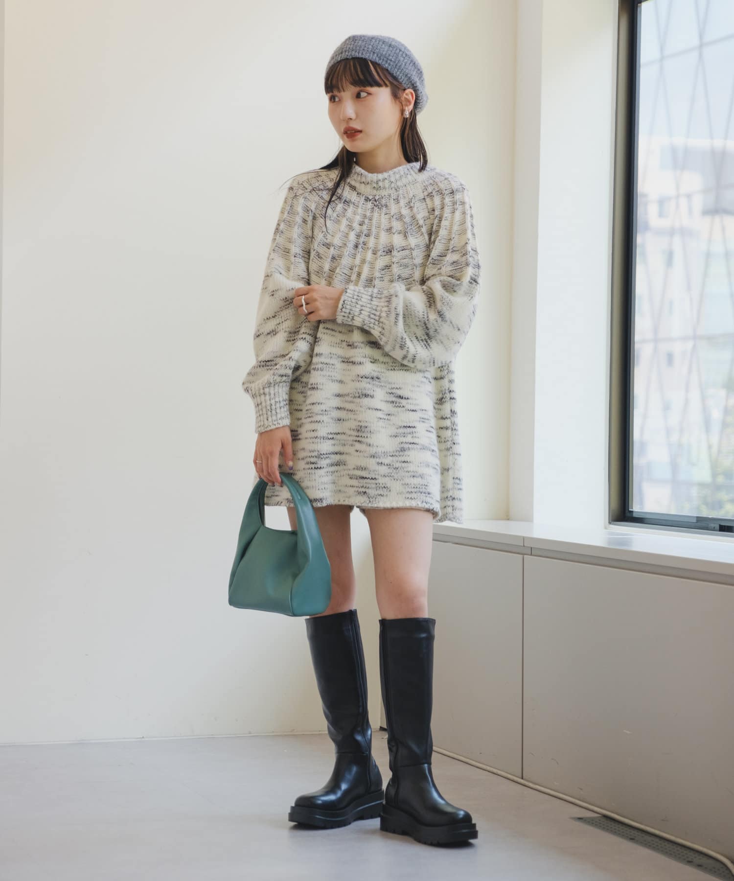 オーバーサイズのニットと合わせてチラ見せする着こなしがオススメ。