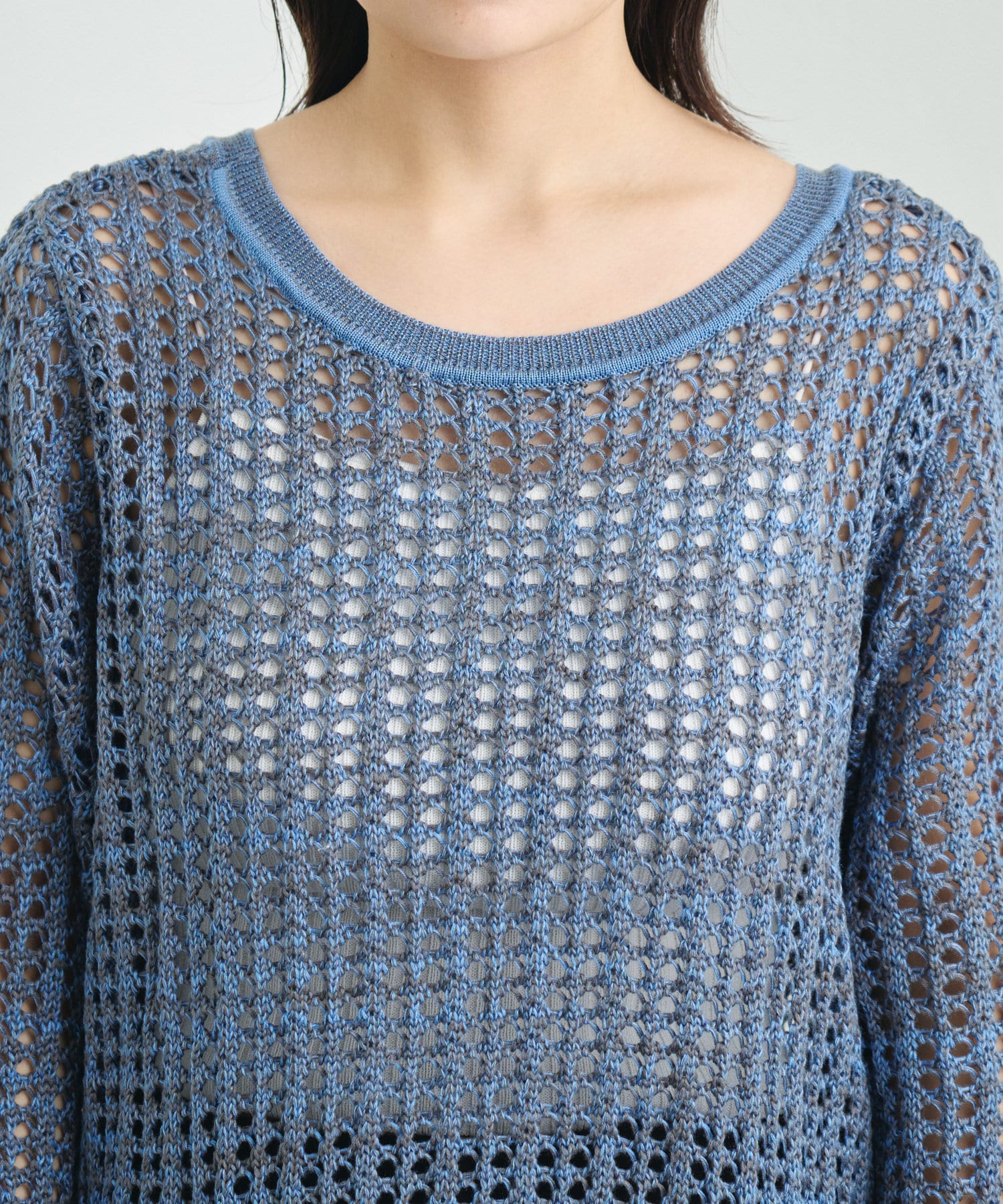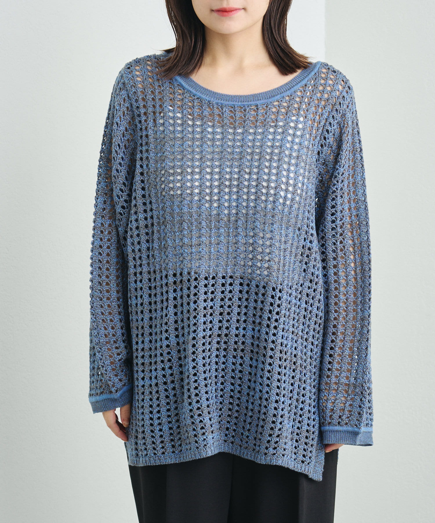2色の糸を使ったMIX生地のようなニットプルオーバー。