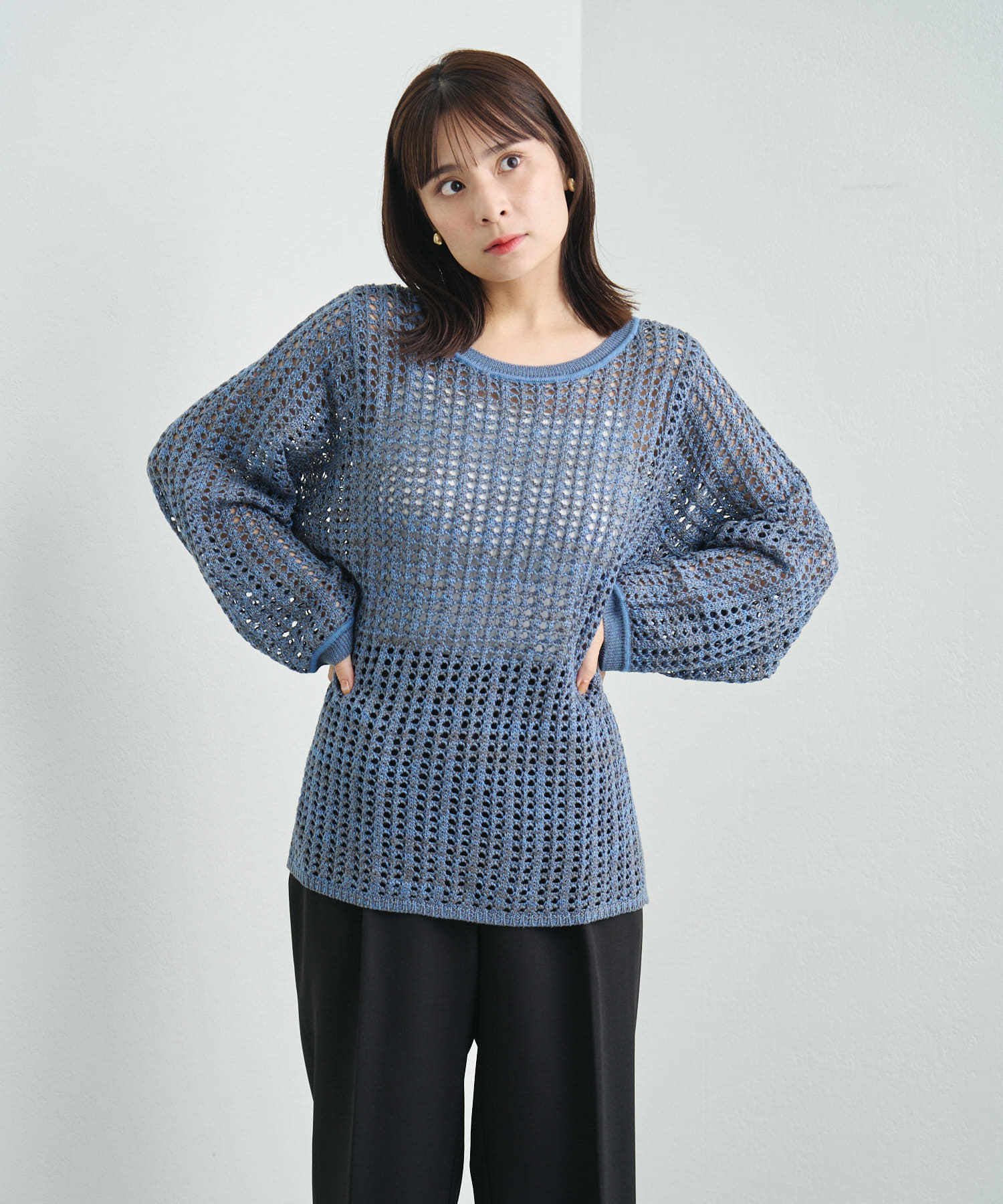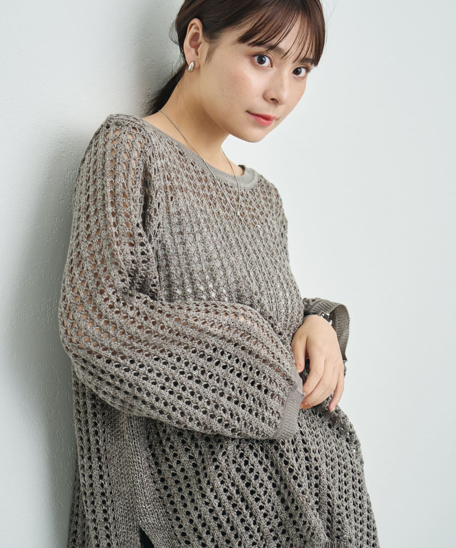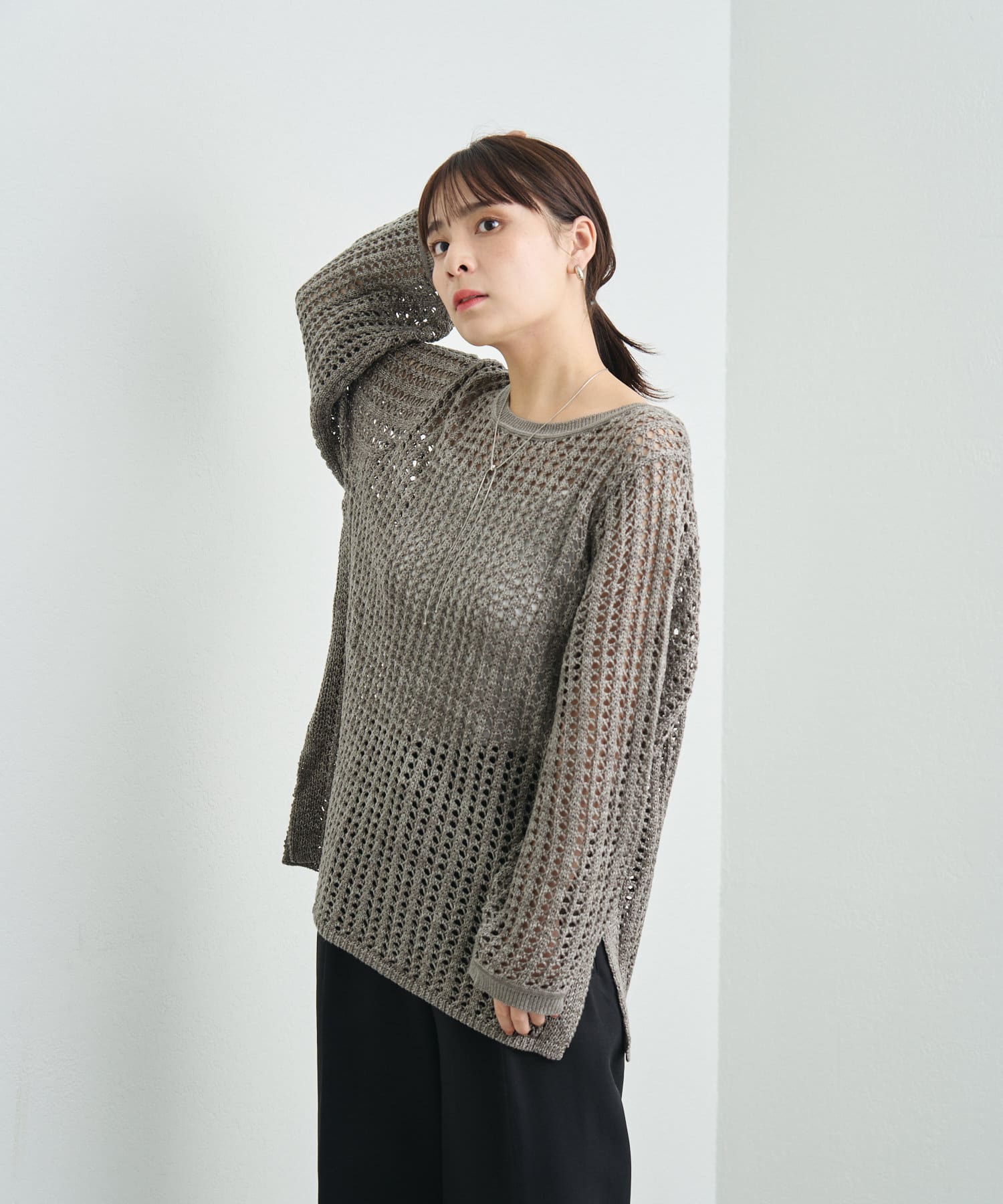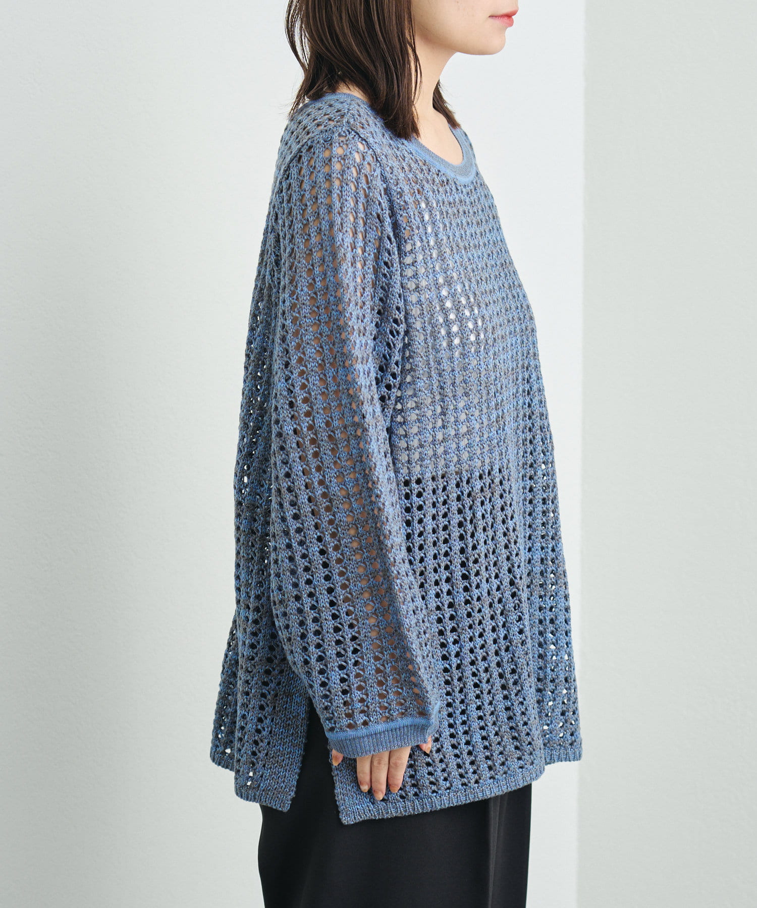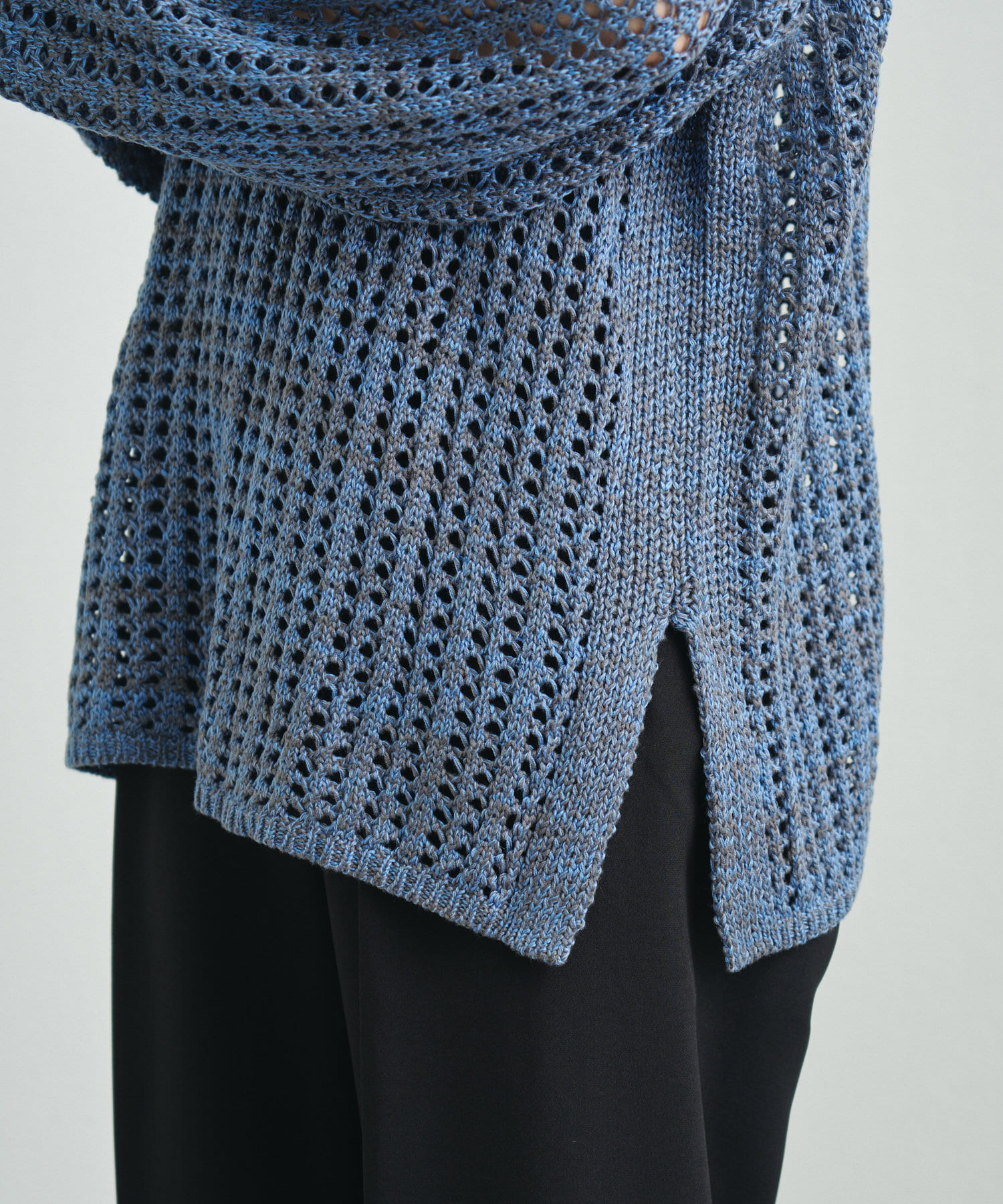 混じり気のある生地感が目を惹く透かし編みニット