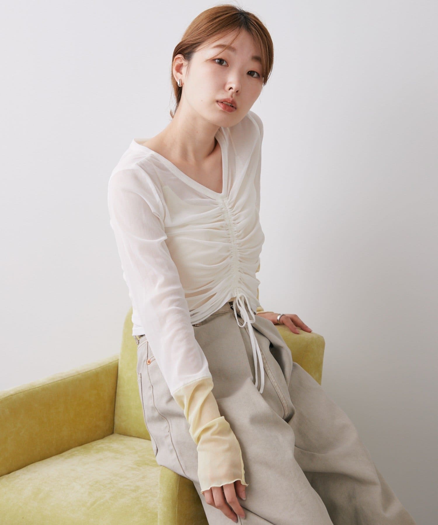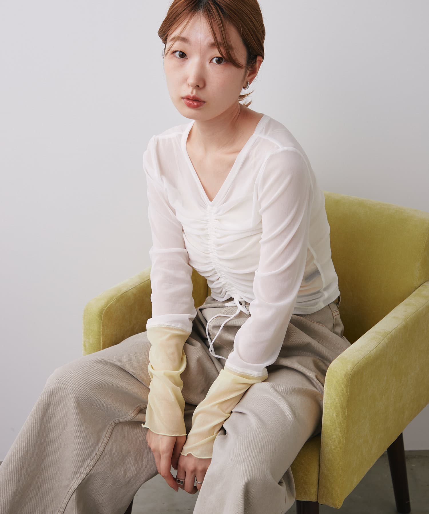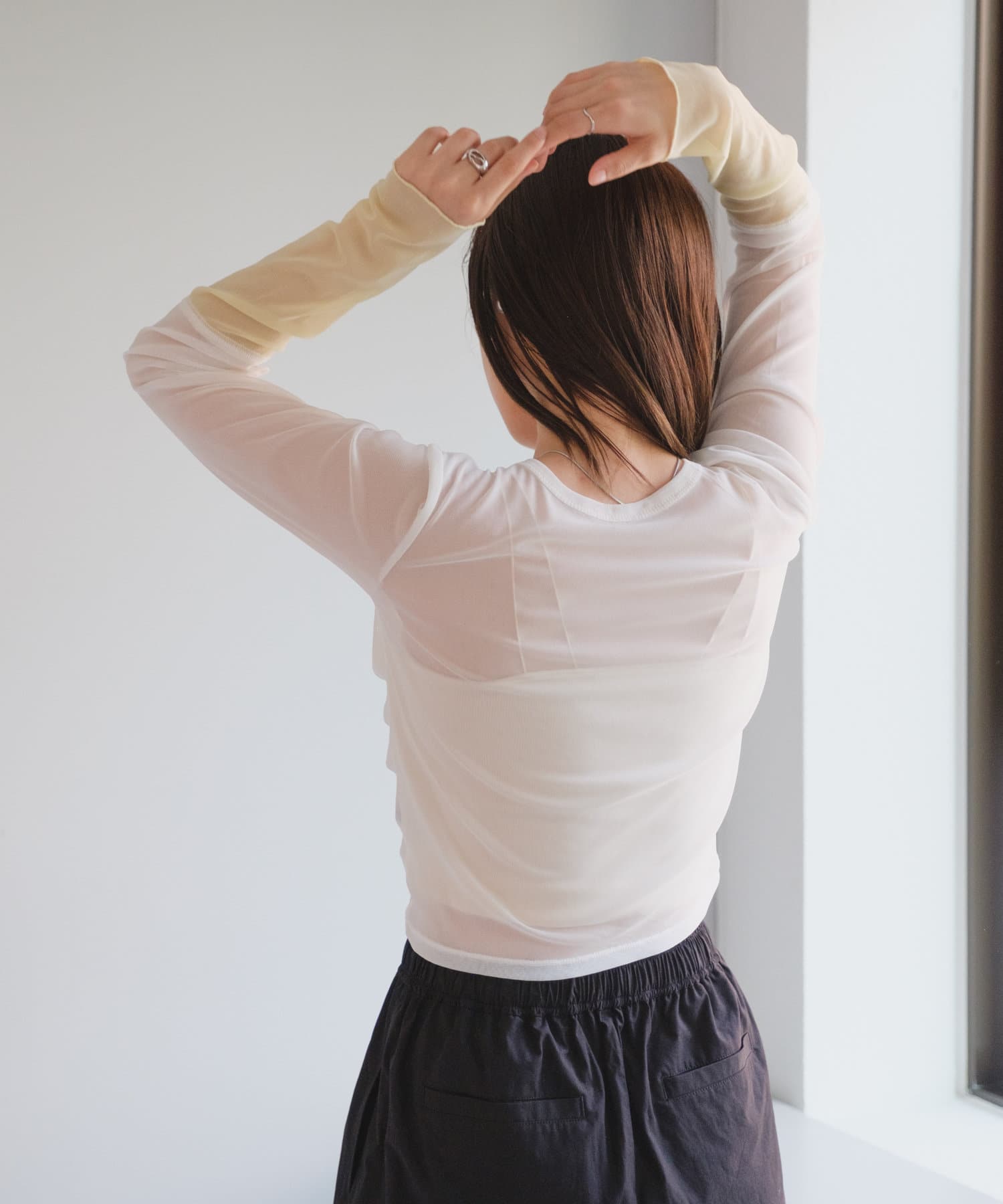 透け感のある素材が今年らしく、着るだけでこなれ感のある印象に。