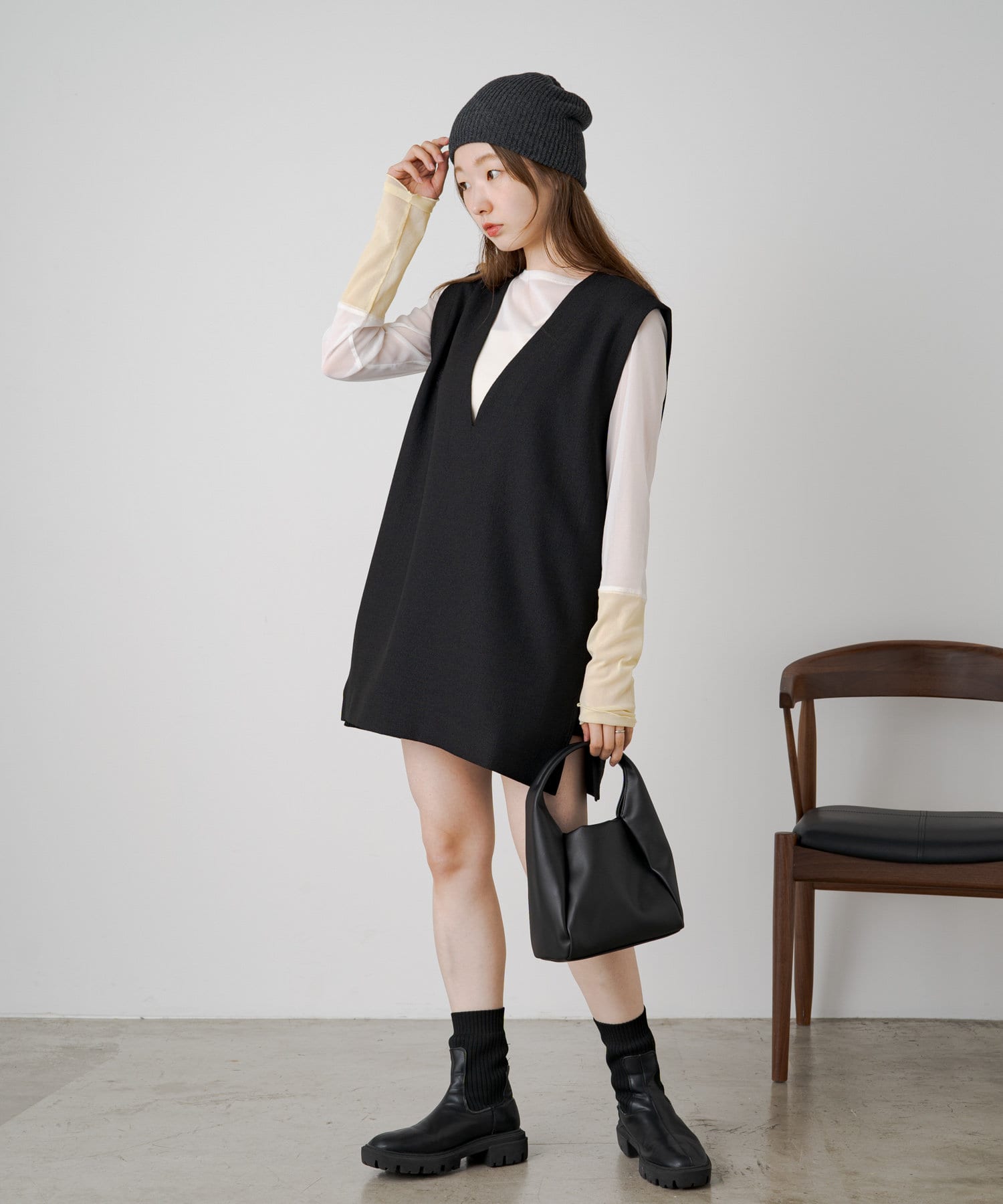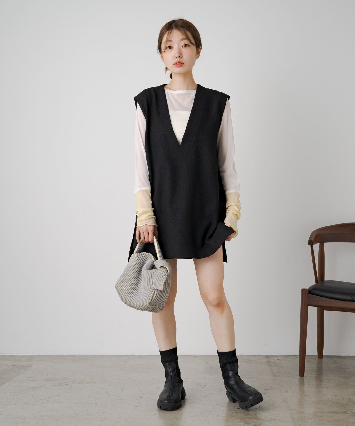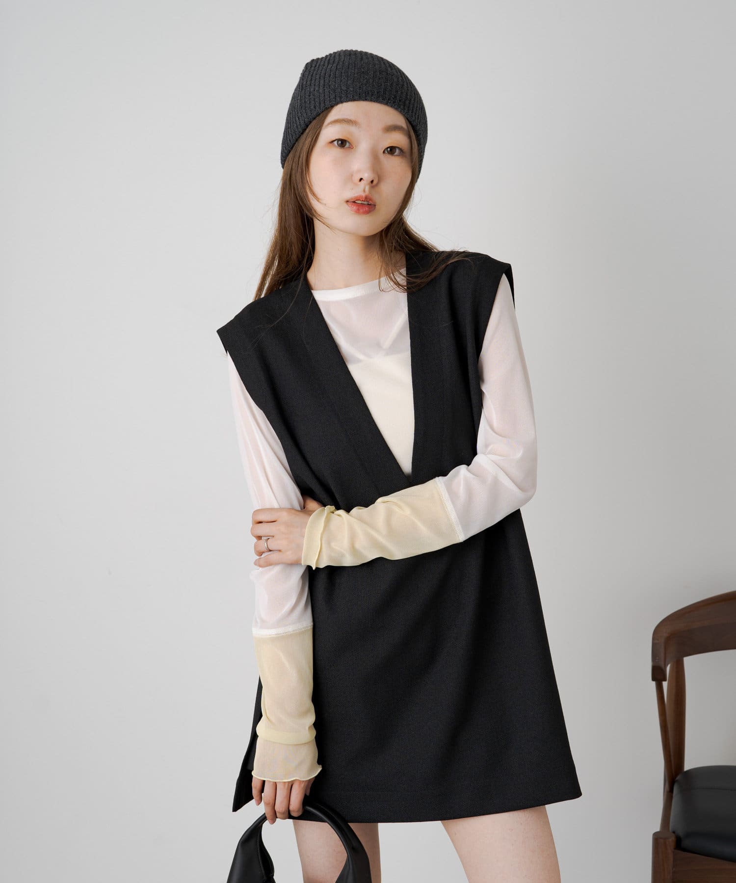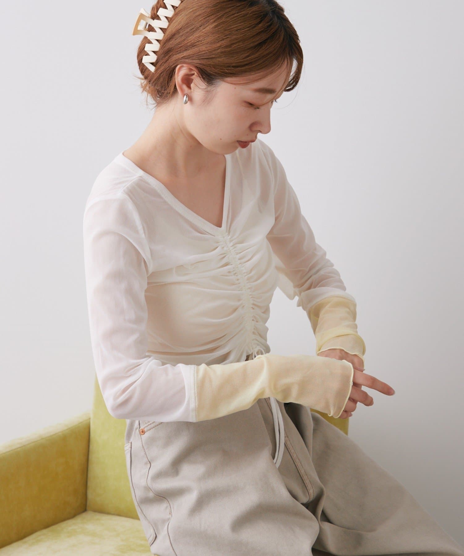 透け感のある素材が今年らしく、着るだけでこなれ感のある印象に。