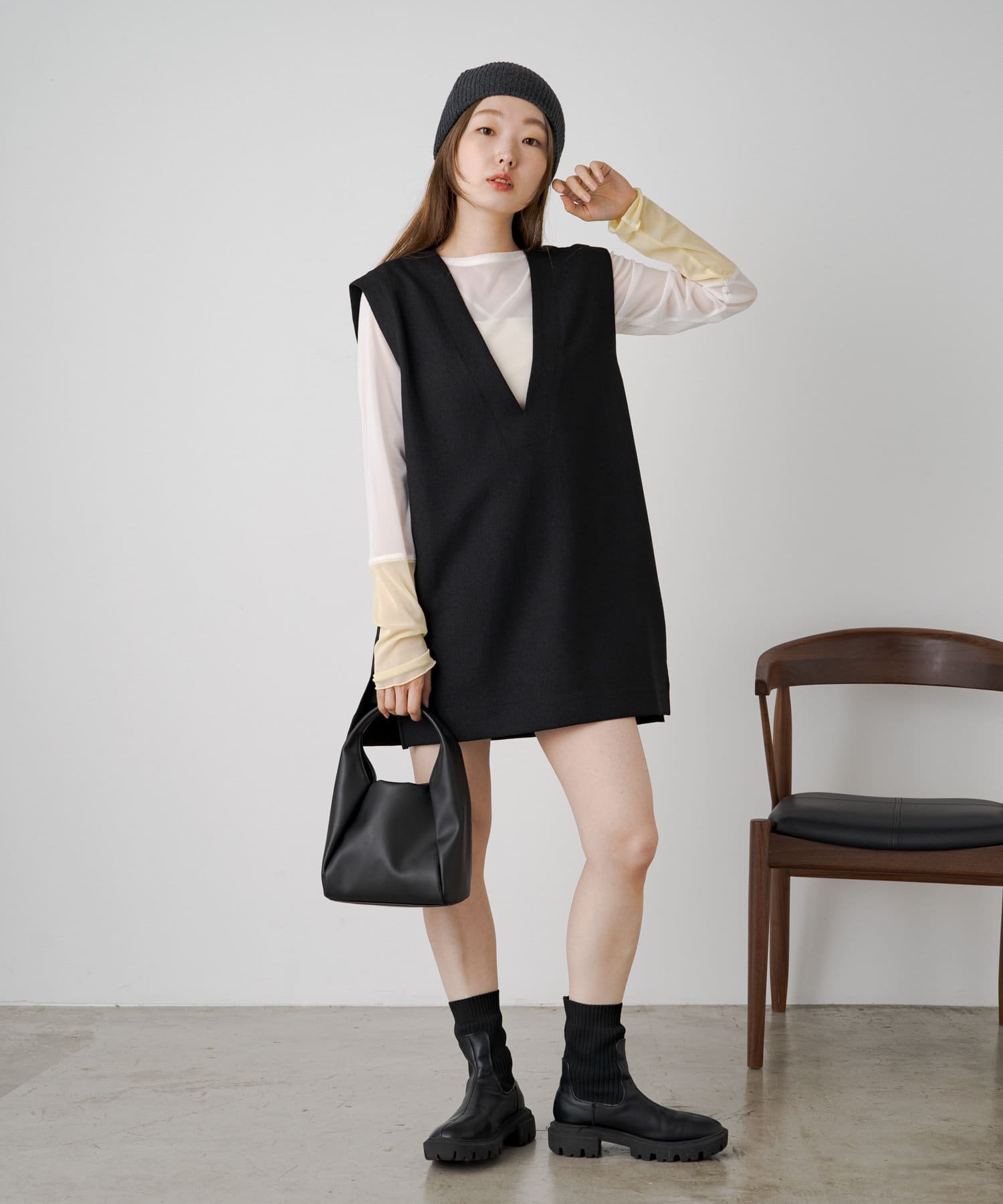 コンパクトなシルエットで、キャミワンピースやサロペットのインナーとしても活躍します。