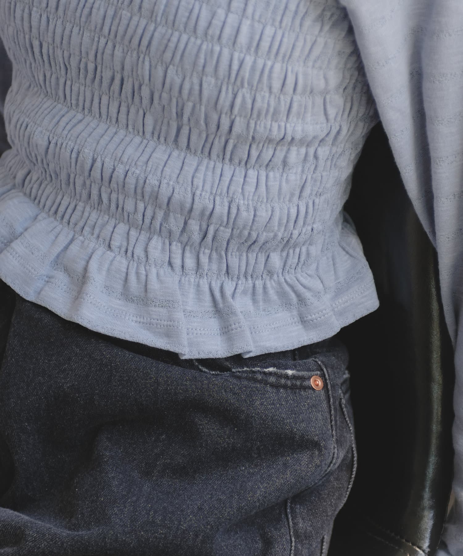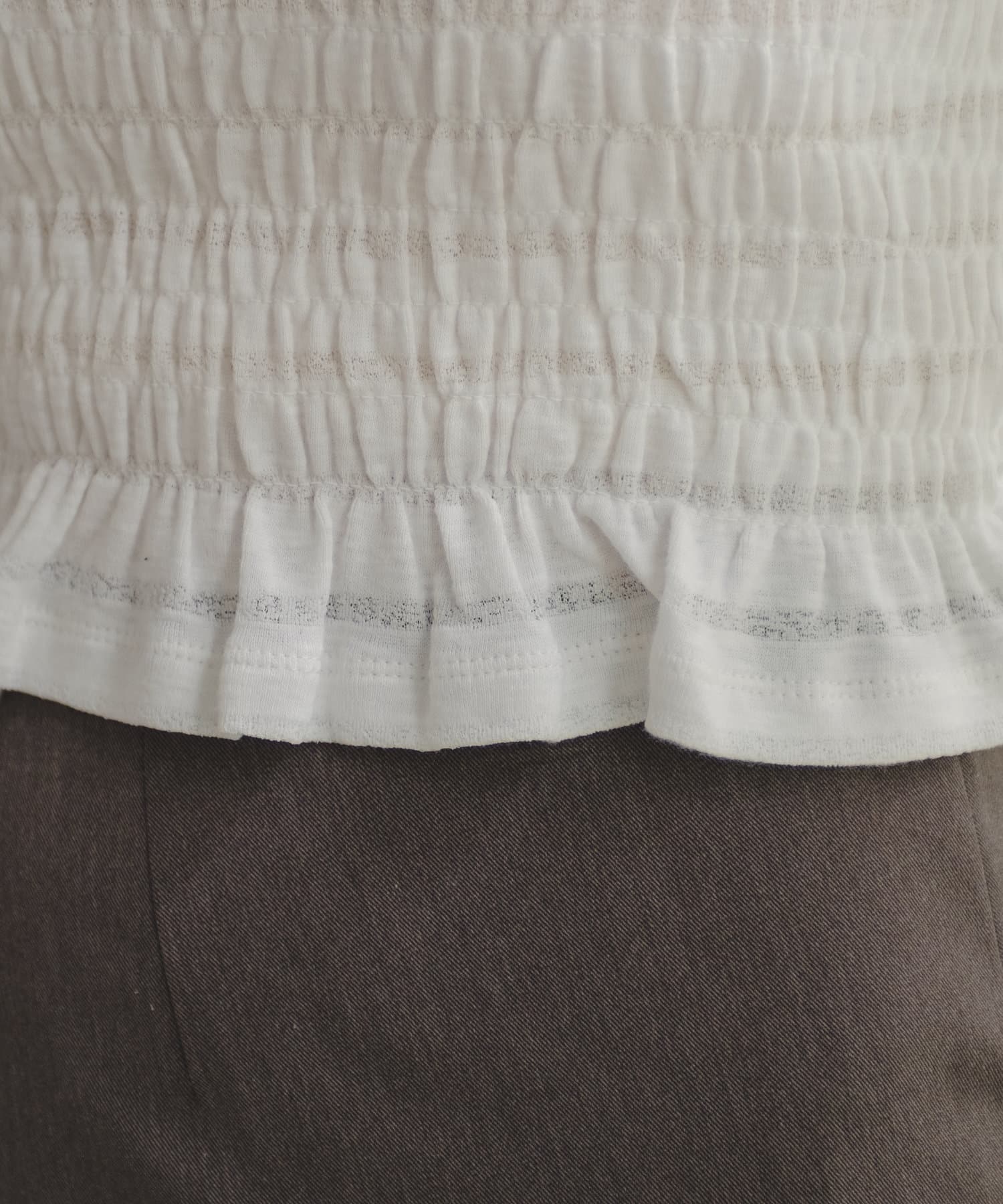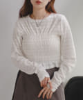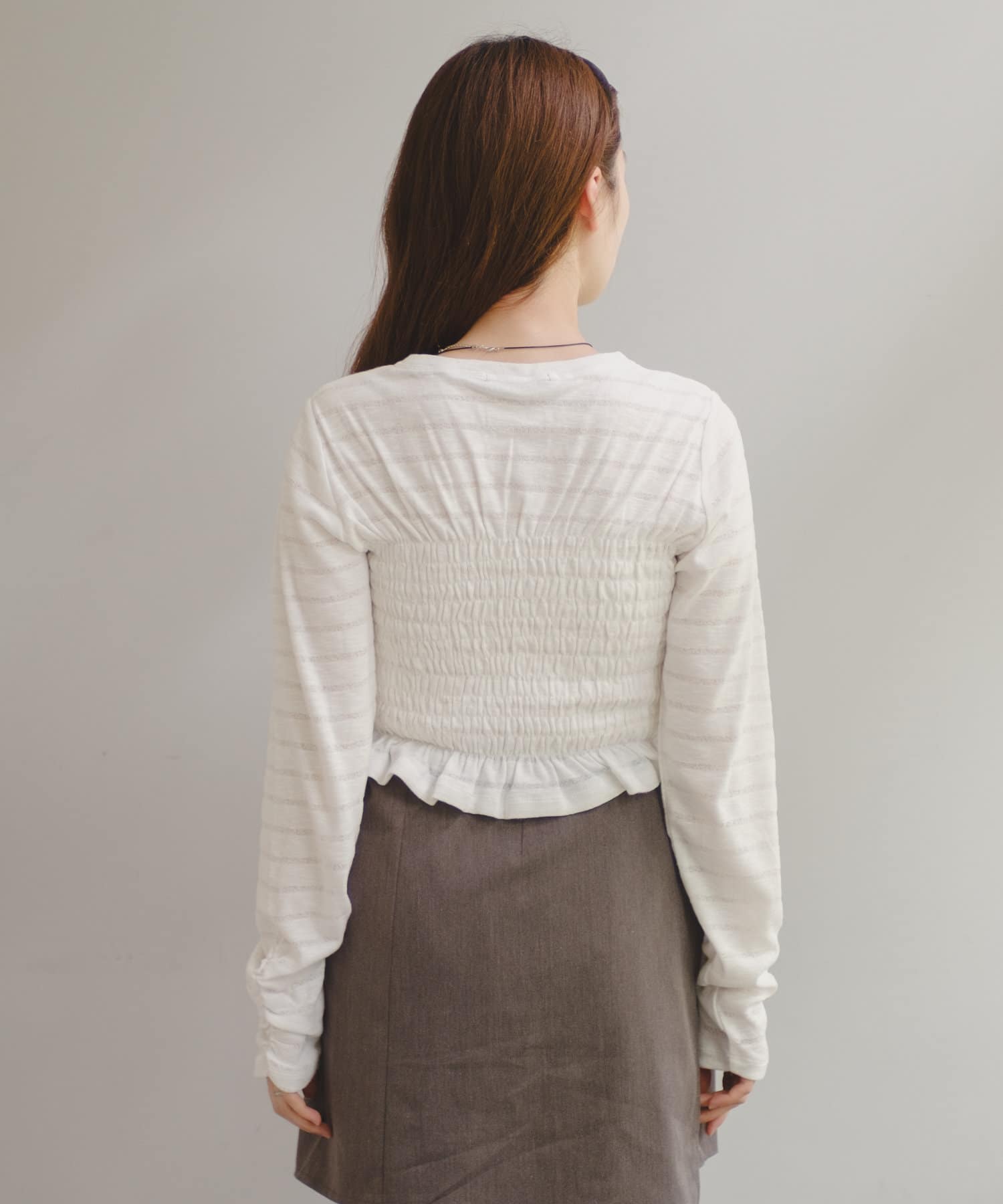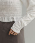 裾フリルや袖ギャザーなど細部まで抜かりない一枚。