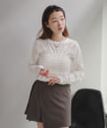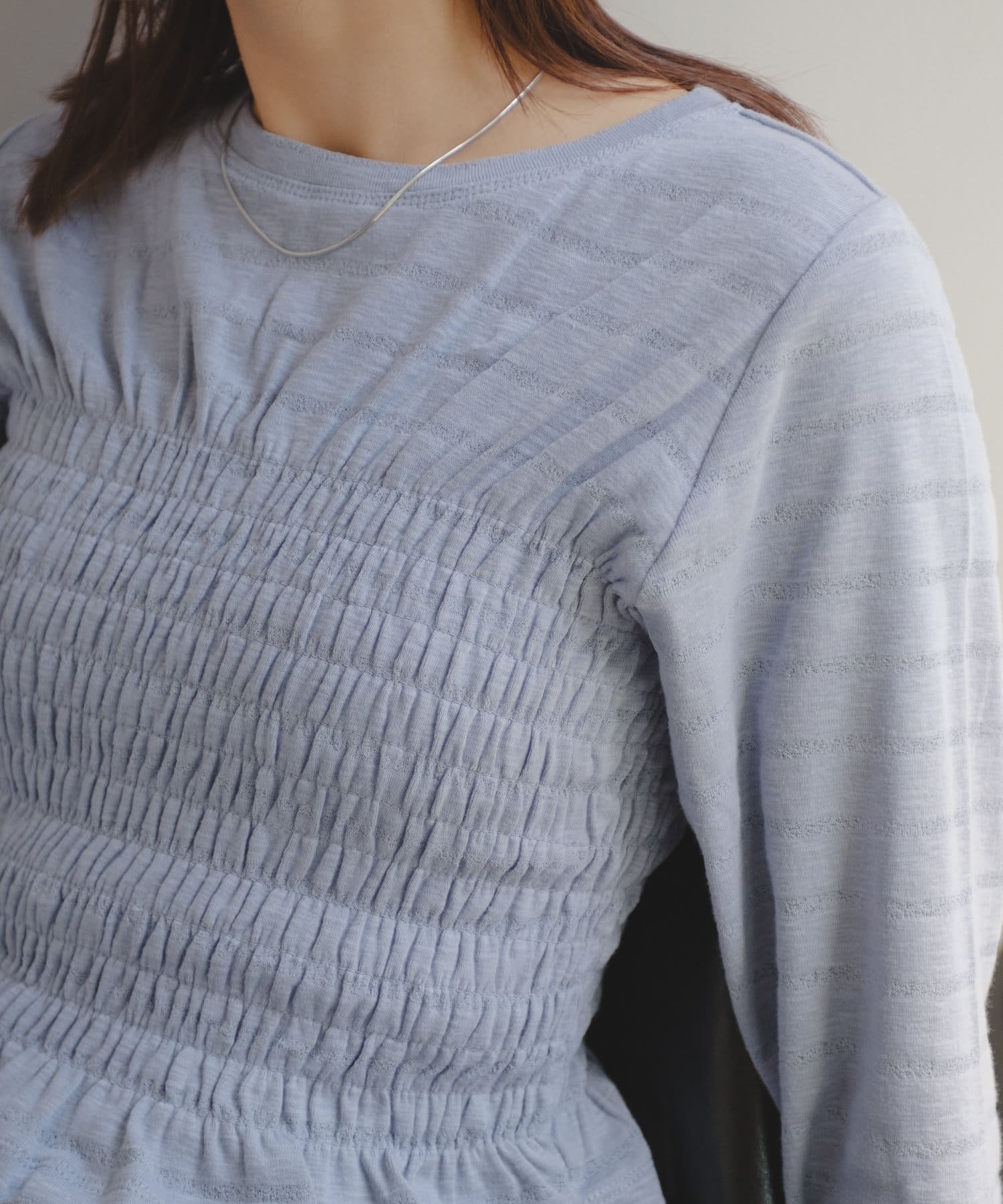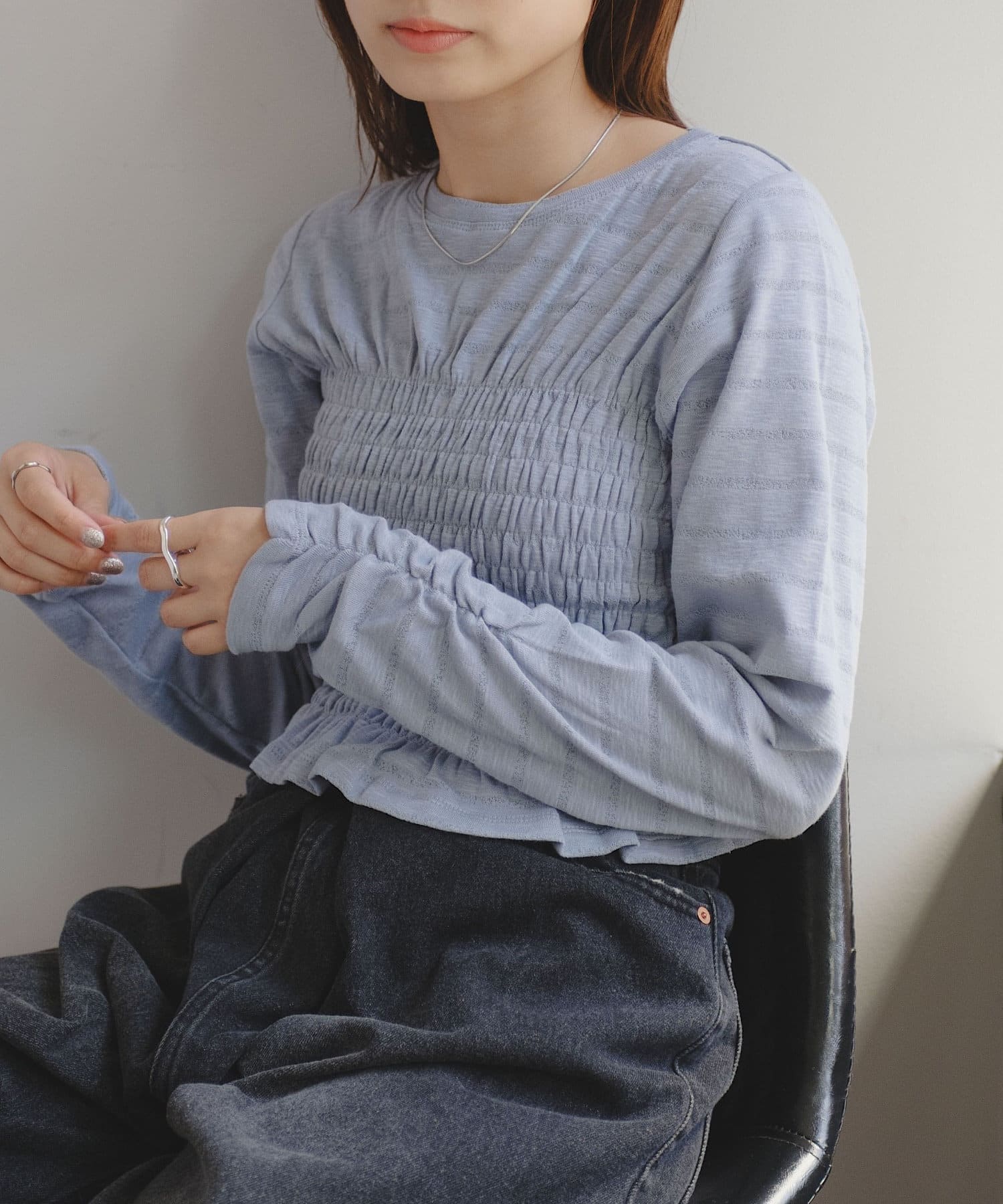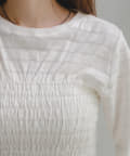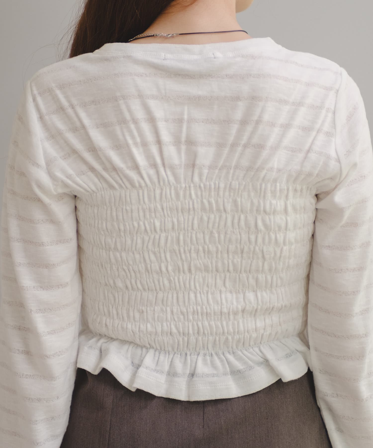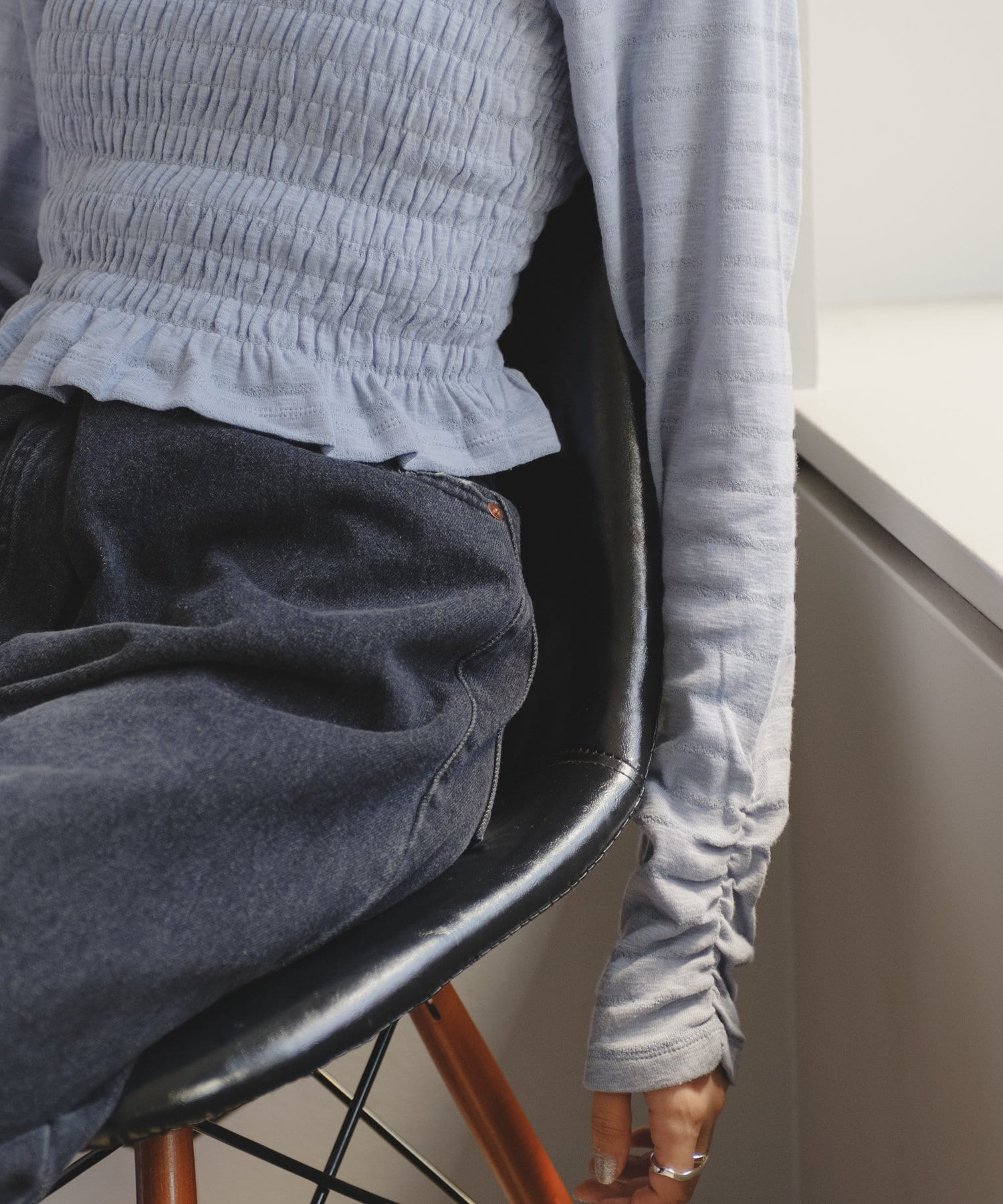裾フリルや袖ギャザーなど細部まで抜かりない一枚。
