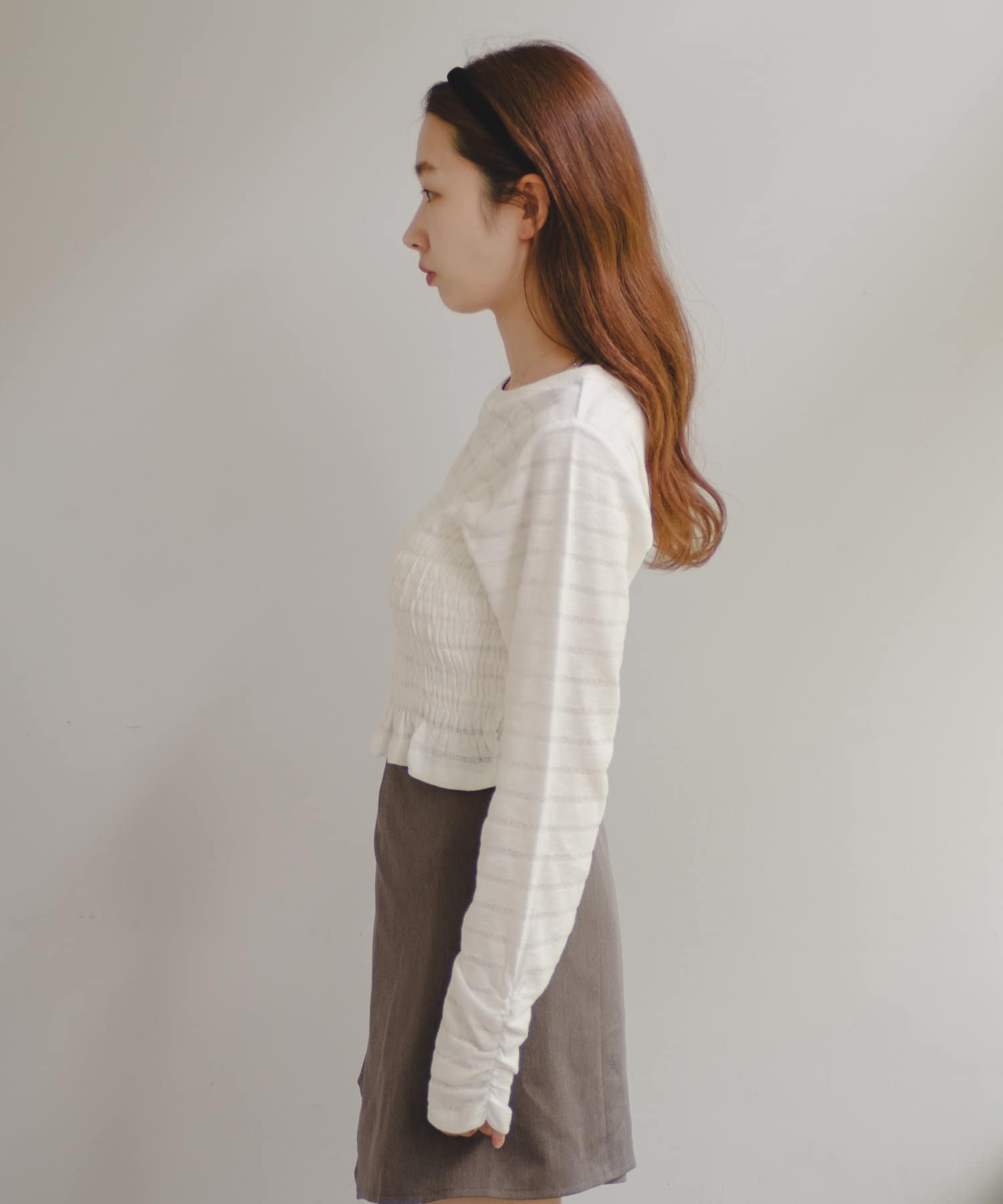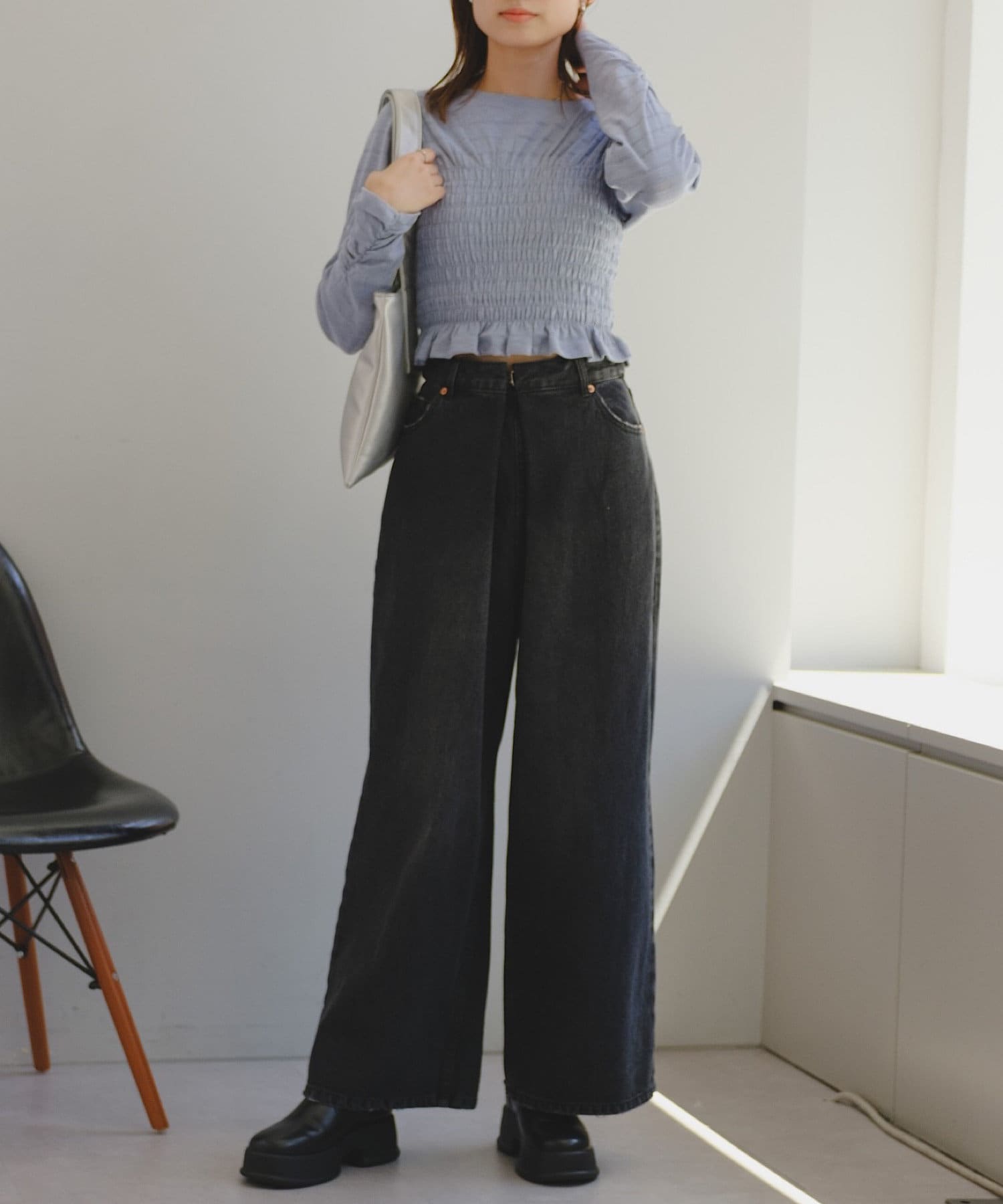 トレンドのクロップド丈なので、イン/アウトスタイルどちらもバランスよく決まります。