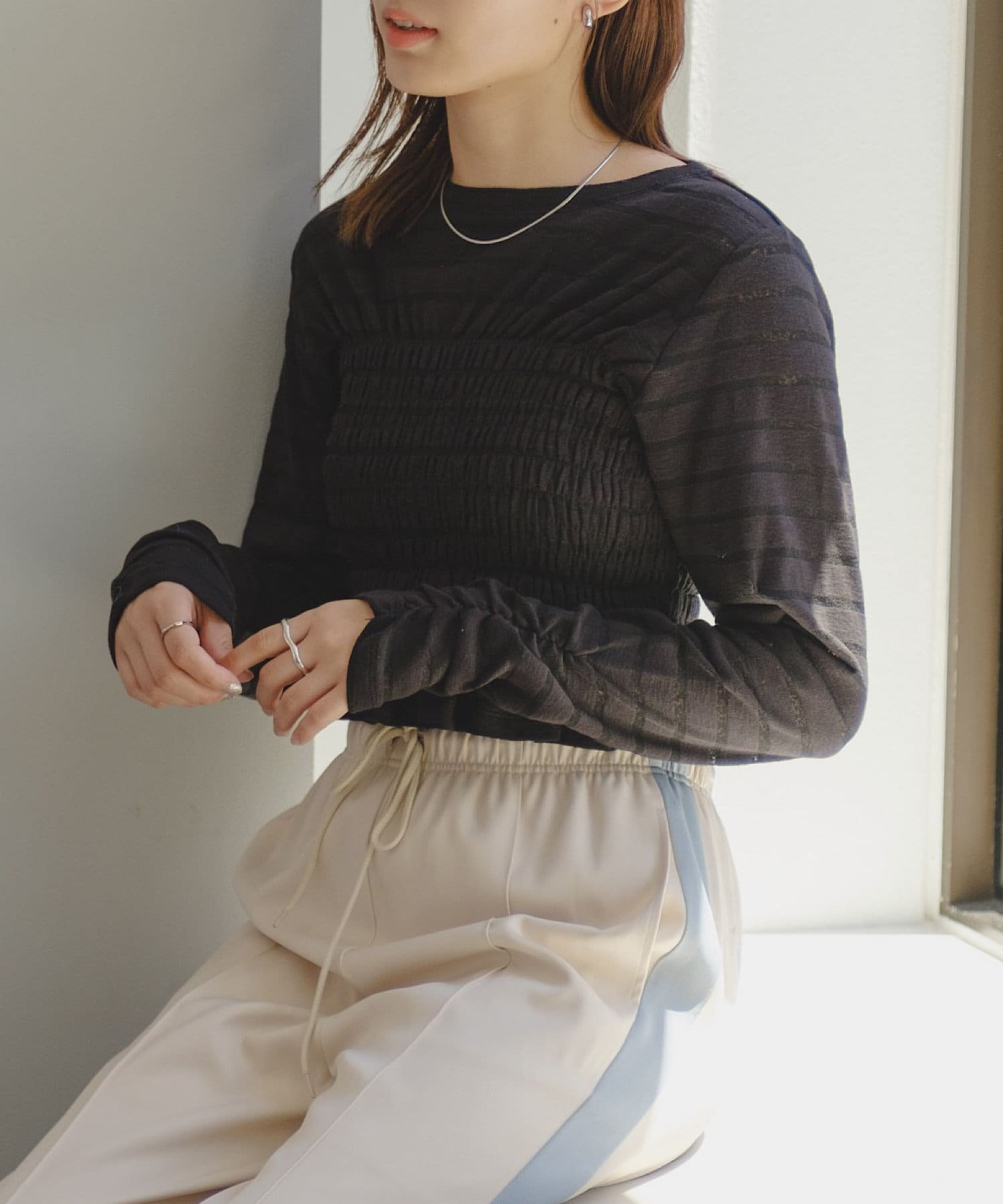 デザイン性を生かして一枚ではもちろん、レイヤードスタイルにも重宝します。