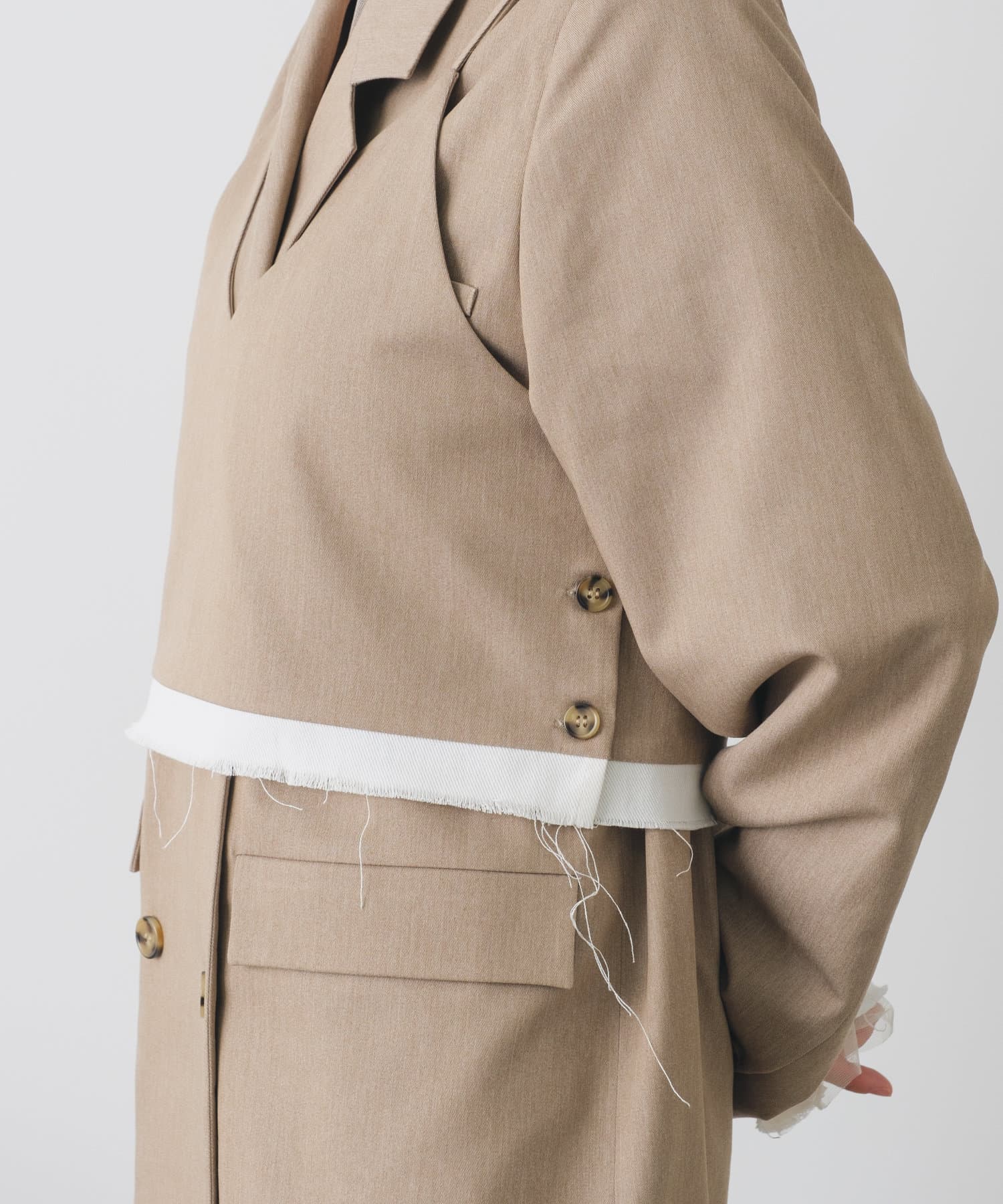 素材:【表地】ポリエステル79%,レーヨン20%,ポリウレタン1%【裏地】ジャケット:ポリエステル100% ビスチェ:ポリエステル66%,綿34%【裾別布】綿100%
