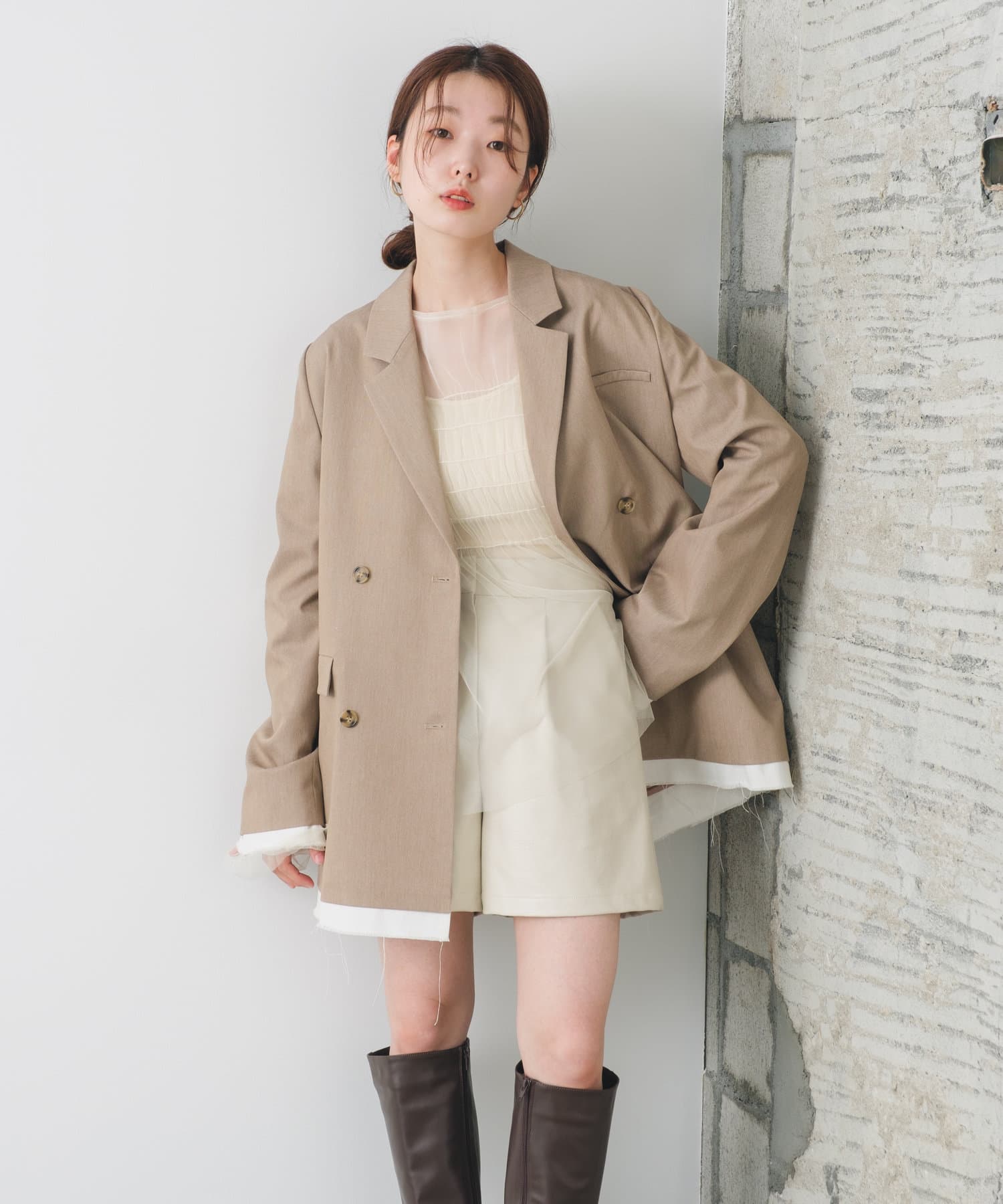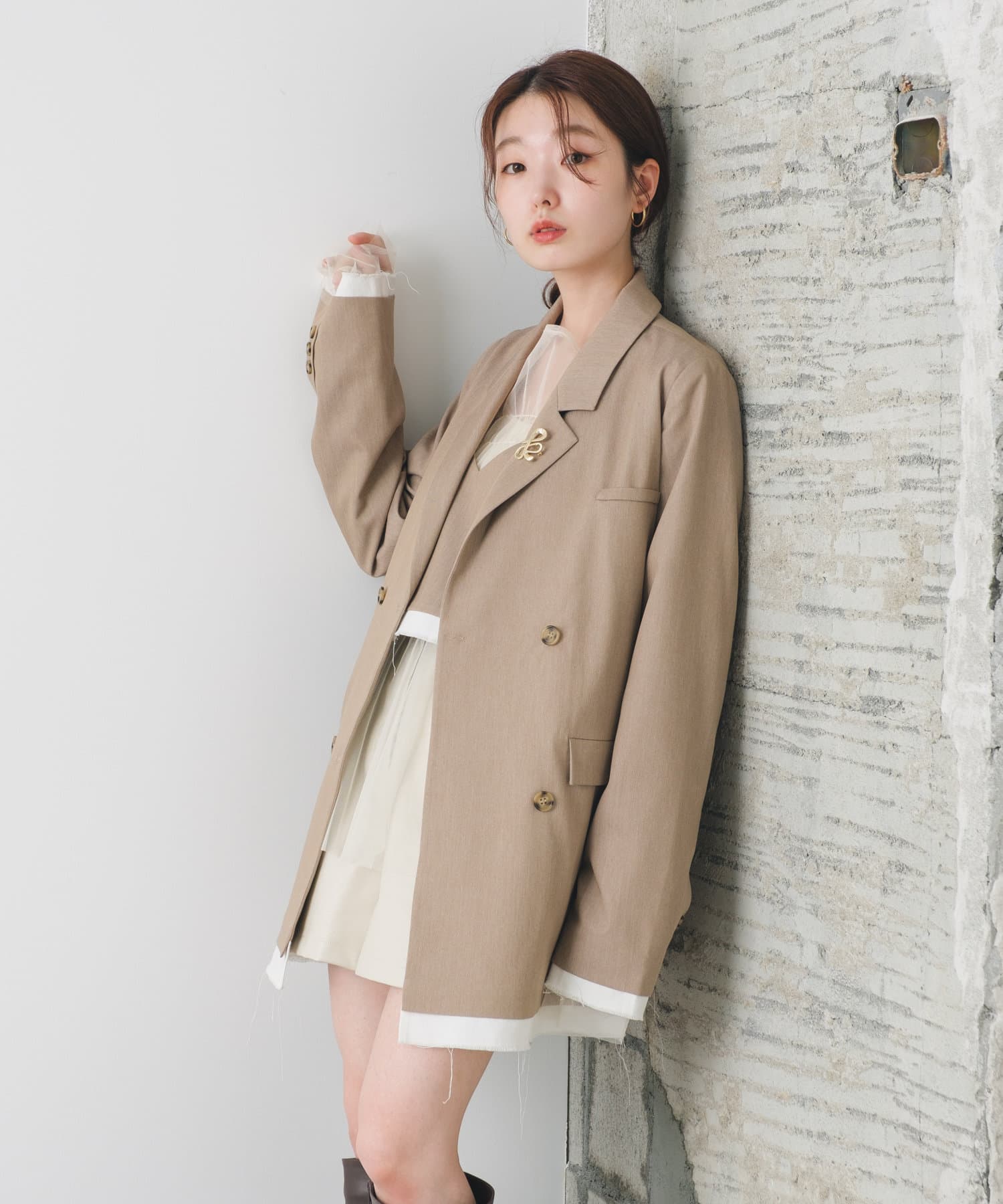 きちんと感あるベーシックなダブルジャケットで単品でも活躍します。