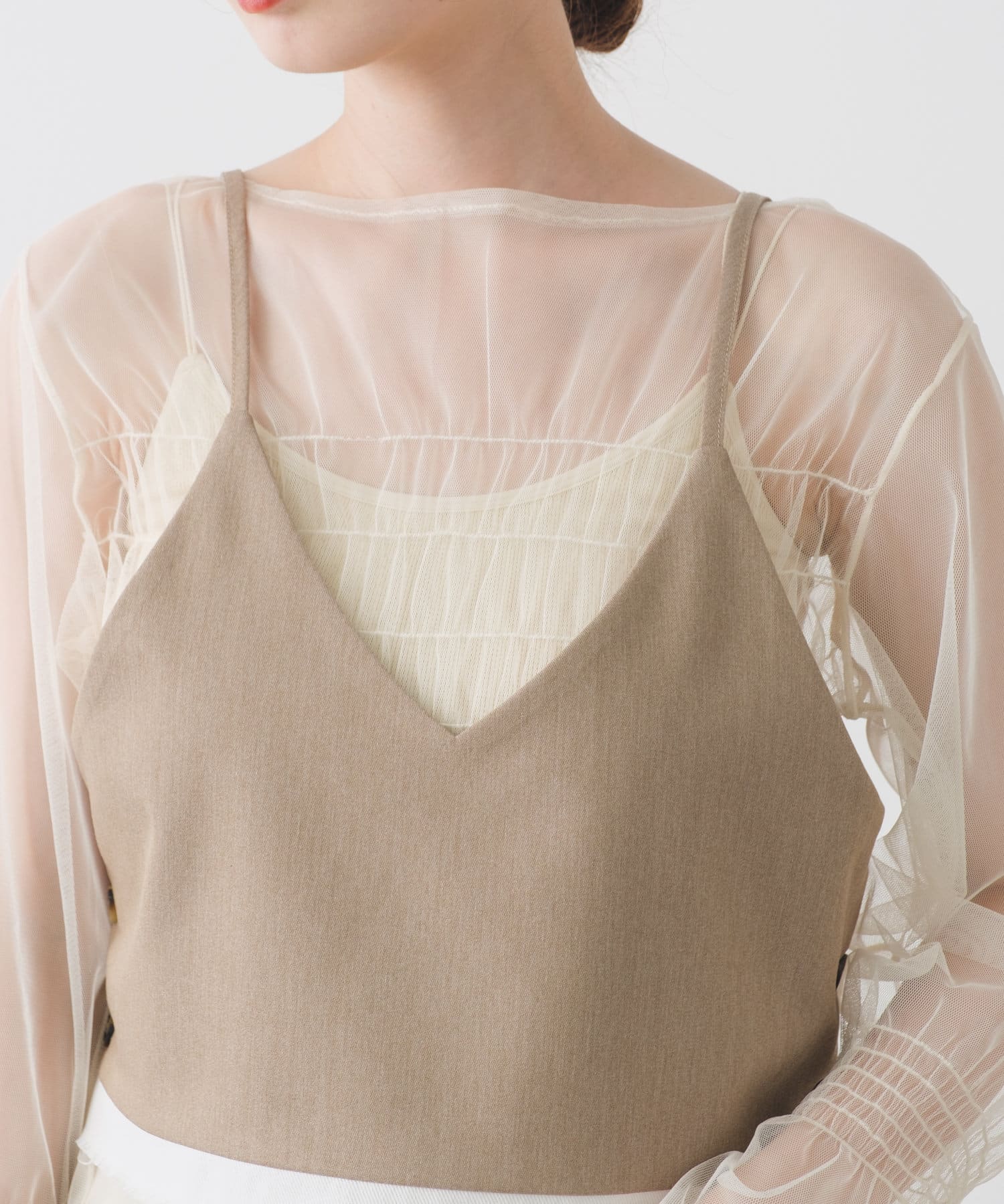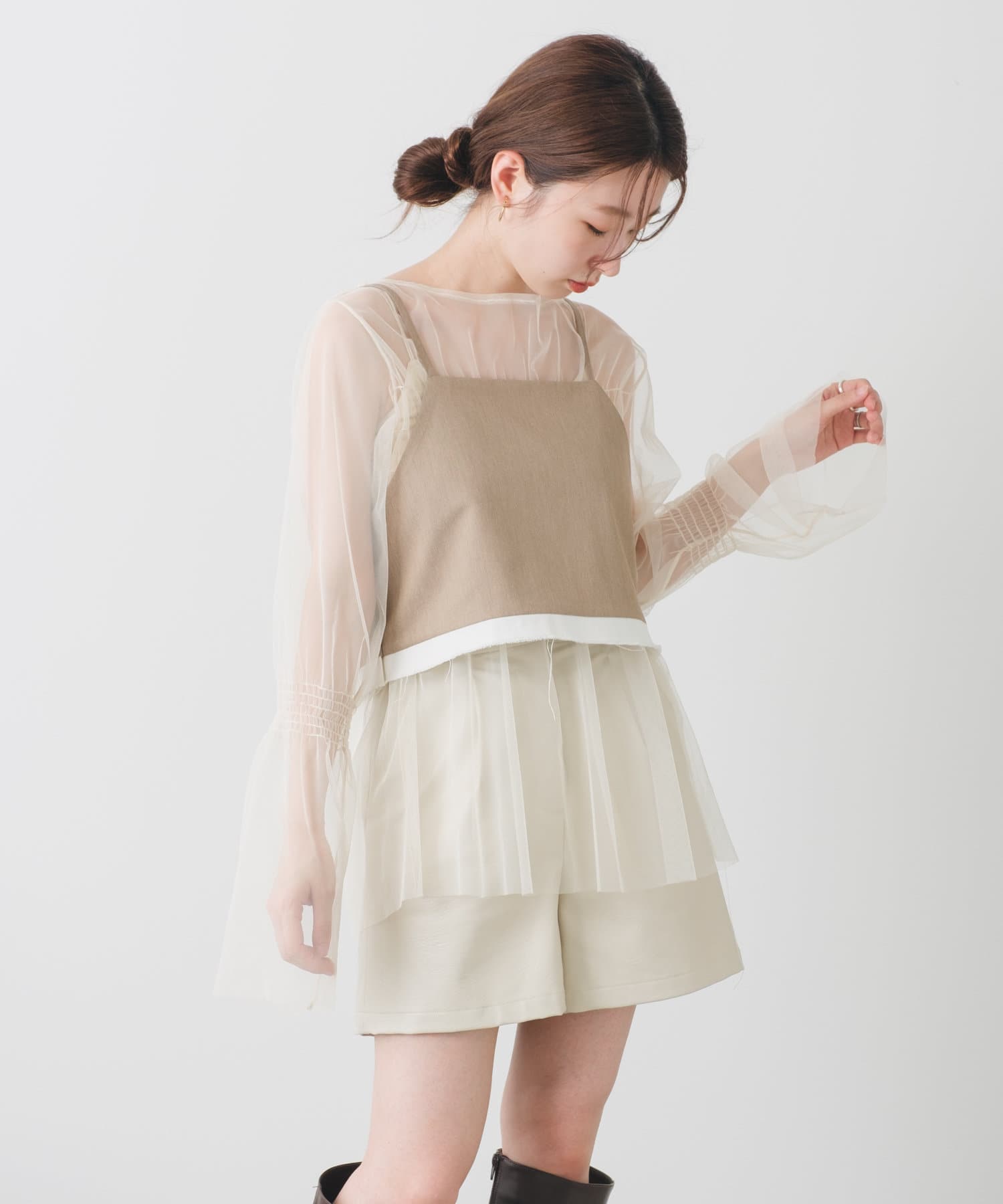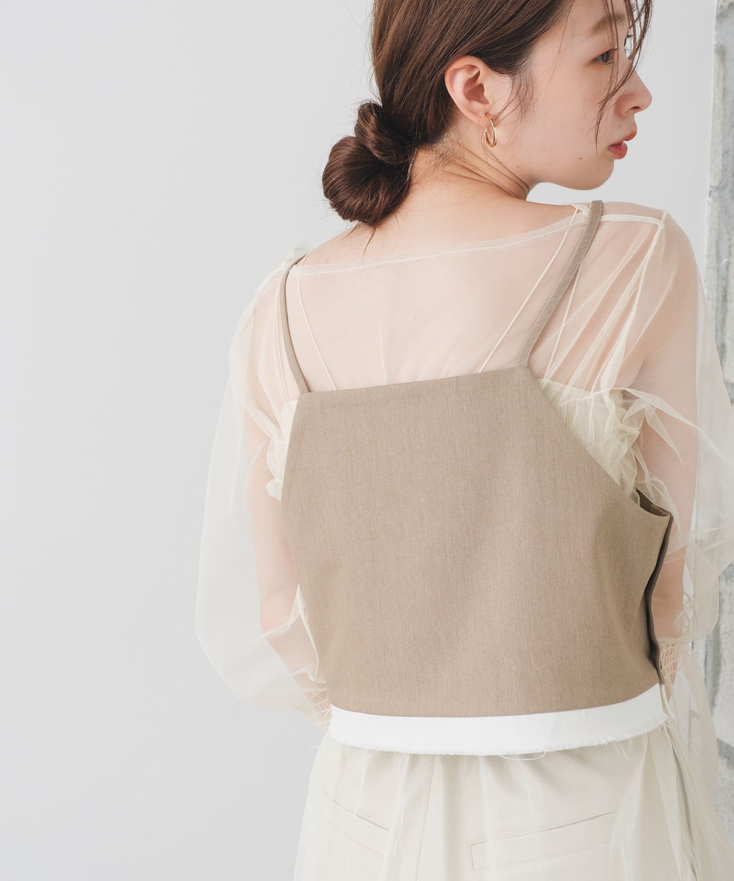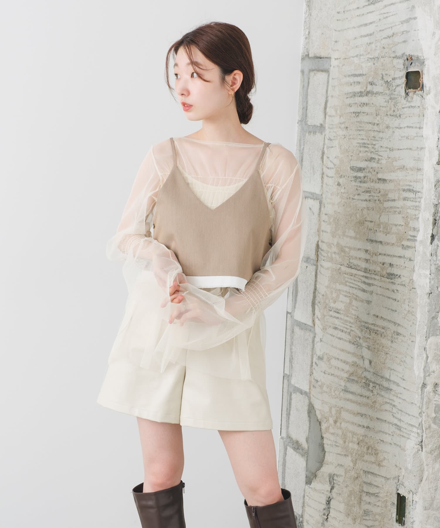 ビスチェはゆとりあるデザインなので薄手のブラウスやシアートップスだけでなく、