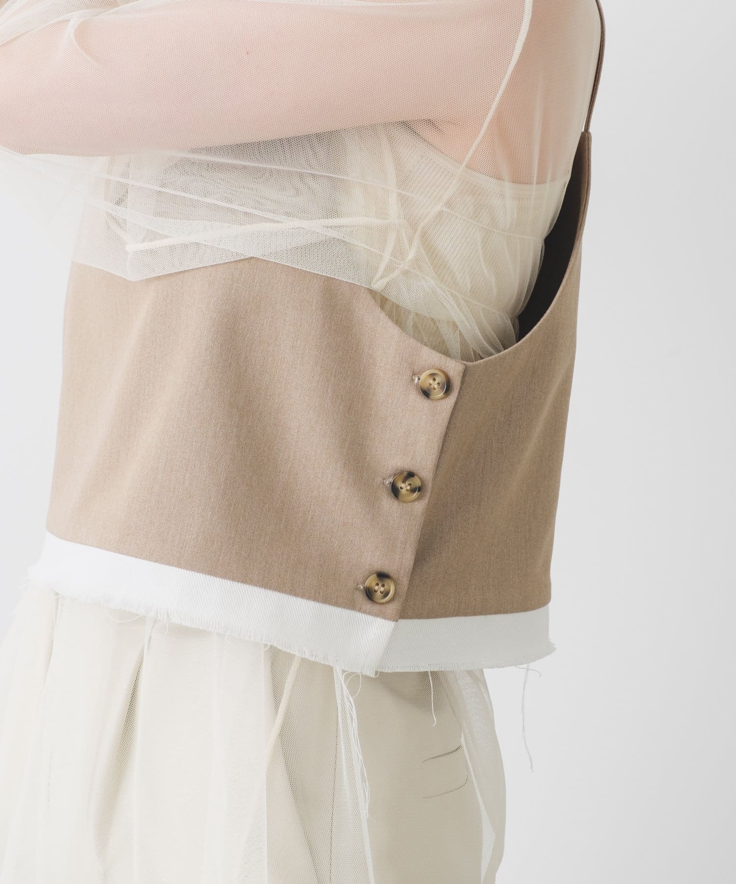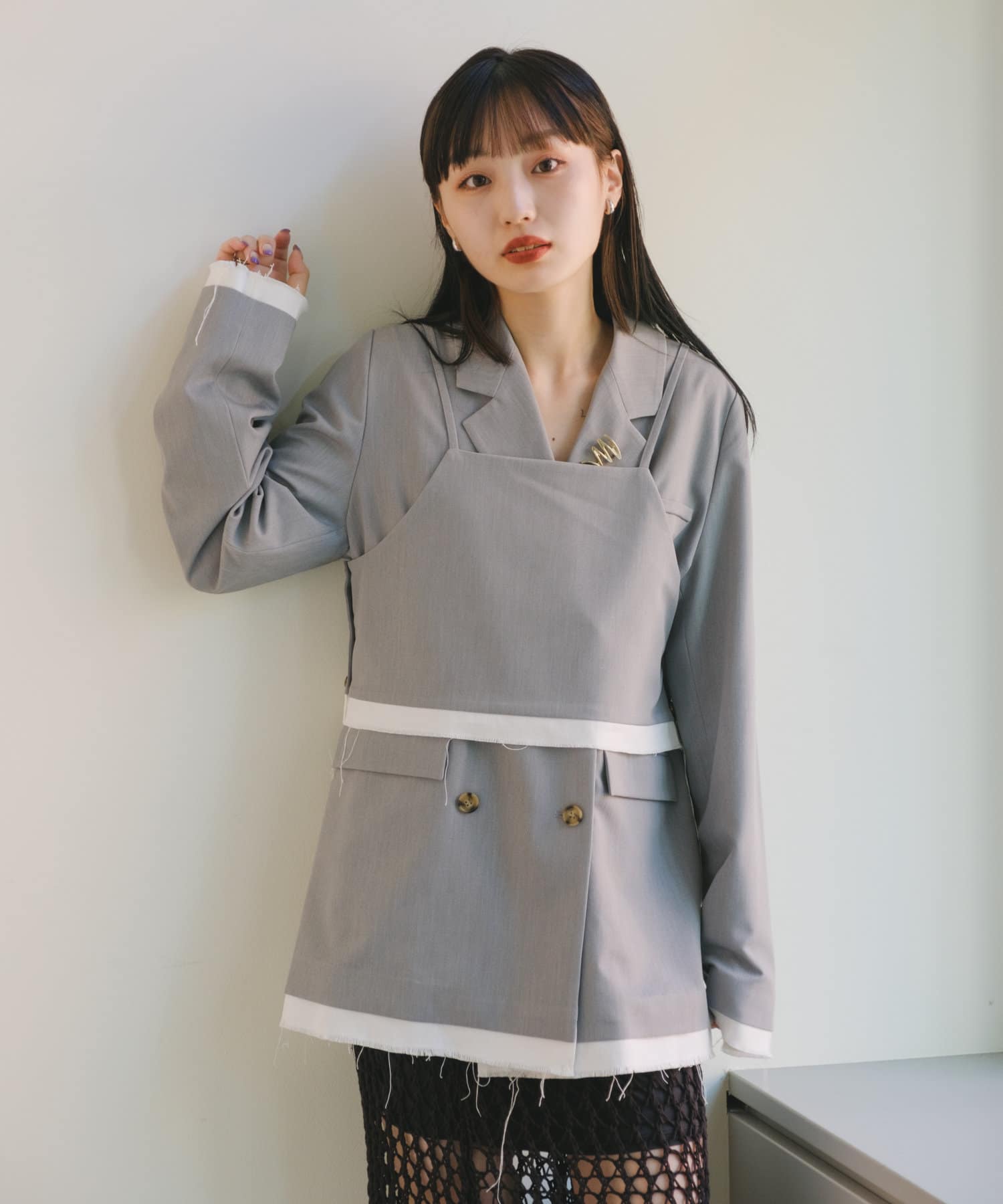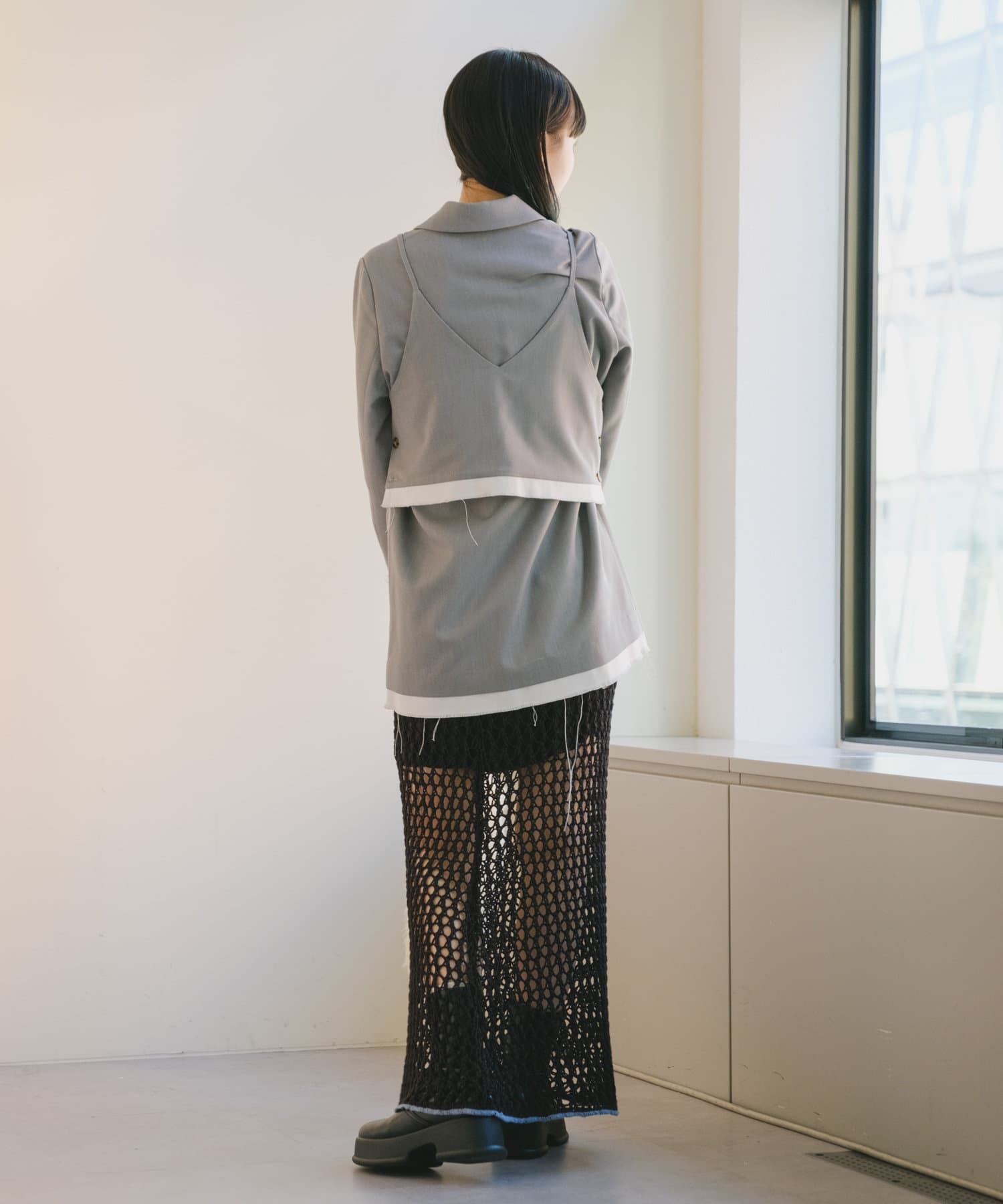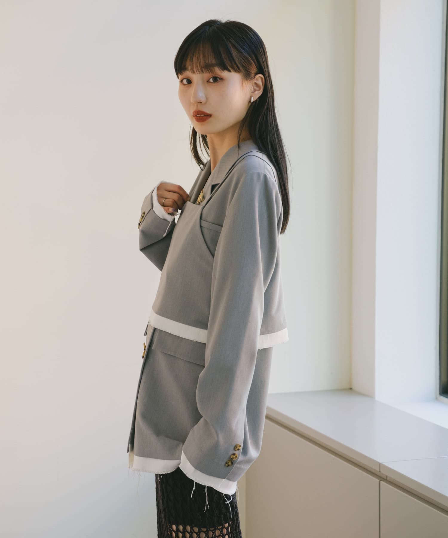 セットで着用する際はビスチェをインナーとして、トレンドライクにジャケットの上から重ねても。