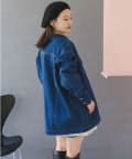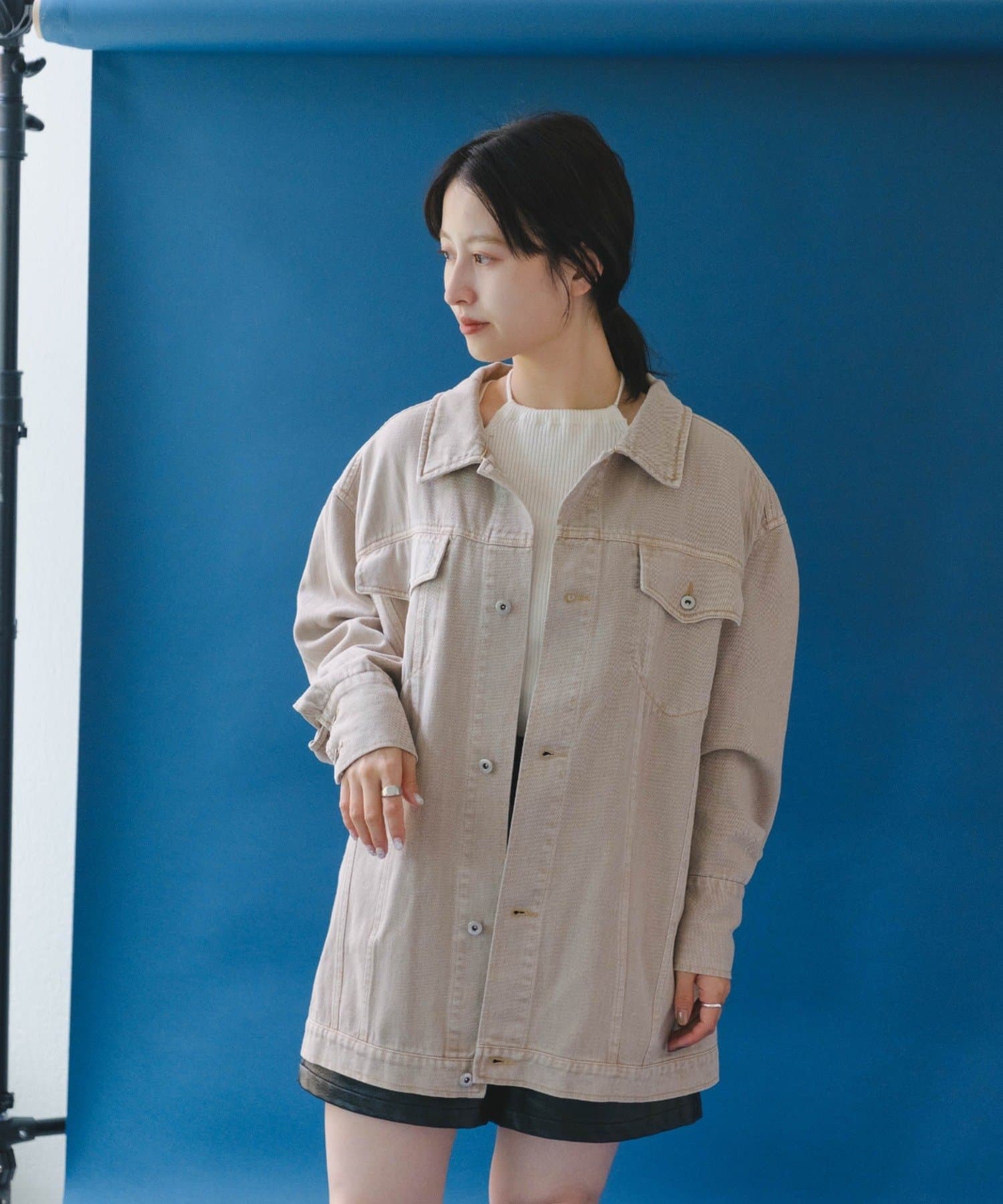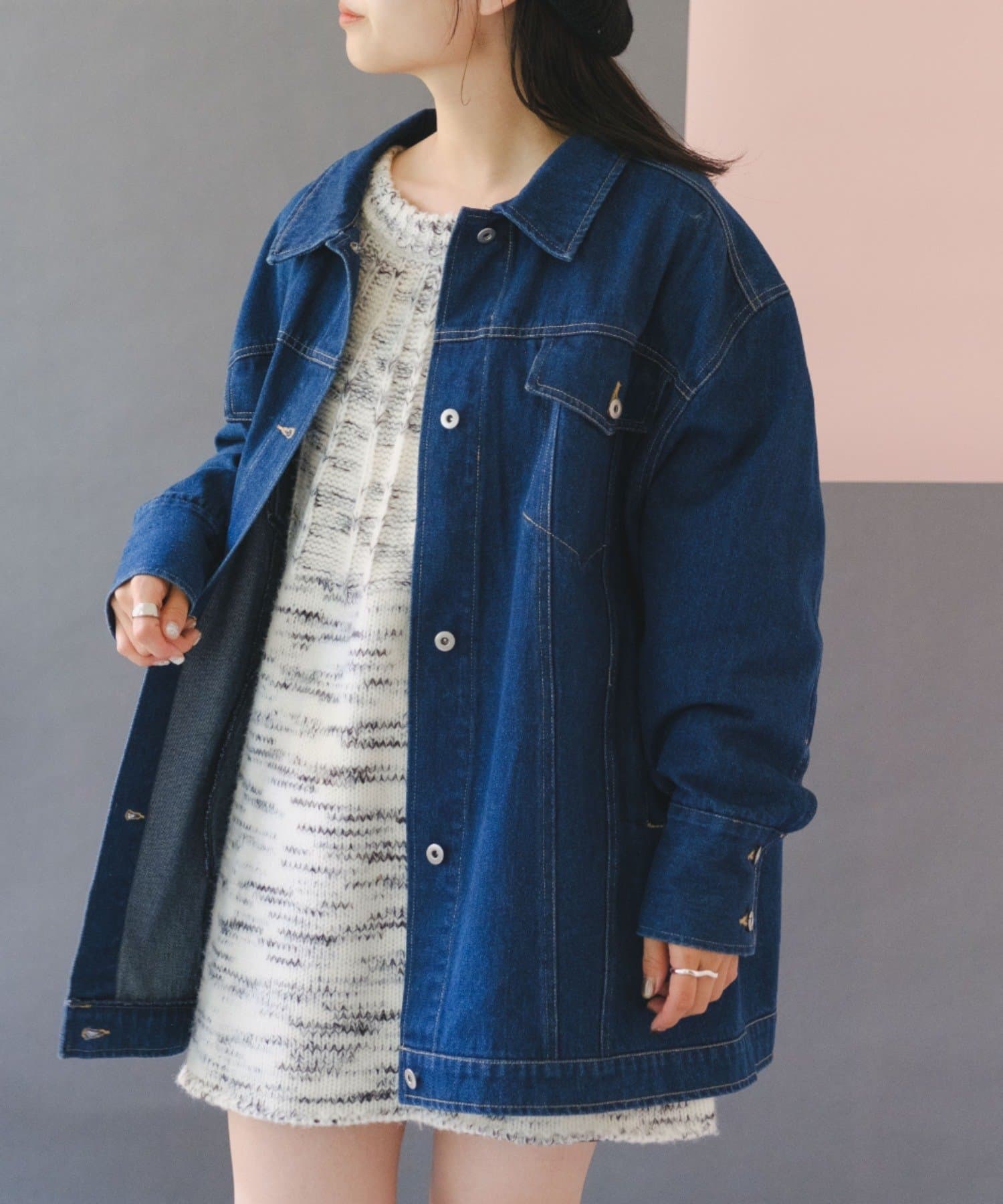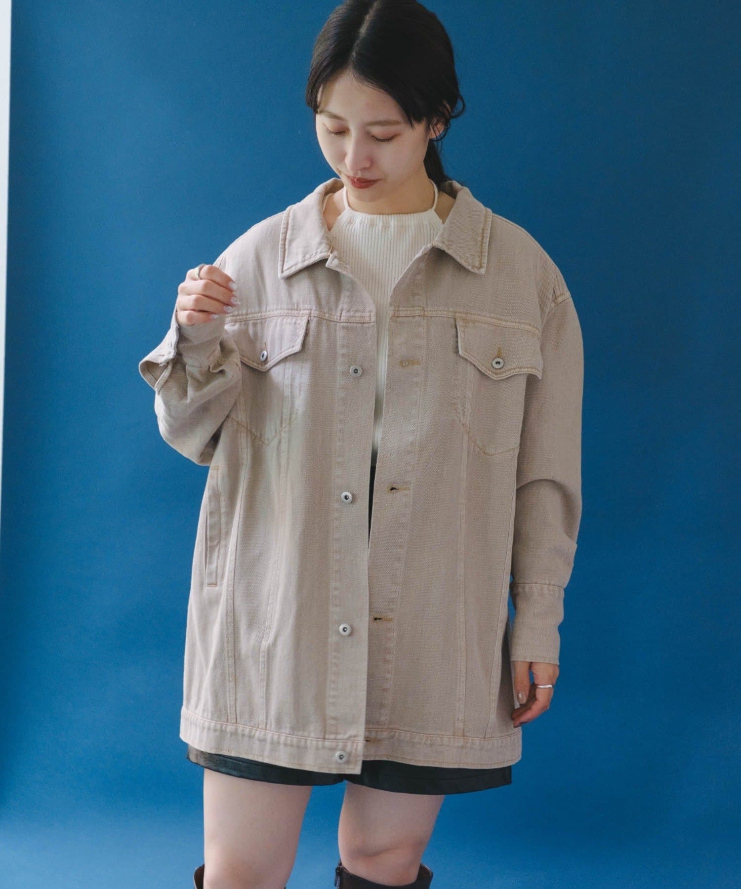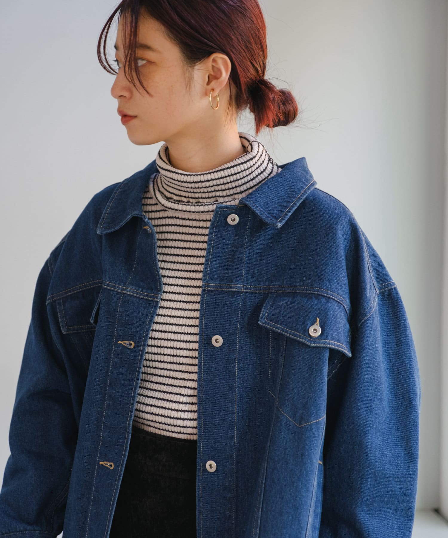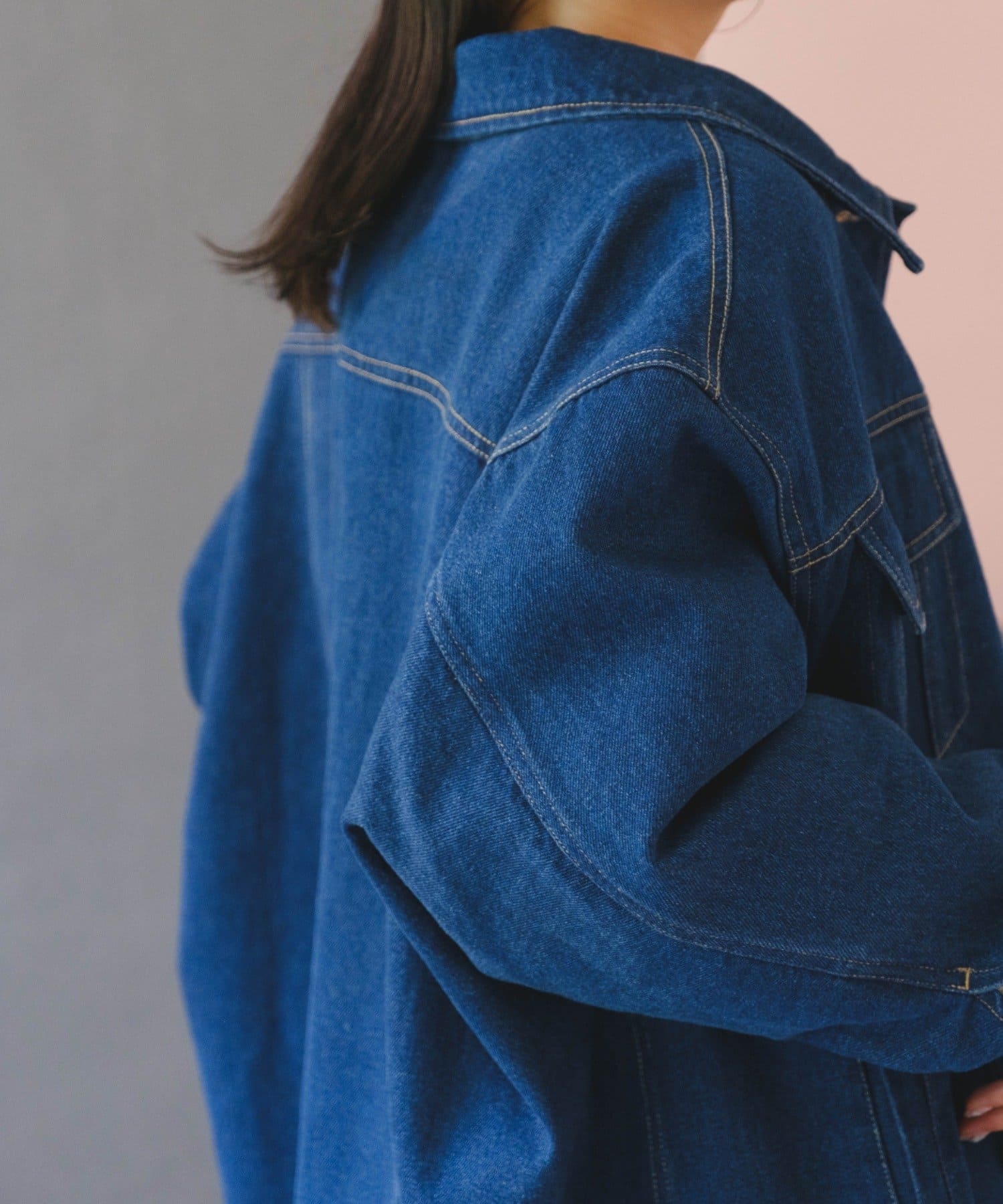ゆったりとしたデザインが特徴のデニムジャケット。