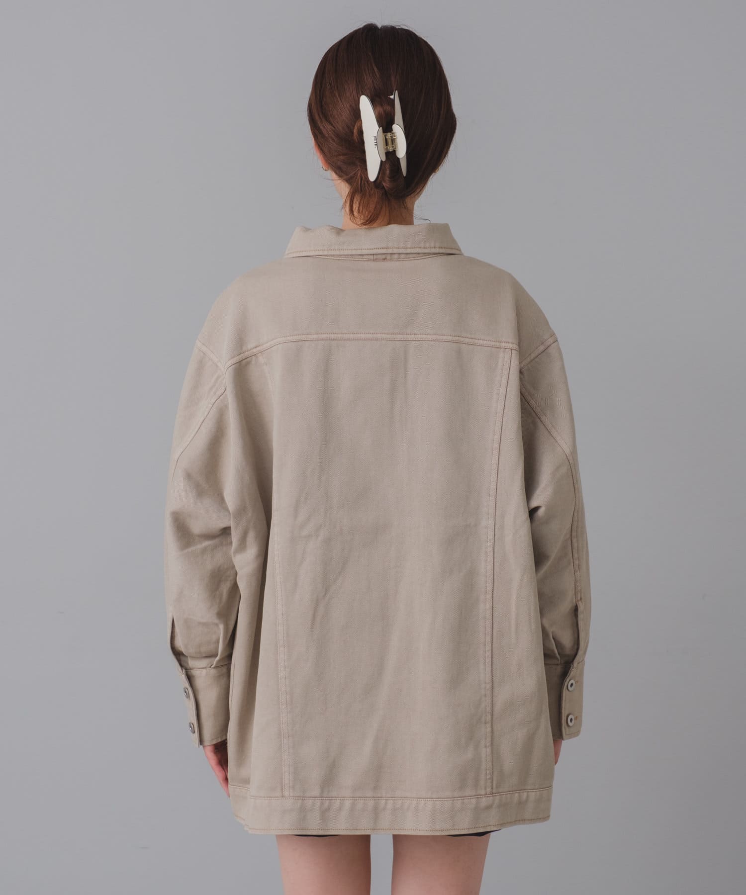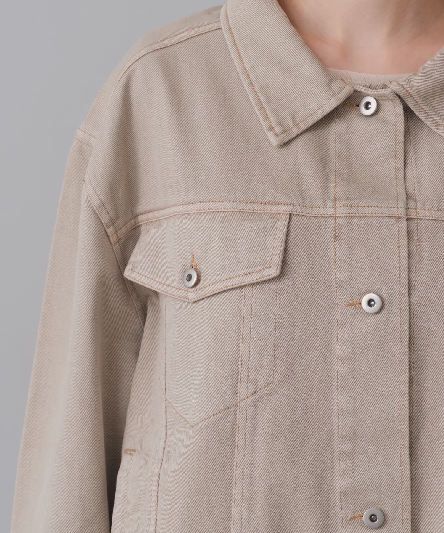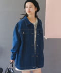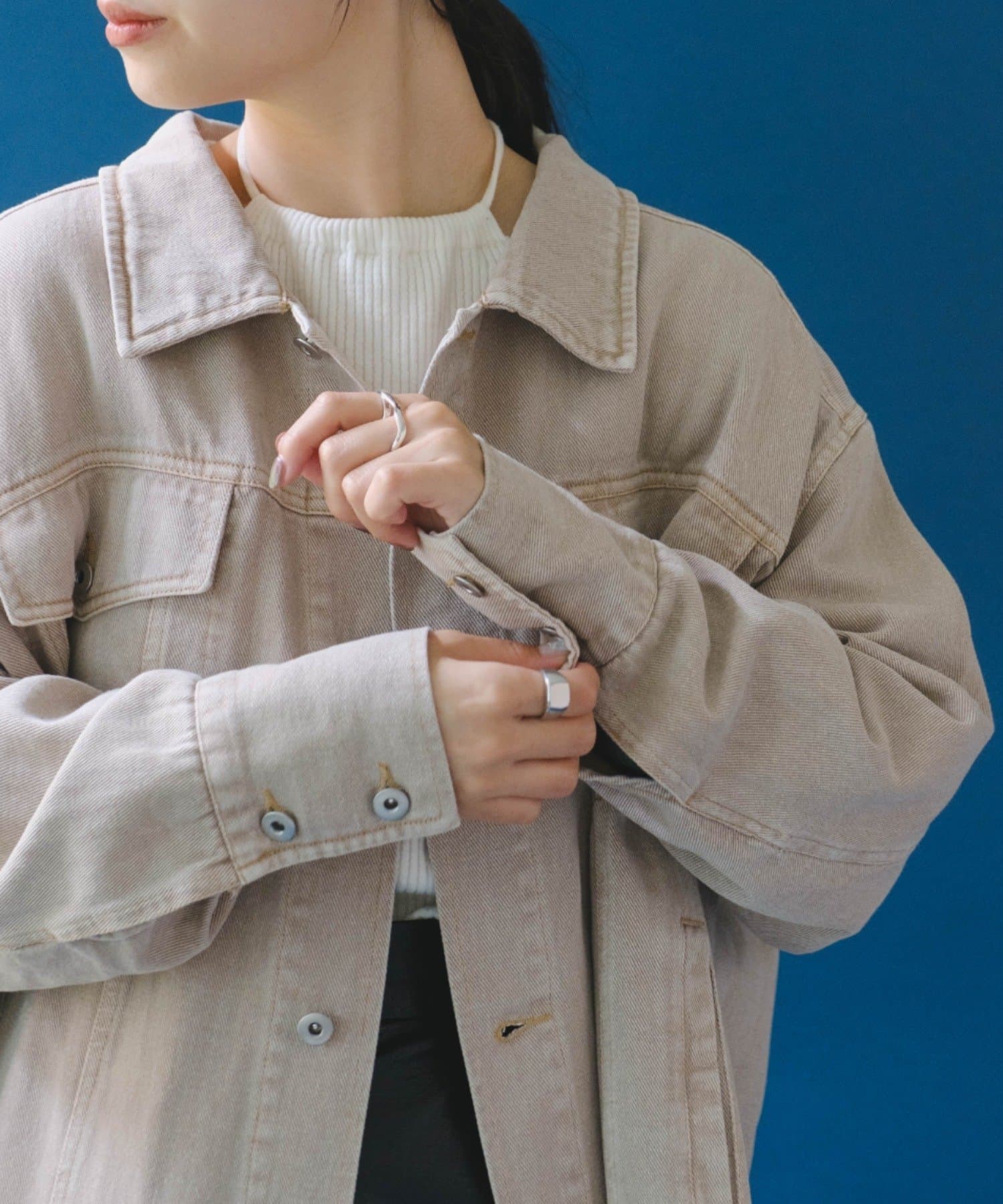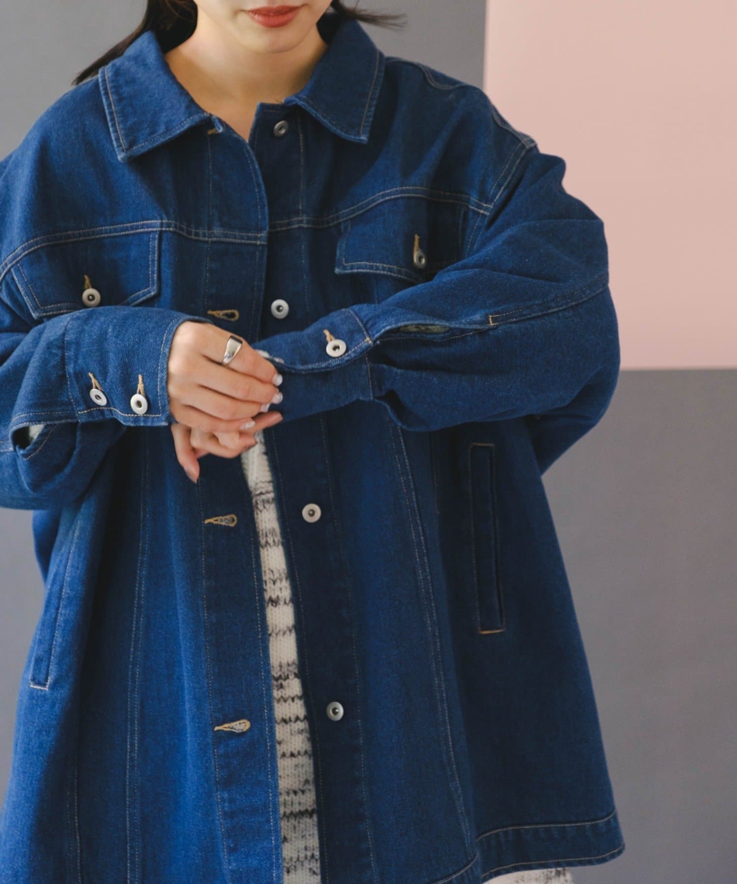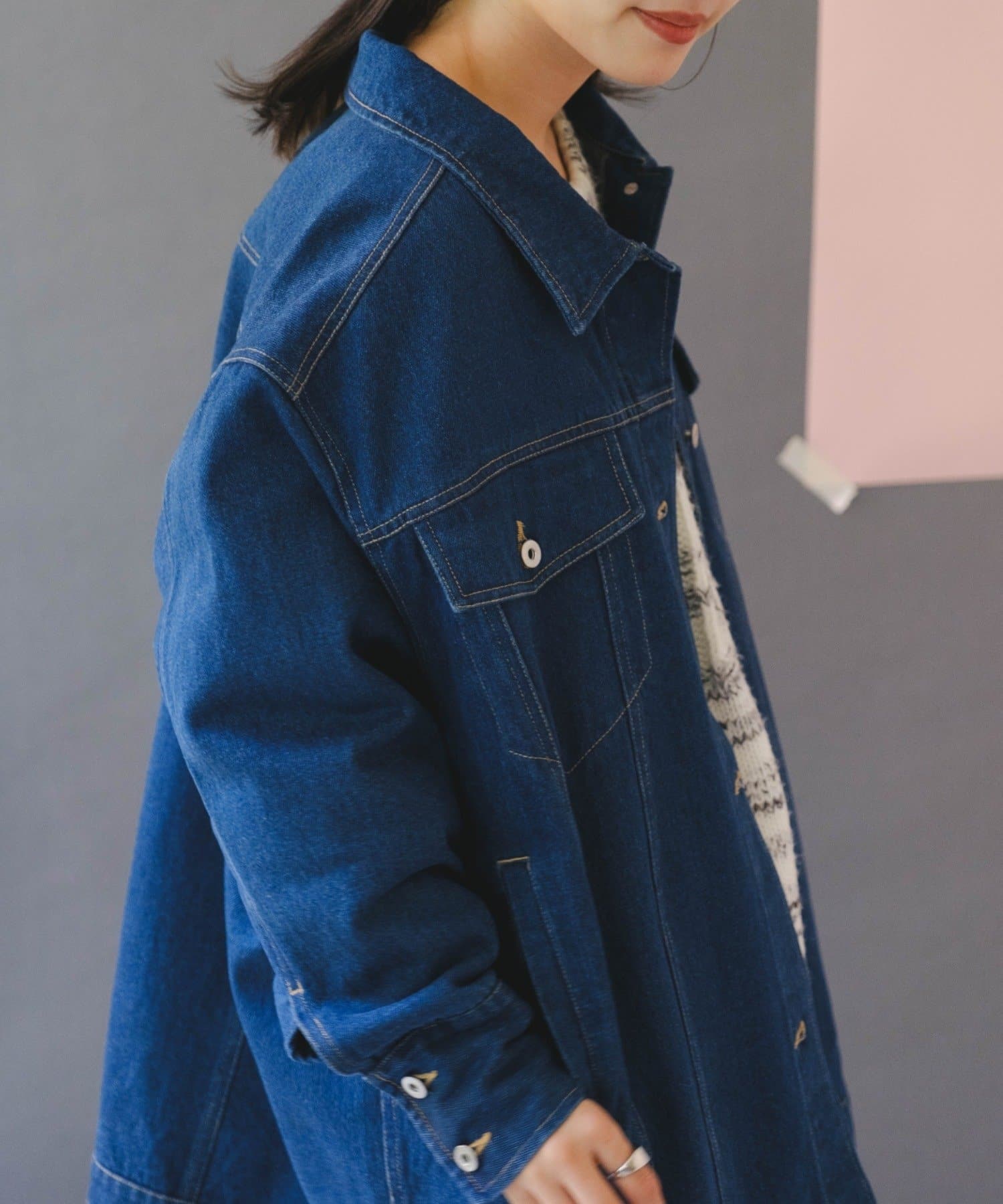 ゆったりとしたデザインが特徴のデニムジャケット。