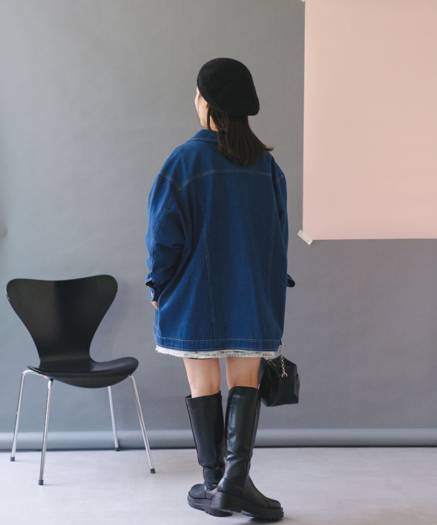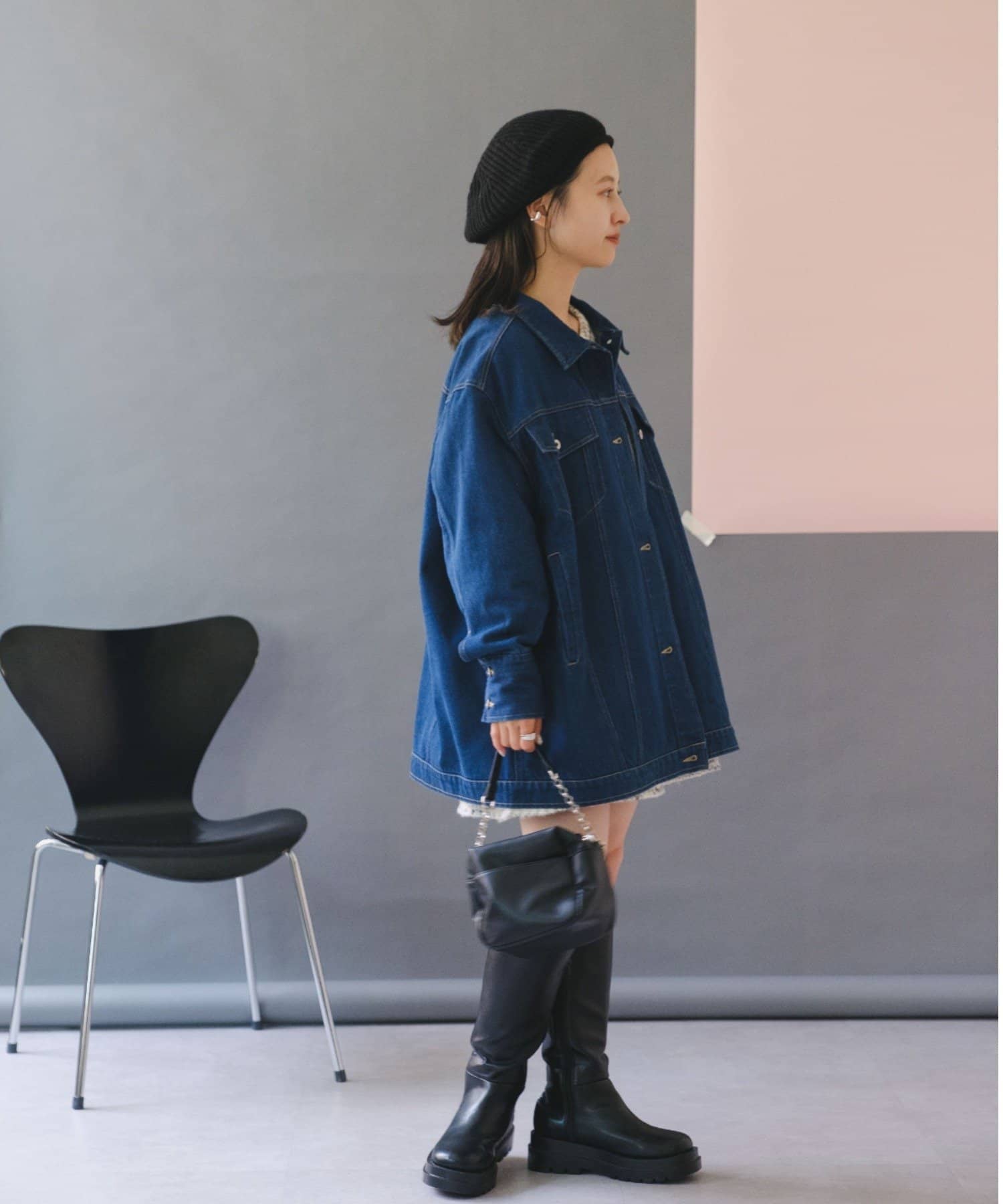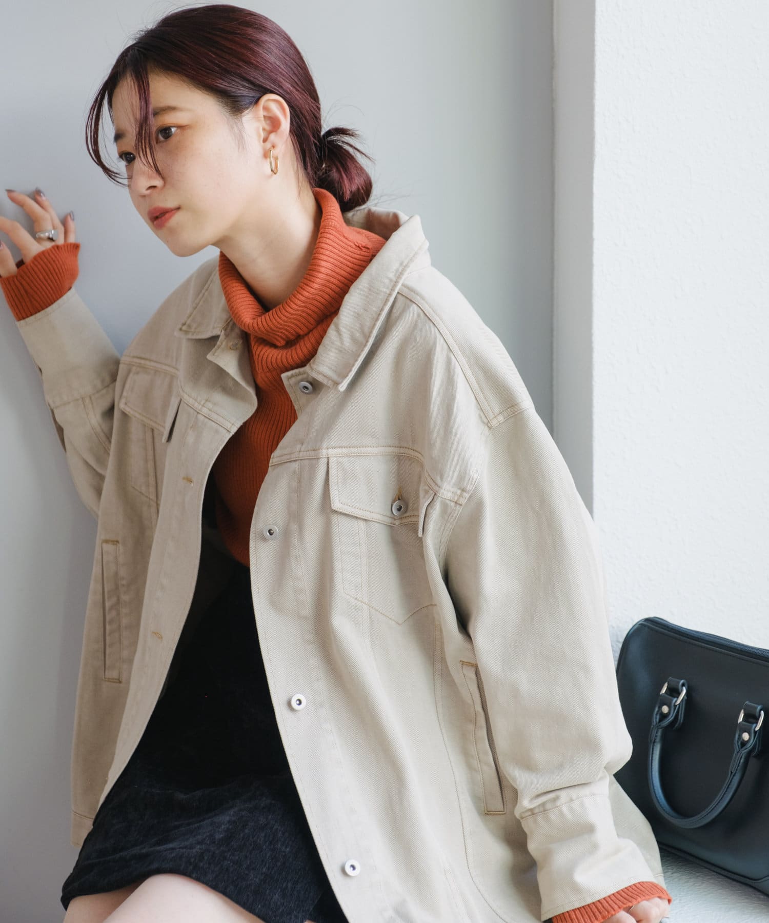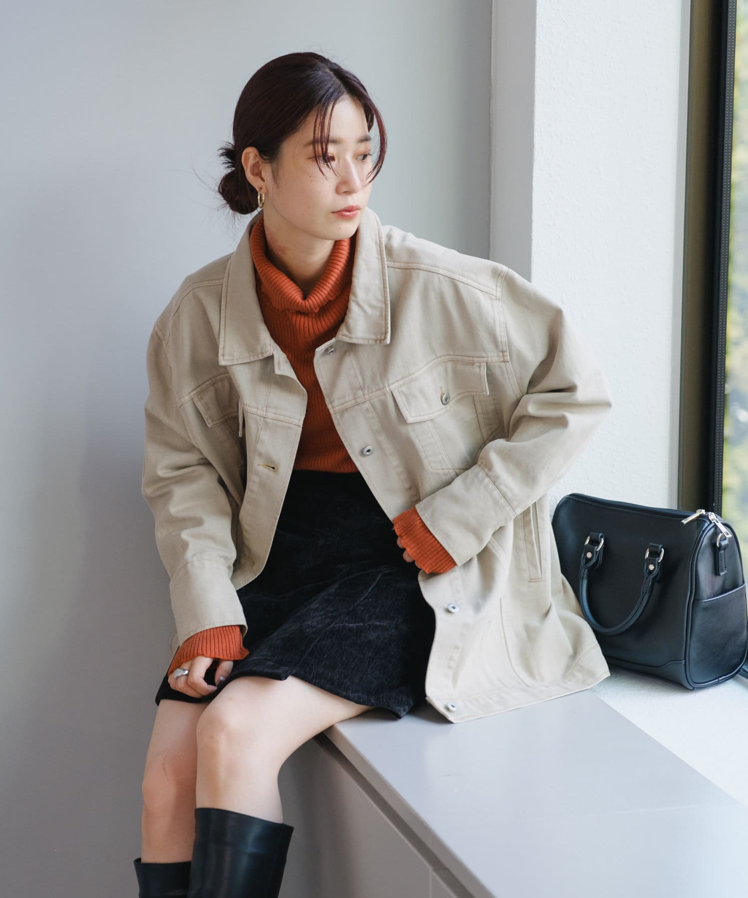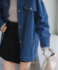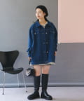 同系色のデニムパンツと合わせるとセットアップ風でもお楽しみいただけます。