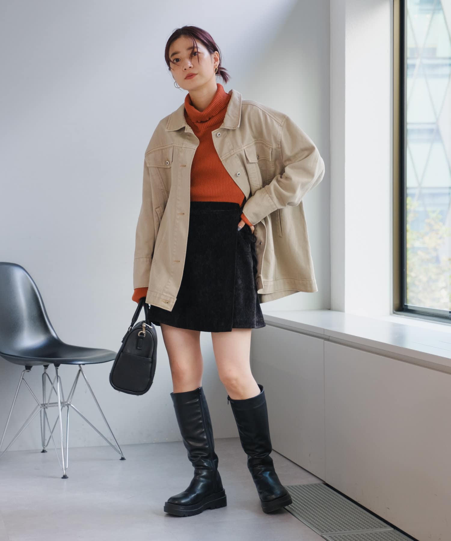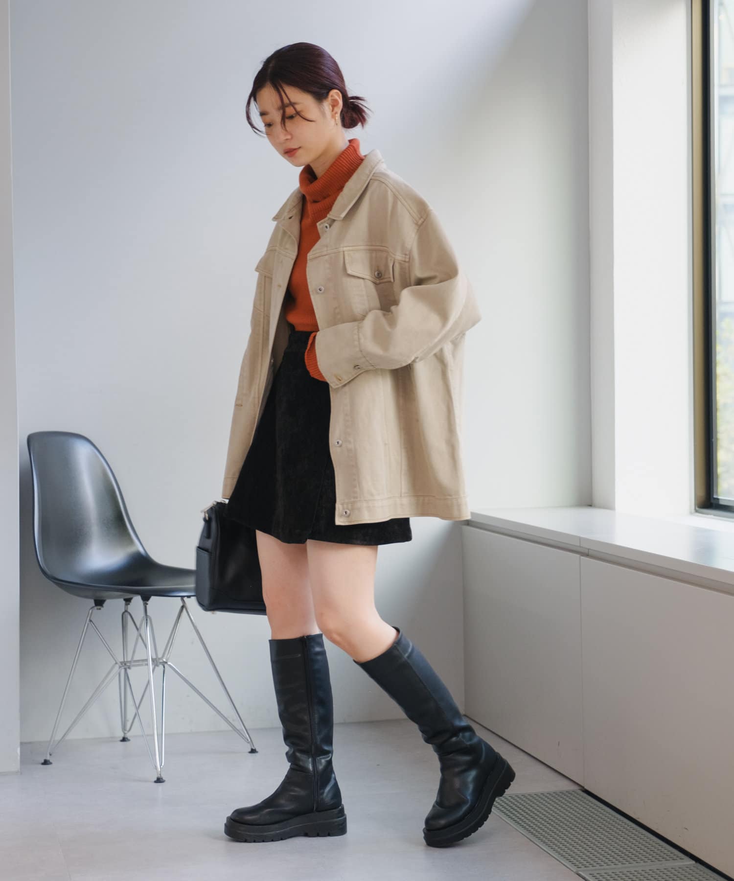 ワンピースなどフェミニンなアイテムやトレンドなミニボトムとも相性抜群。