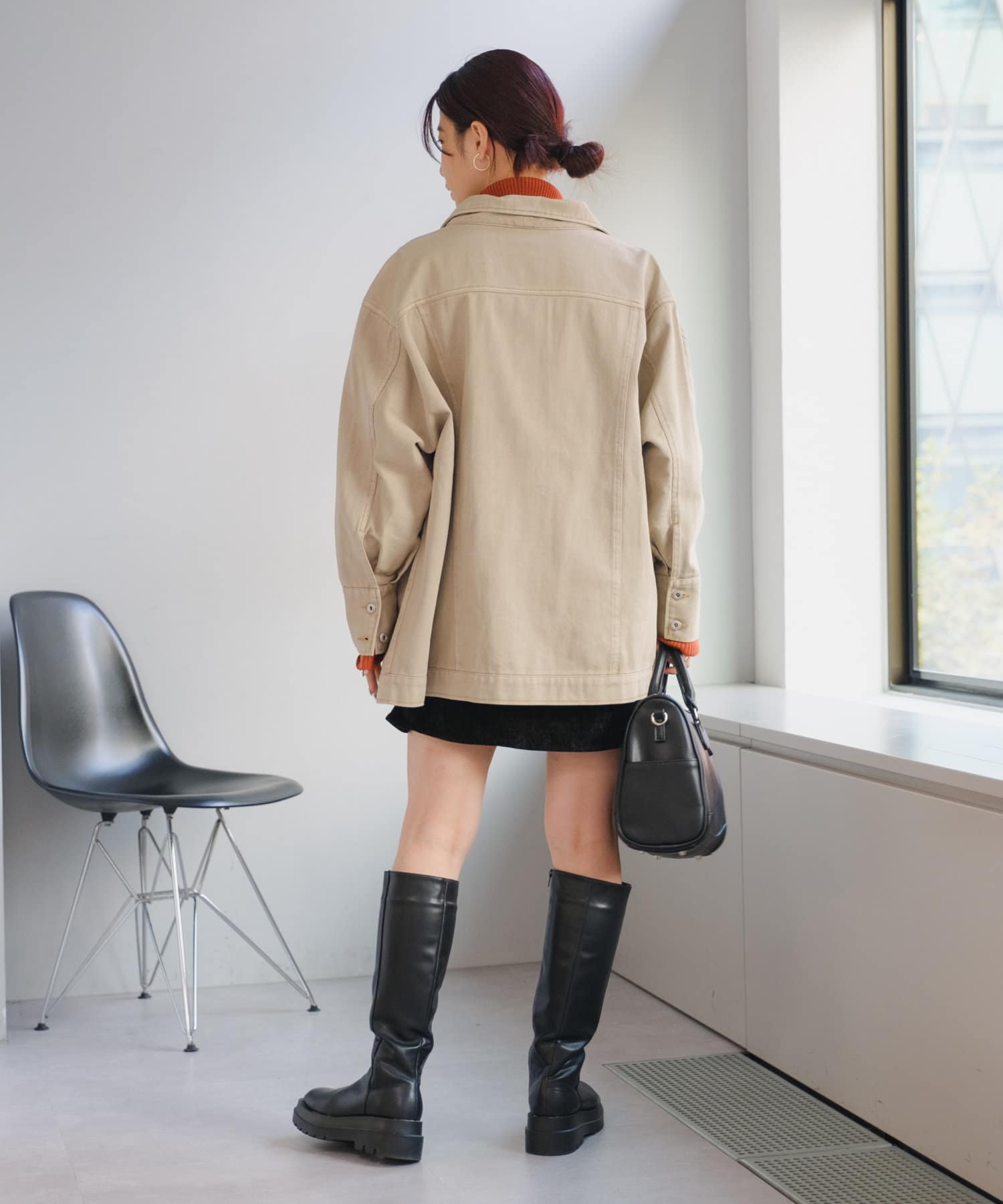 腰回りを隠してくれるサイズ感でアウター感覚で着用いただけます。