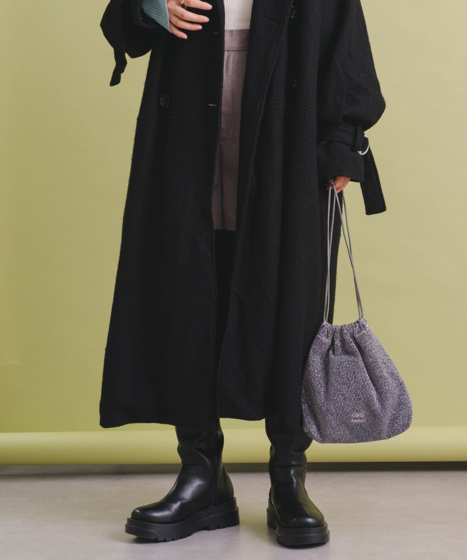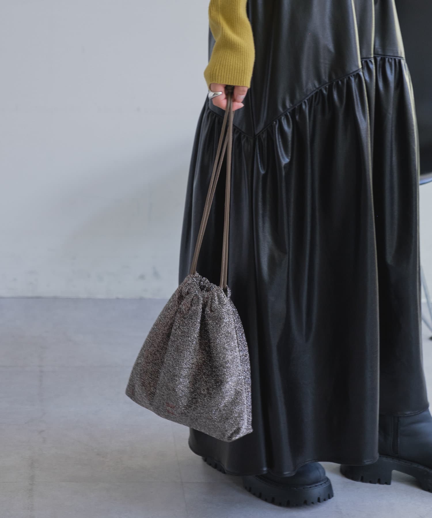 巾着のシルエットでコンパクトなサイズ感なのでコーディネートのポイントとしてぴったり。