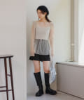 ロング丈のシャツやカーディガンを合わせて、ミニワンピース風に着用していただくのがオススメ。