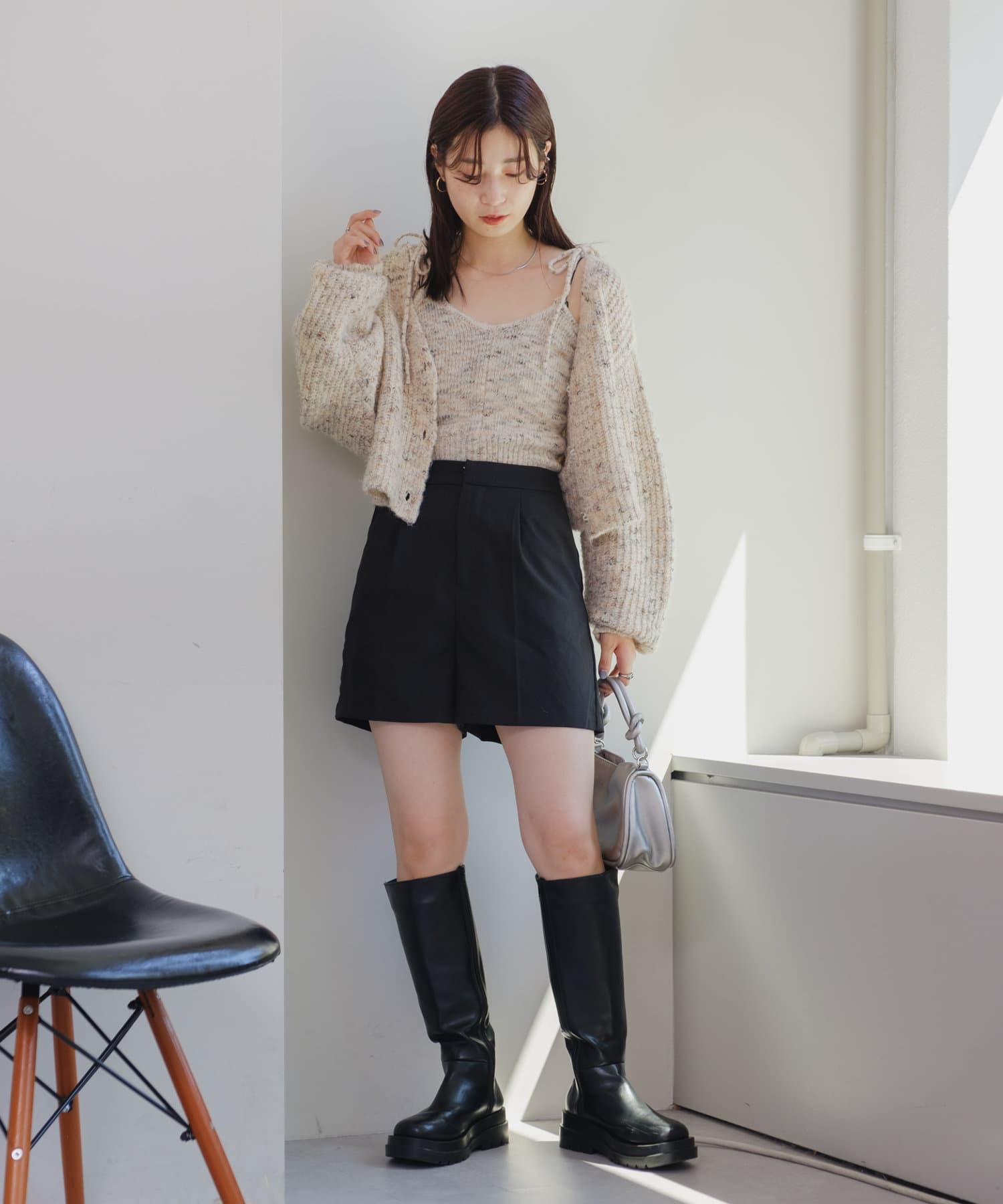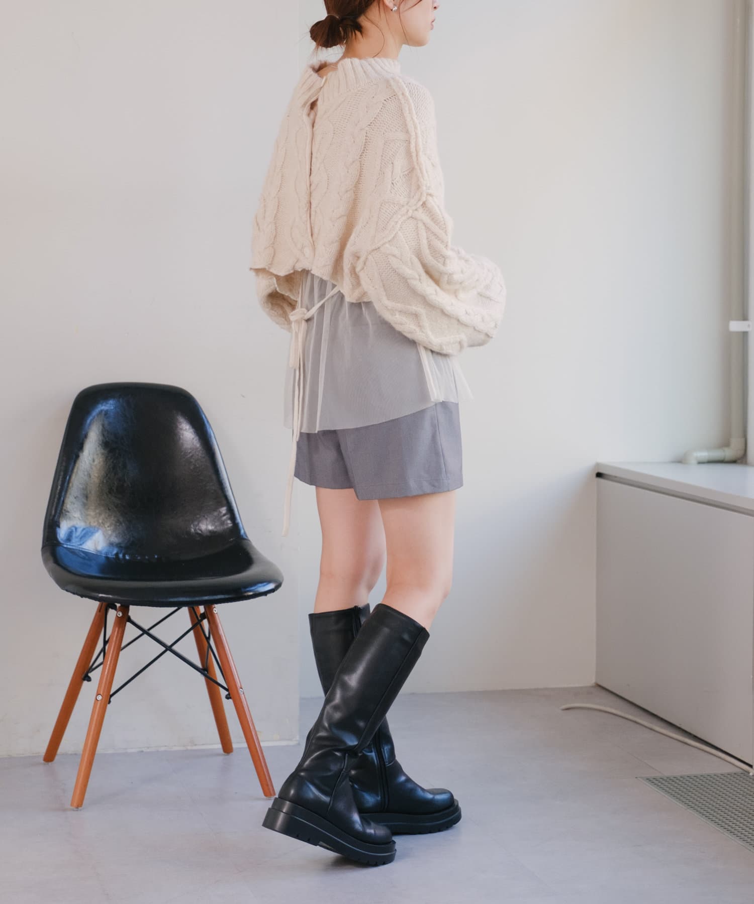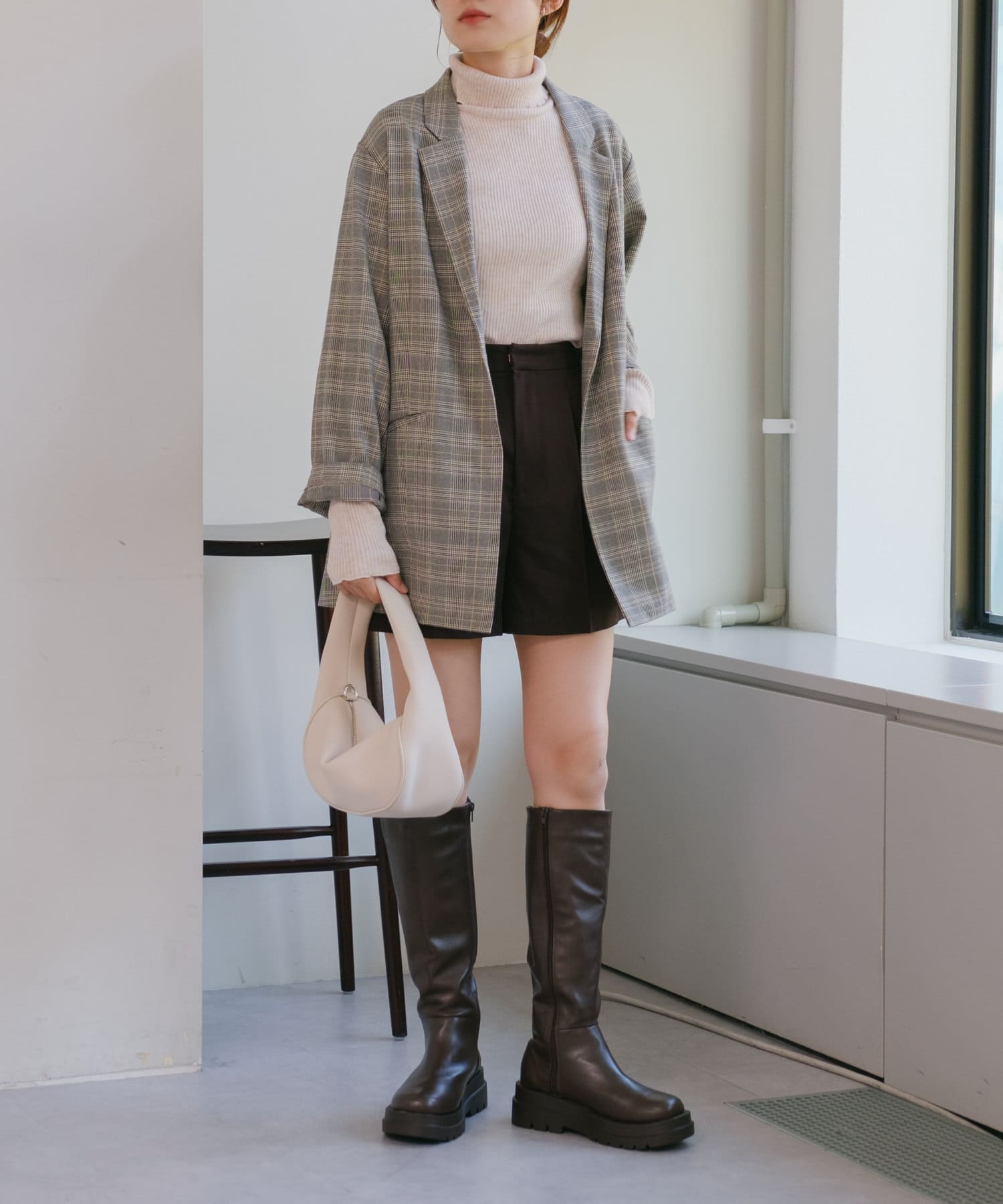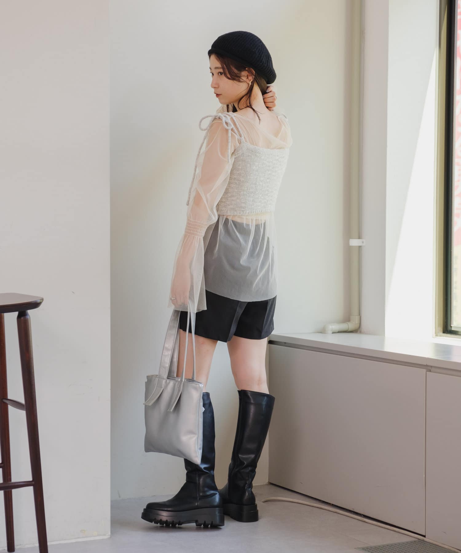 足元はロングブーツやミドルブーツは継続で、ソックス×スニーカーの合わせも新鮮に着て頂けます。