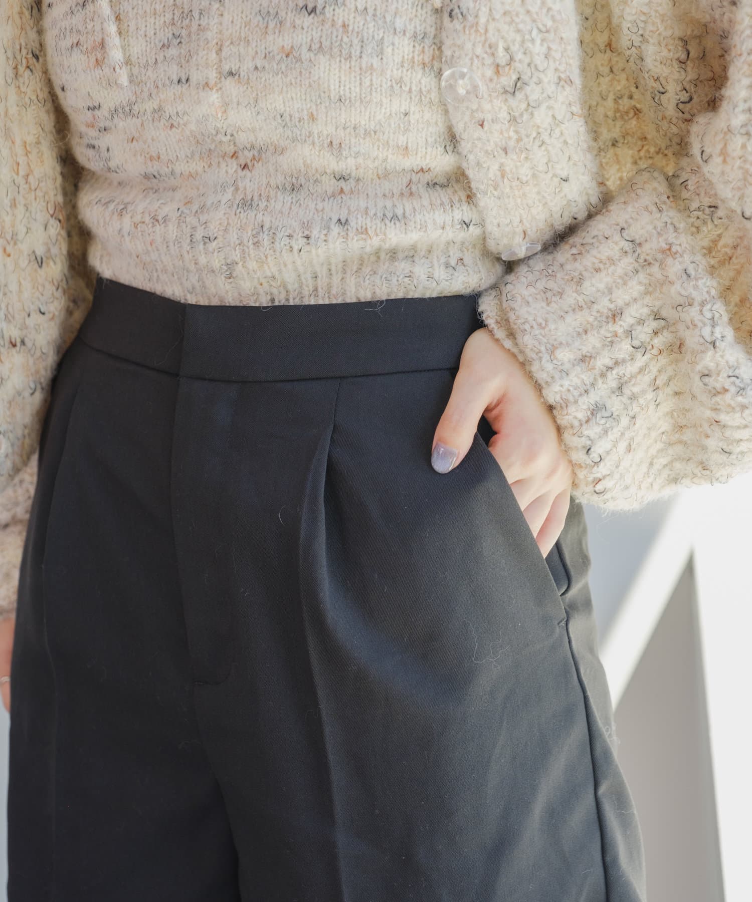 キレイめなタックパンツをツイル素材でカジュアルダウンに。