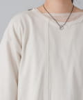 ワイドな身幅と程よく空いた首周りで抜け感ある印象に。