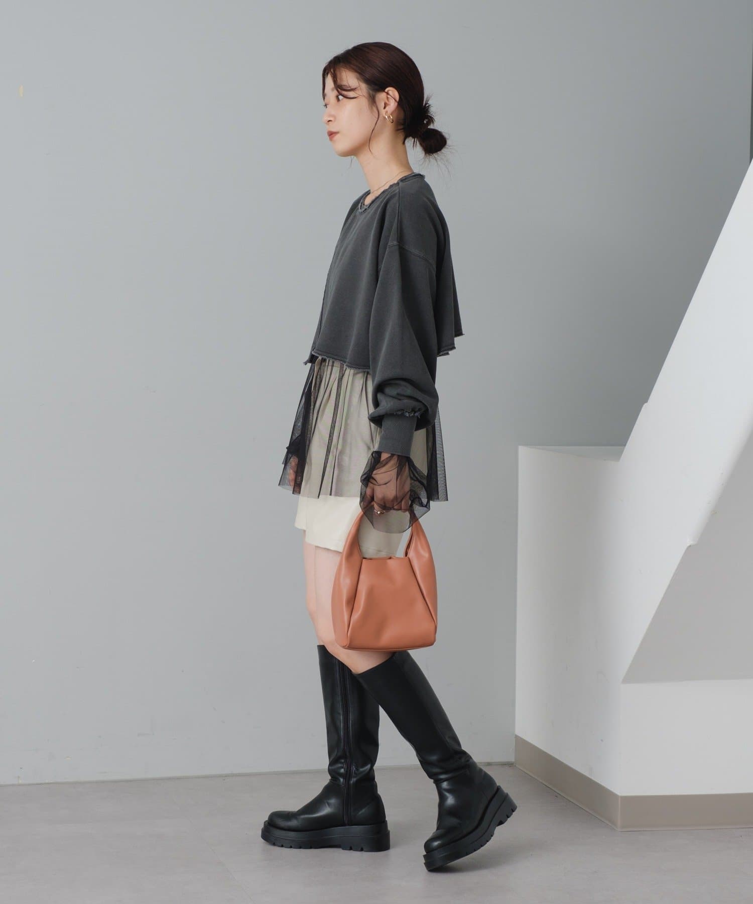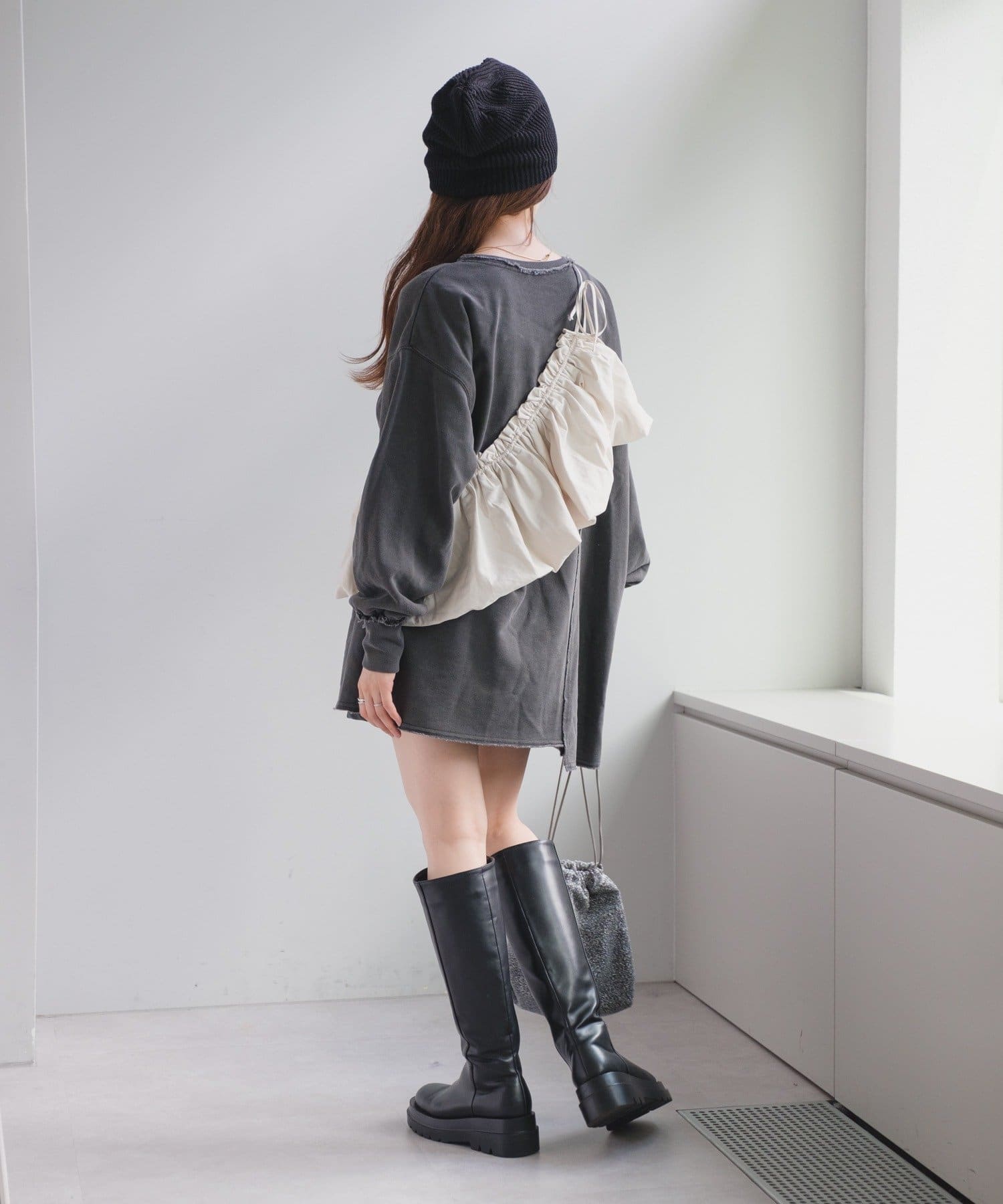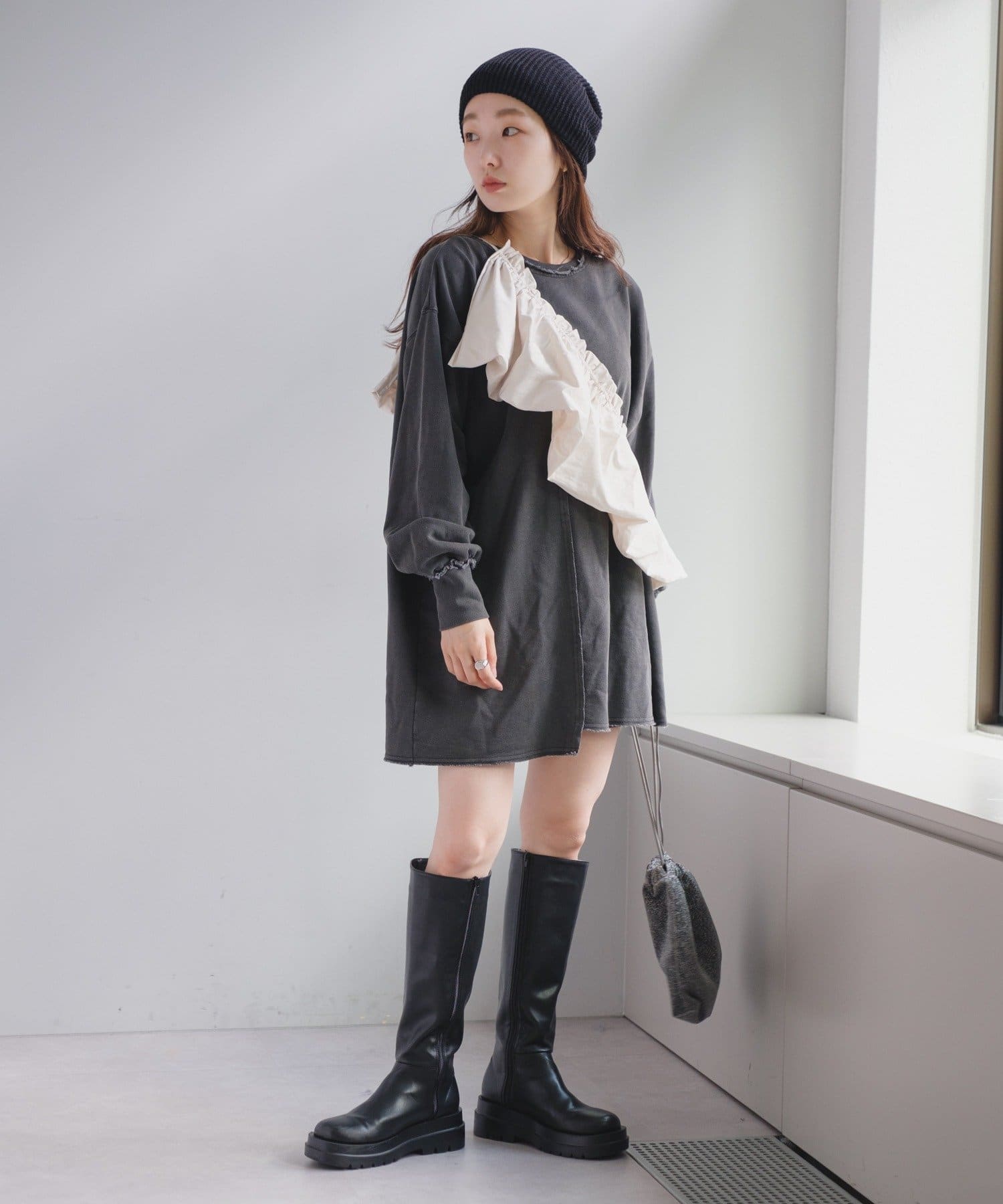 Mサイズはミニボトムにボリュームあるミドルブーツやロングブーツ合わせがおすすめ。