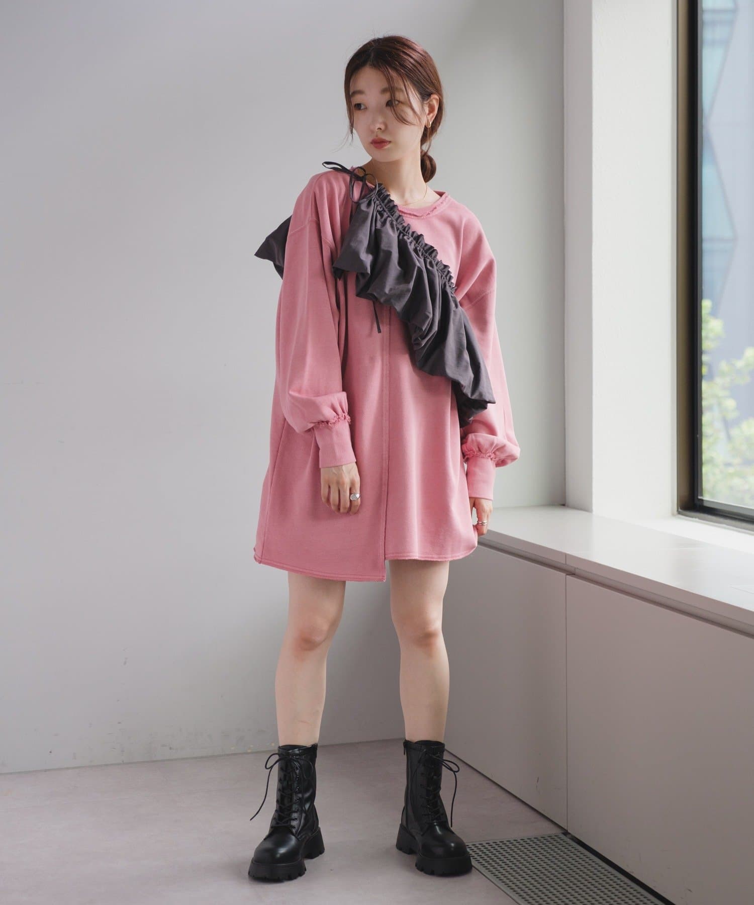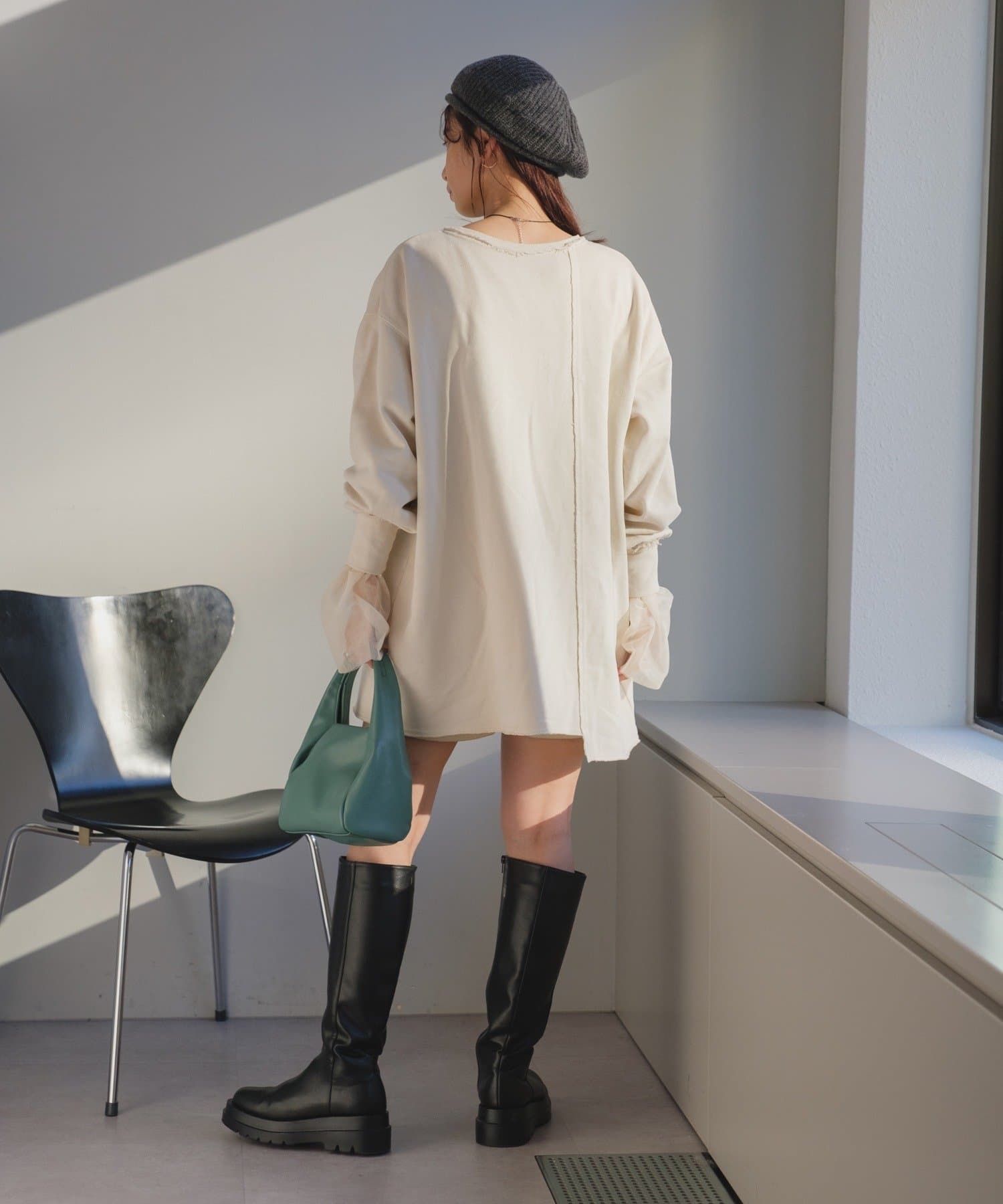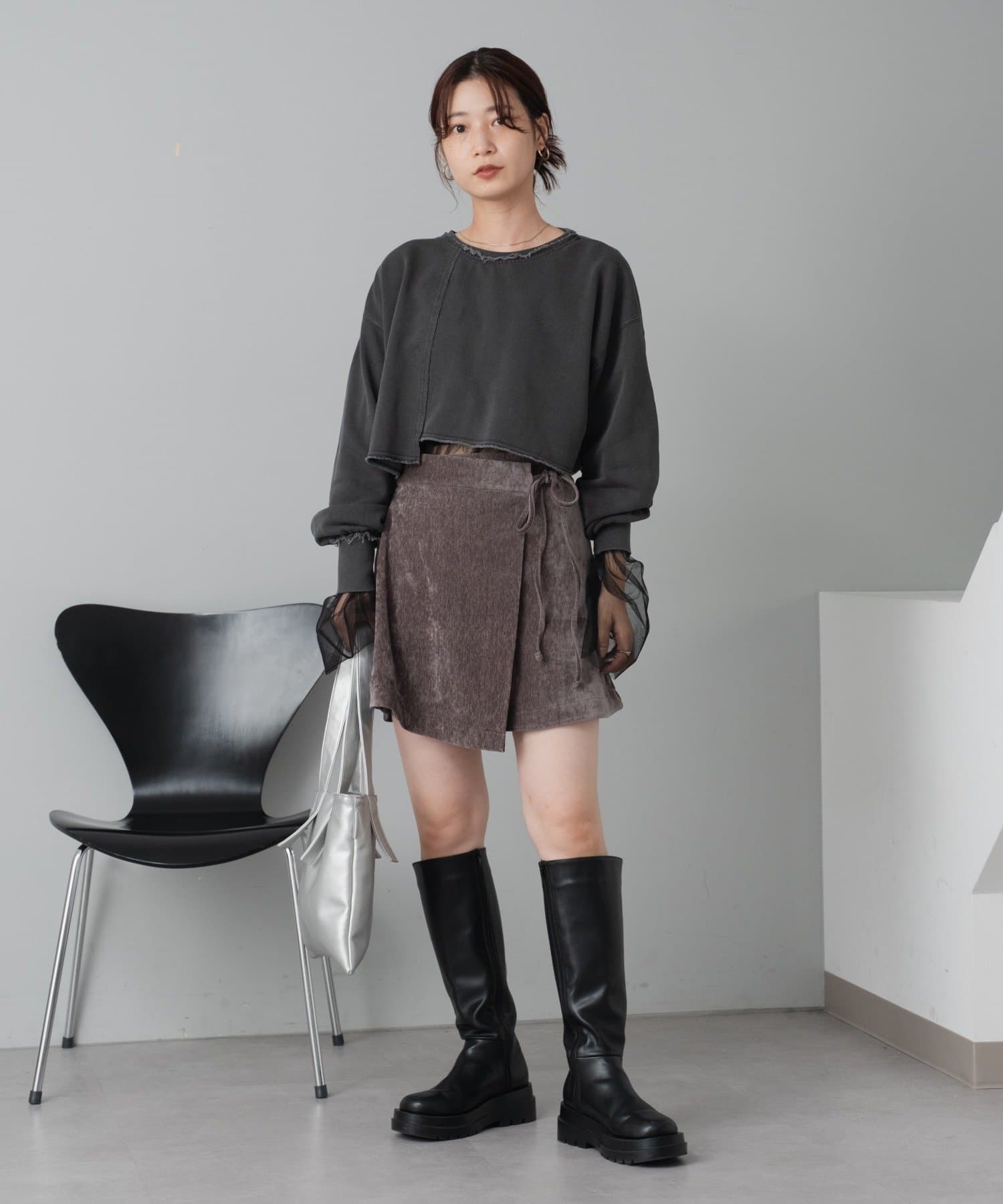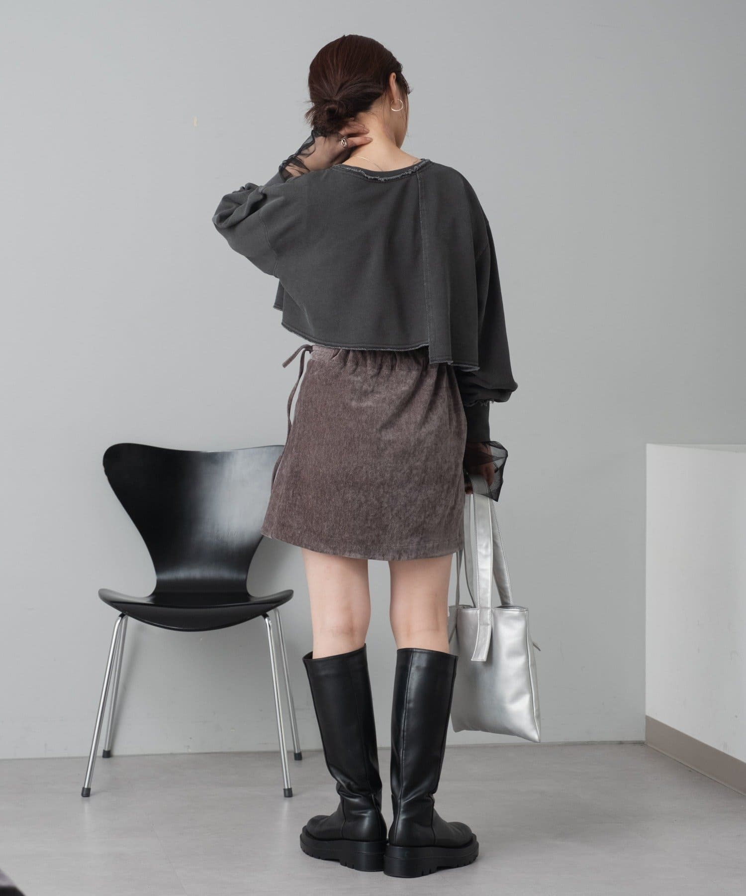 Mサイズはミニボトムにボリュームあるミドルブーツやロングブーツ合わせがおすすめ。