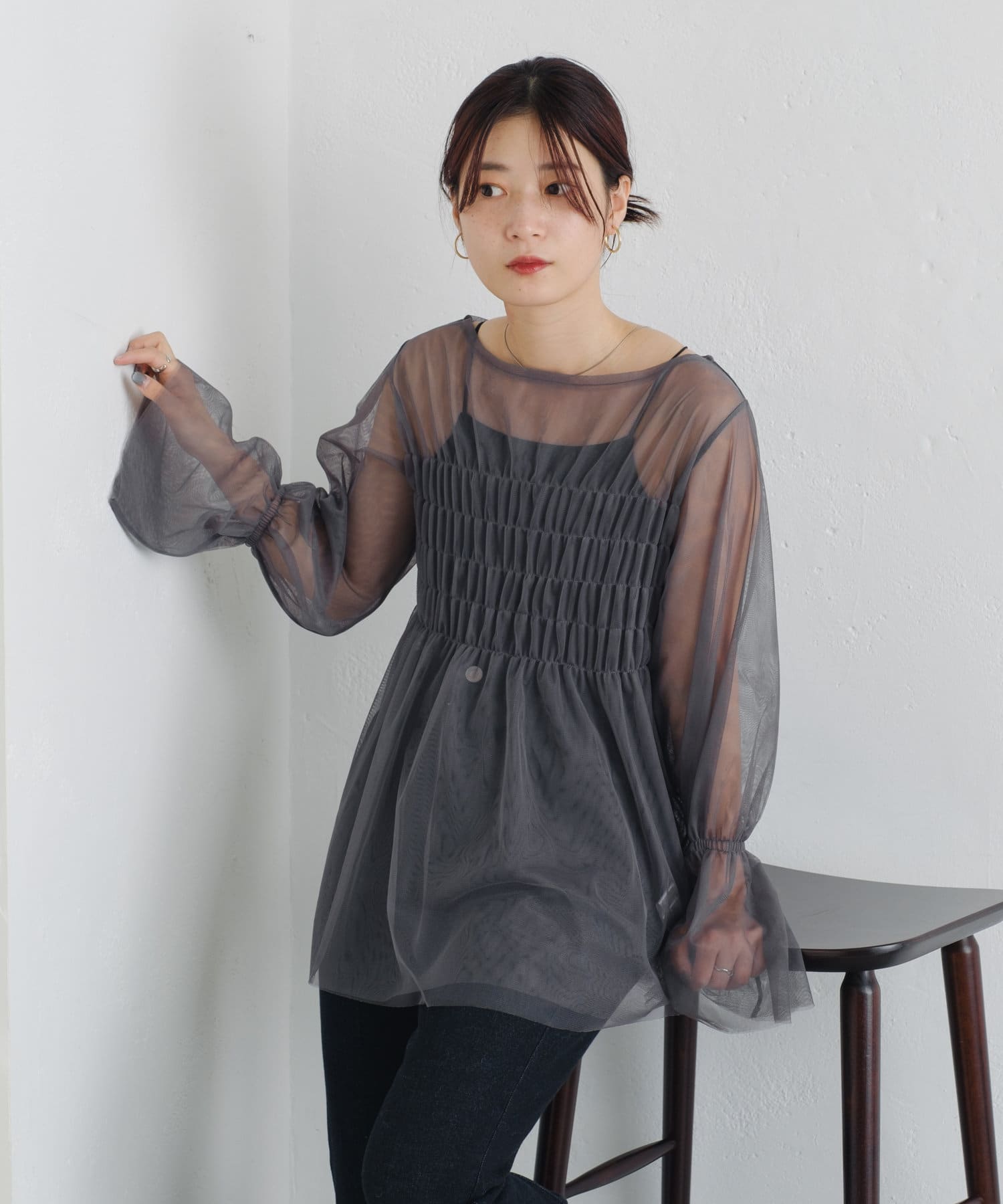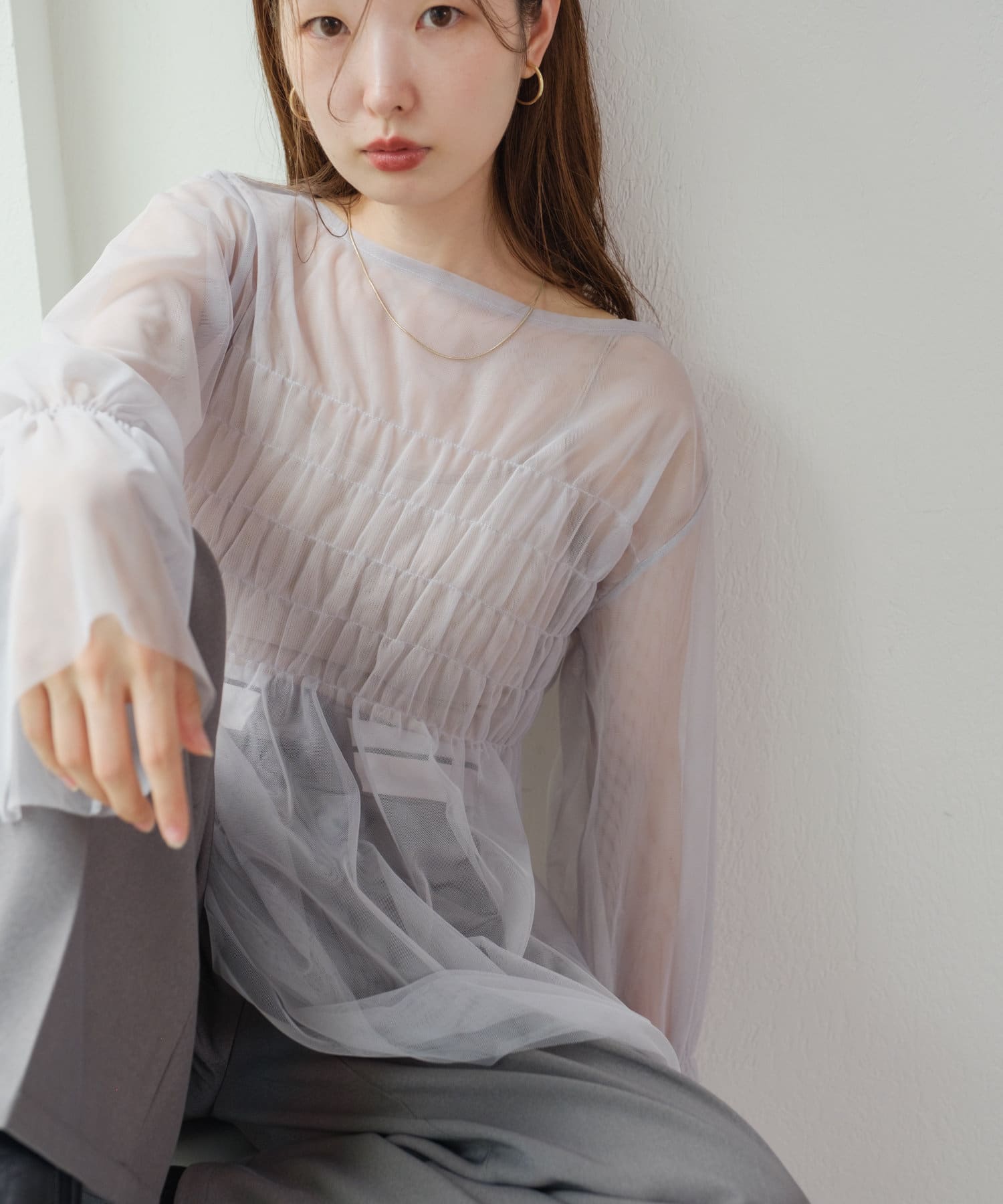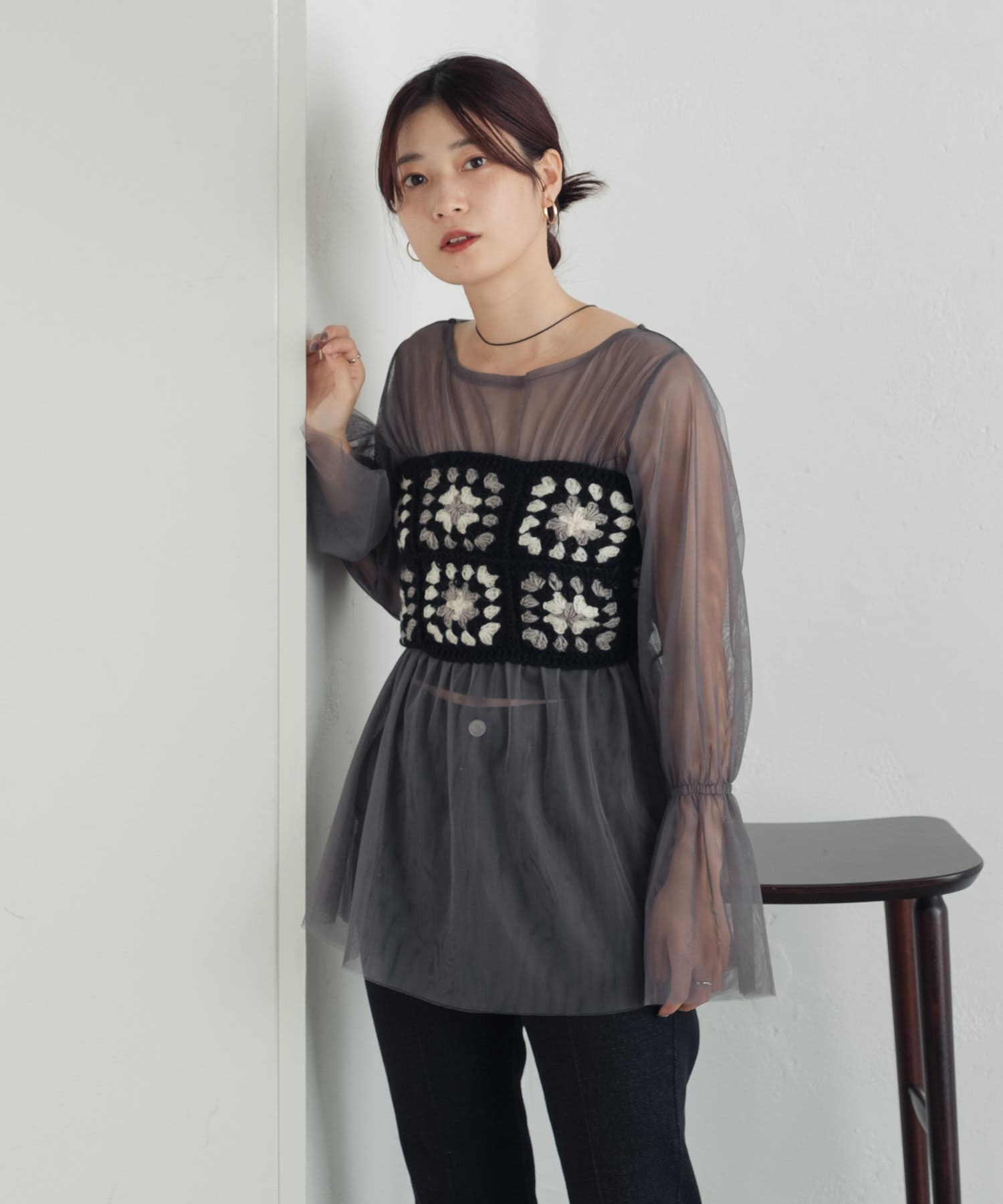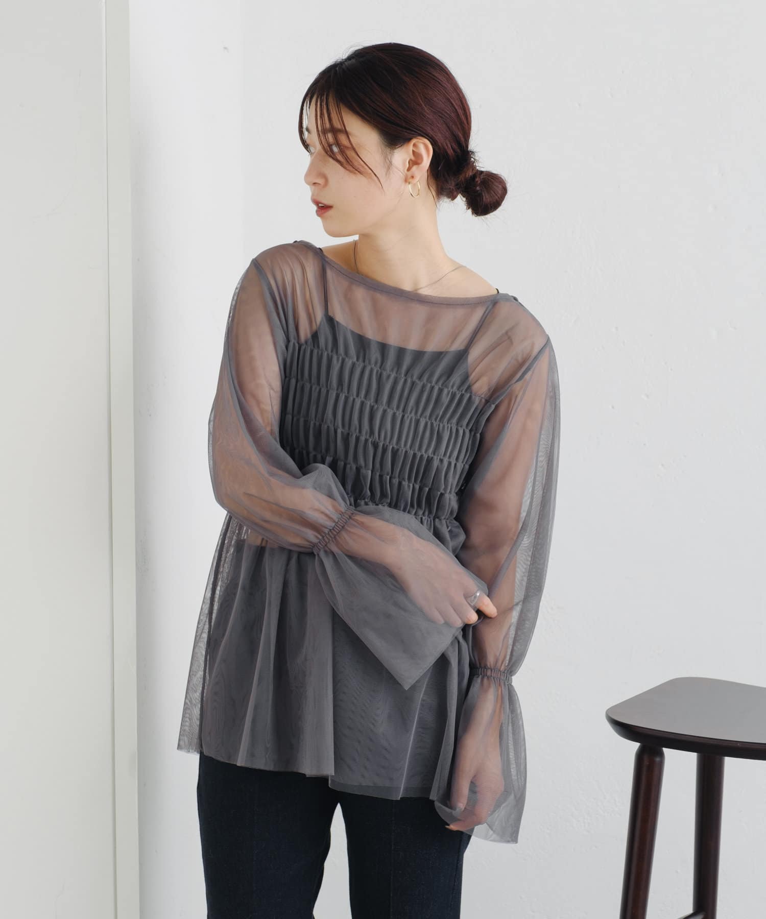 一枚持っていたら間違いなし!トレンドのチュールトップス