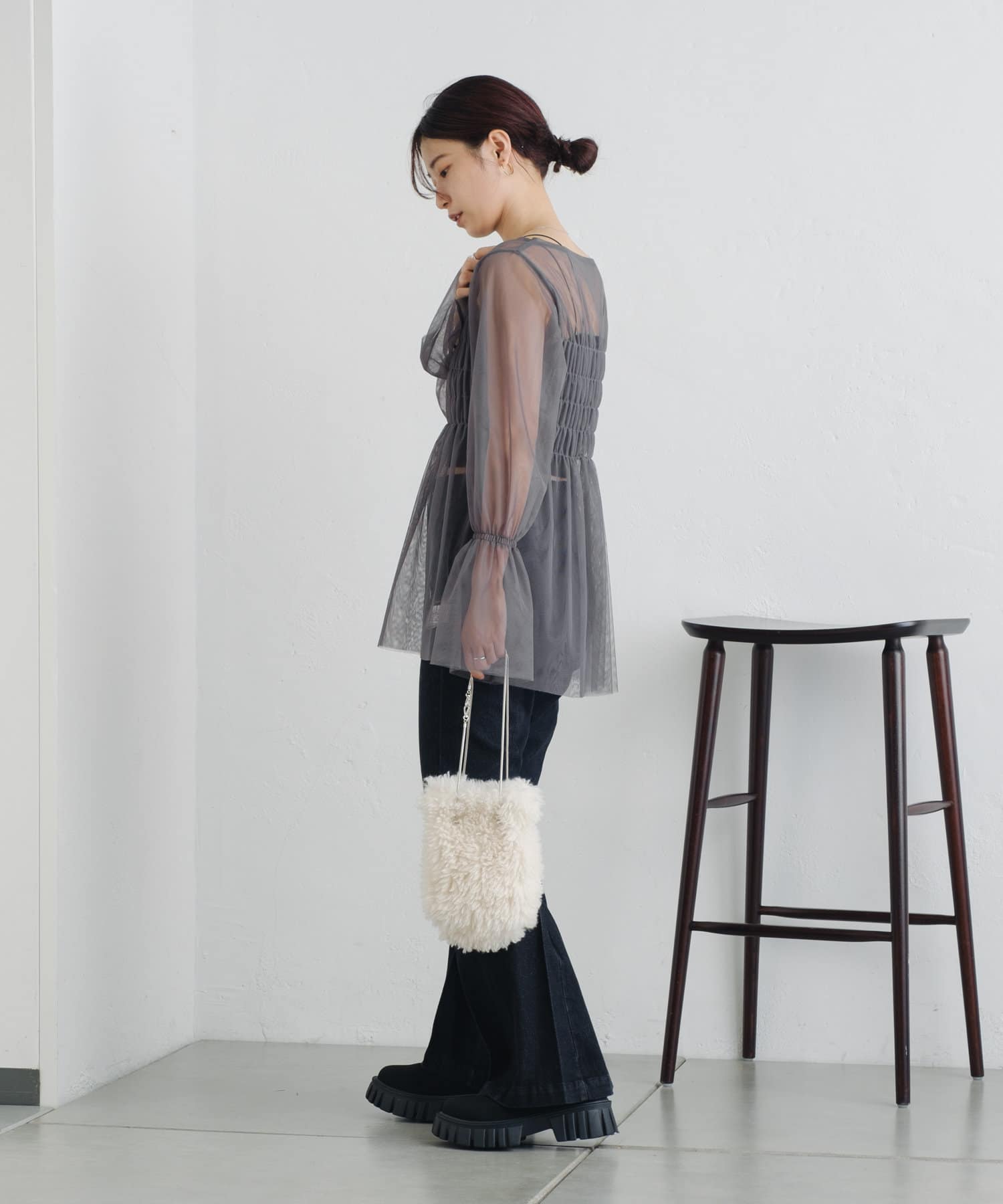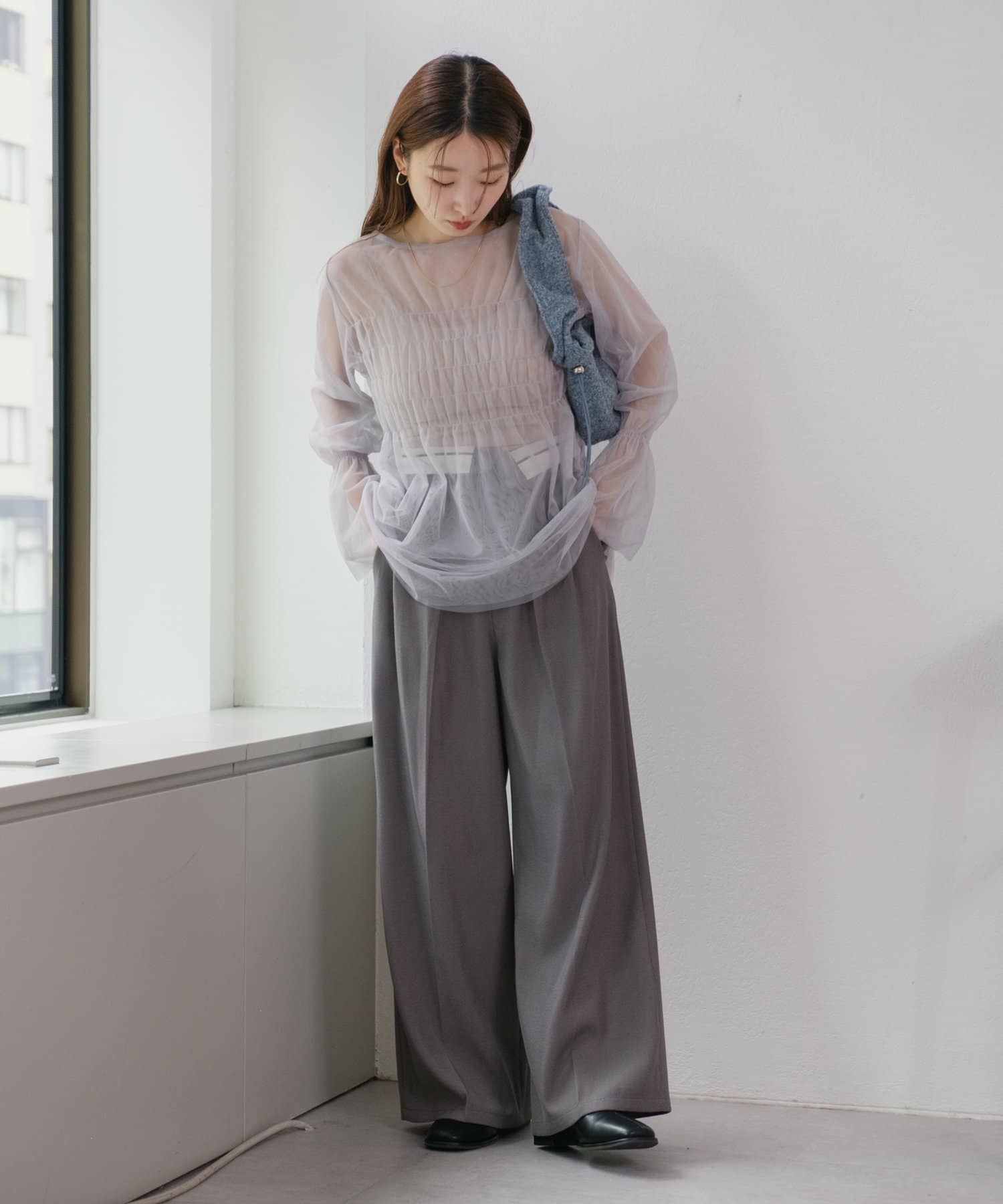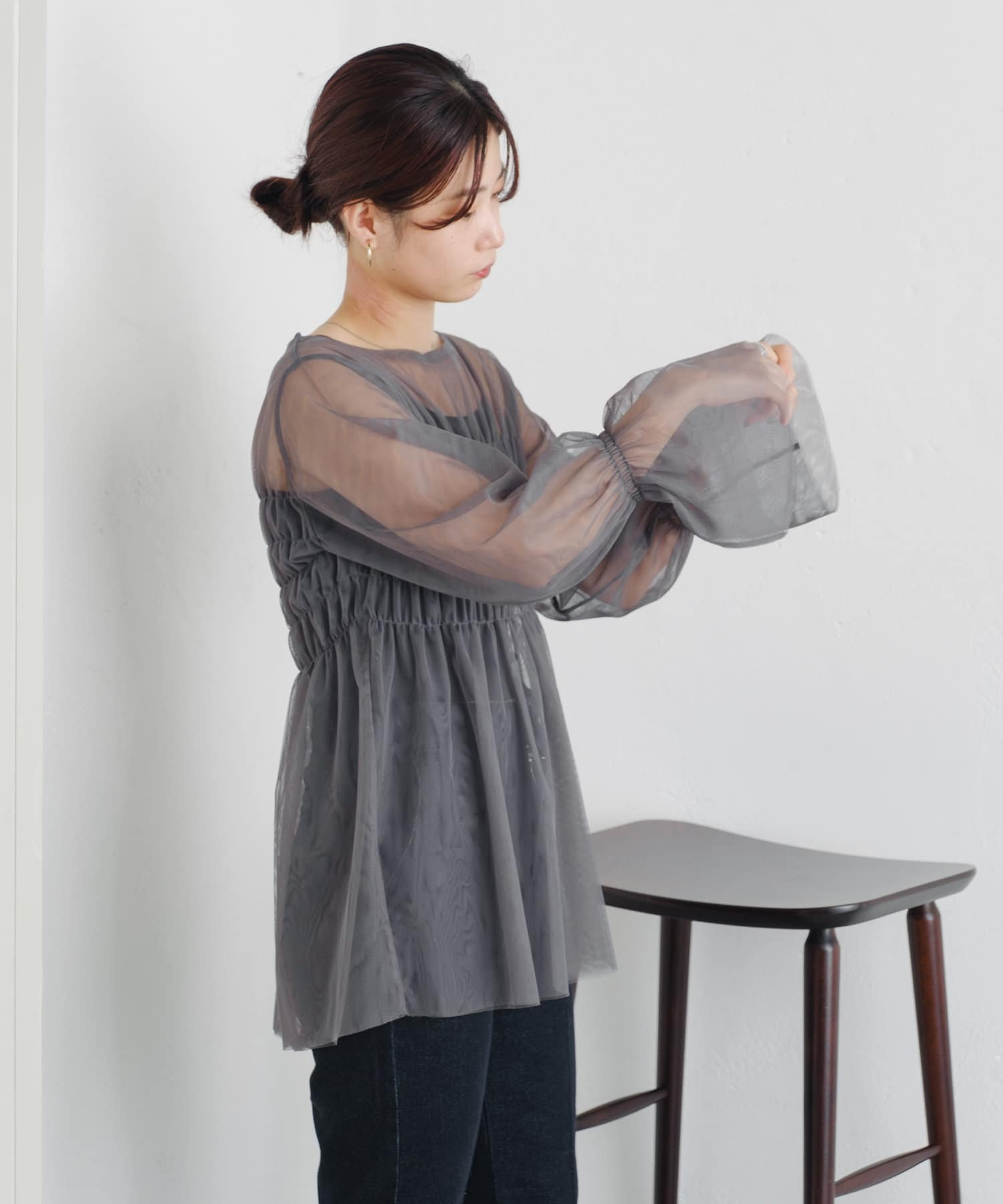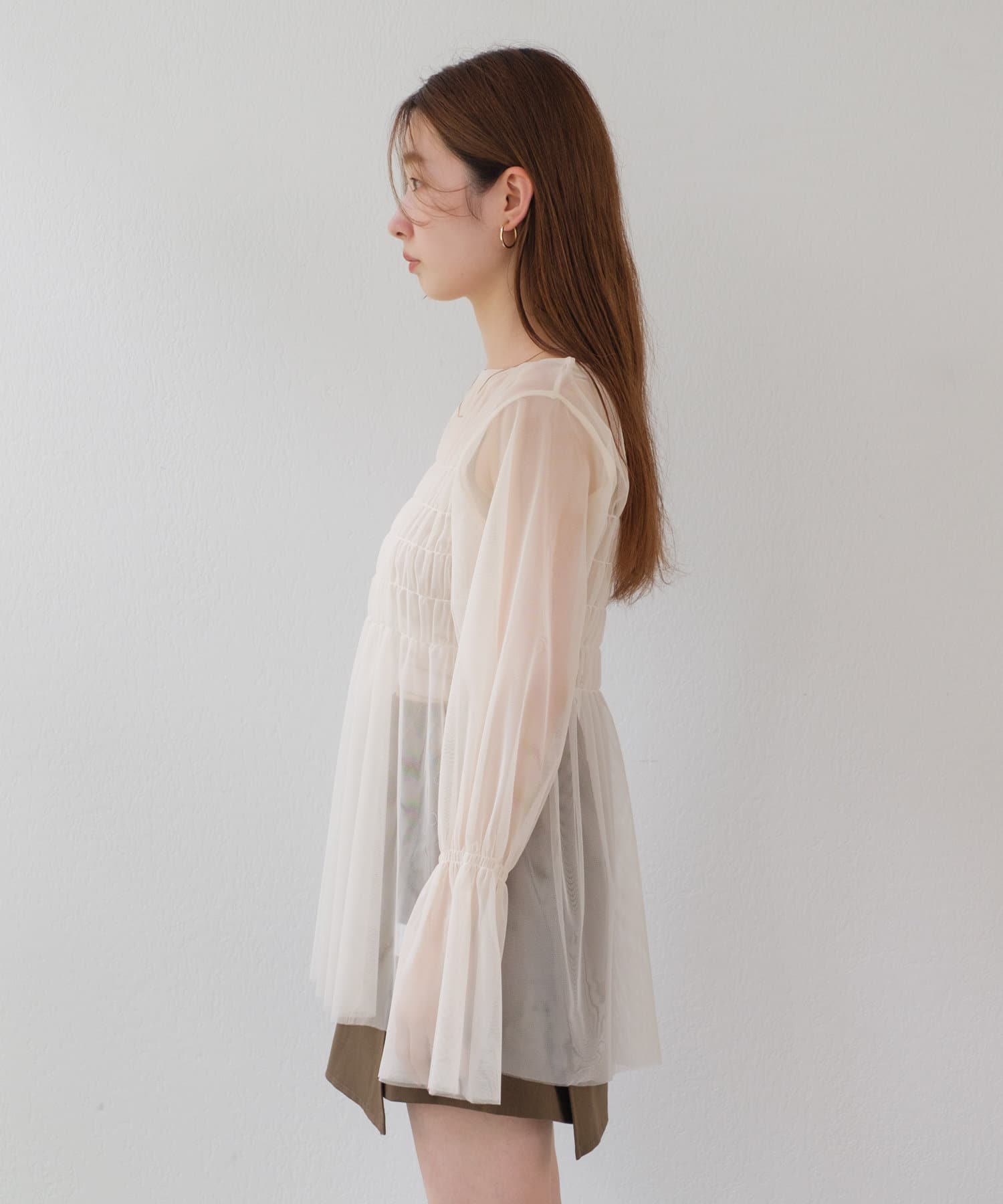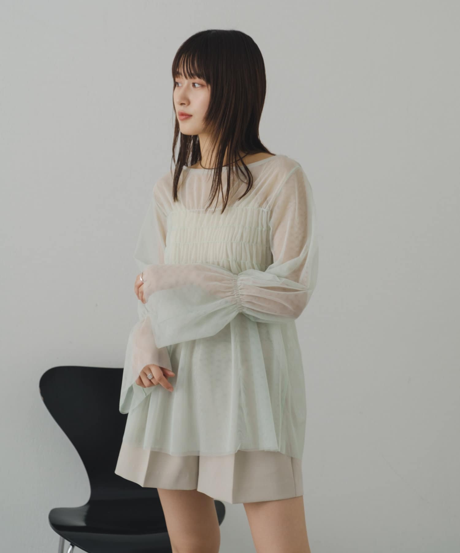 • Kastane(カスタネ) 【新色追加/4色展開】シャーリングダブルチュールTEE