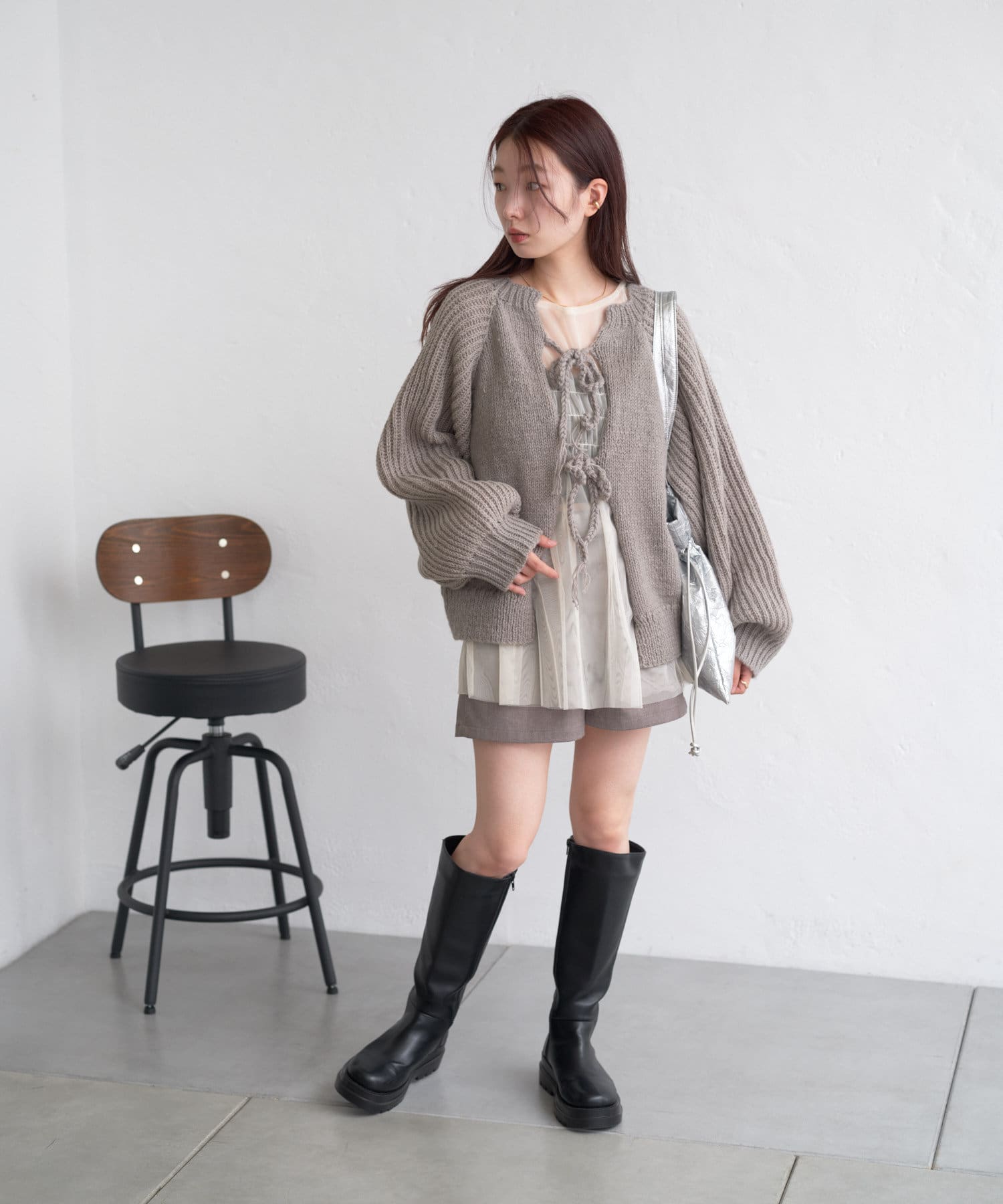 ジャケットやニットのインナーとして重ねていただくと、トレンドの着こなしに。
