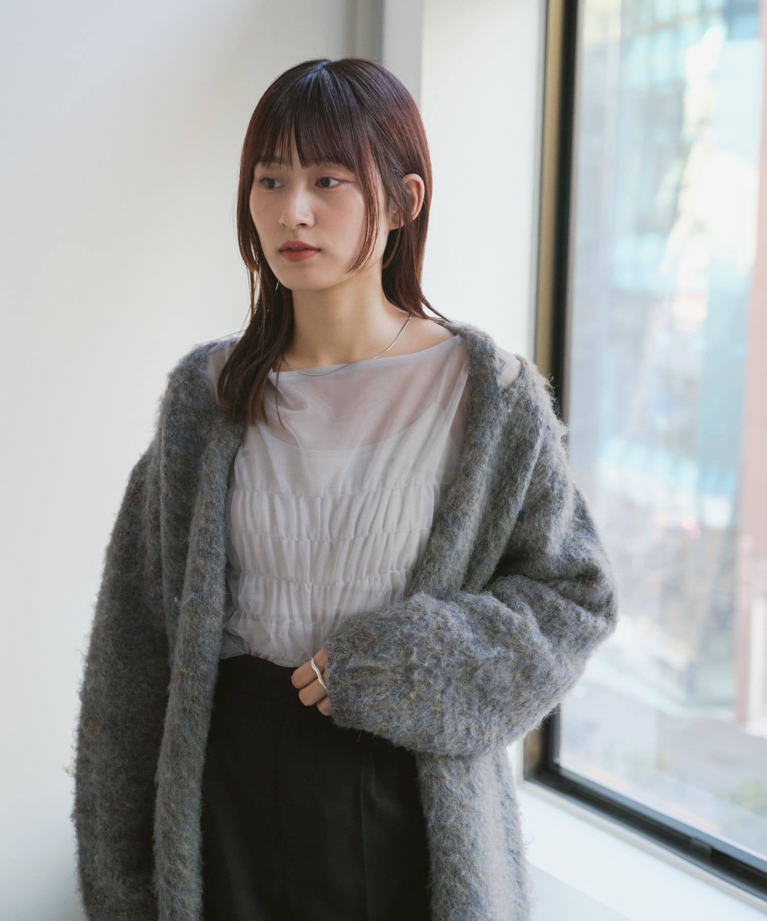 様々なアイテムとレイヤードできるので、持っていたら間違いなしのアイテムです。