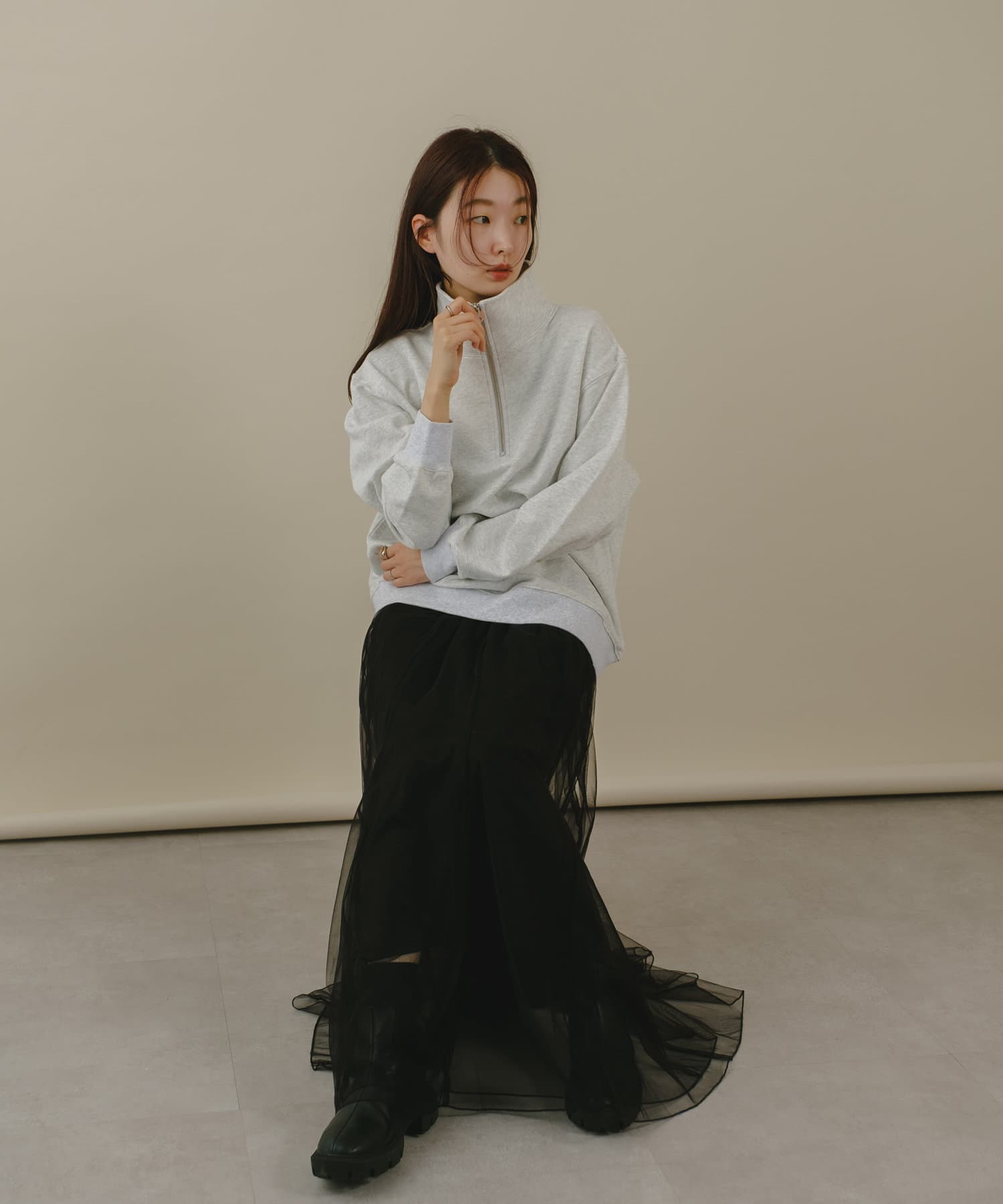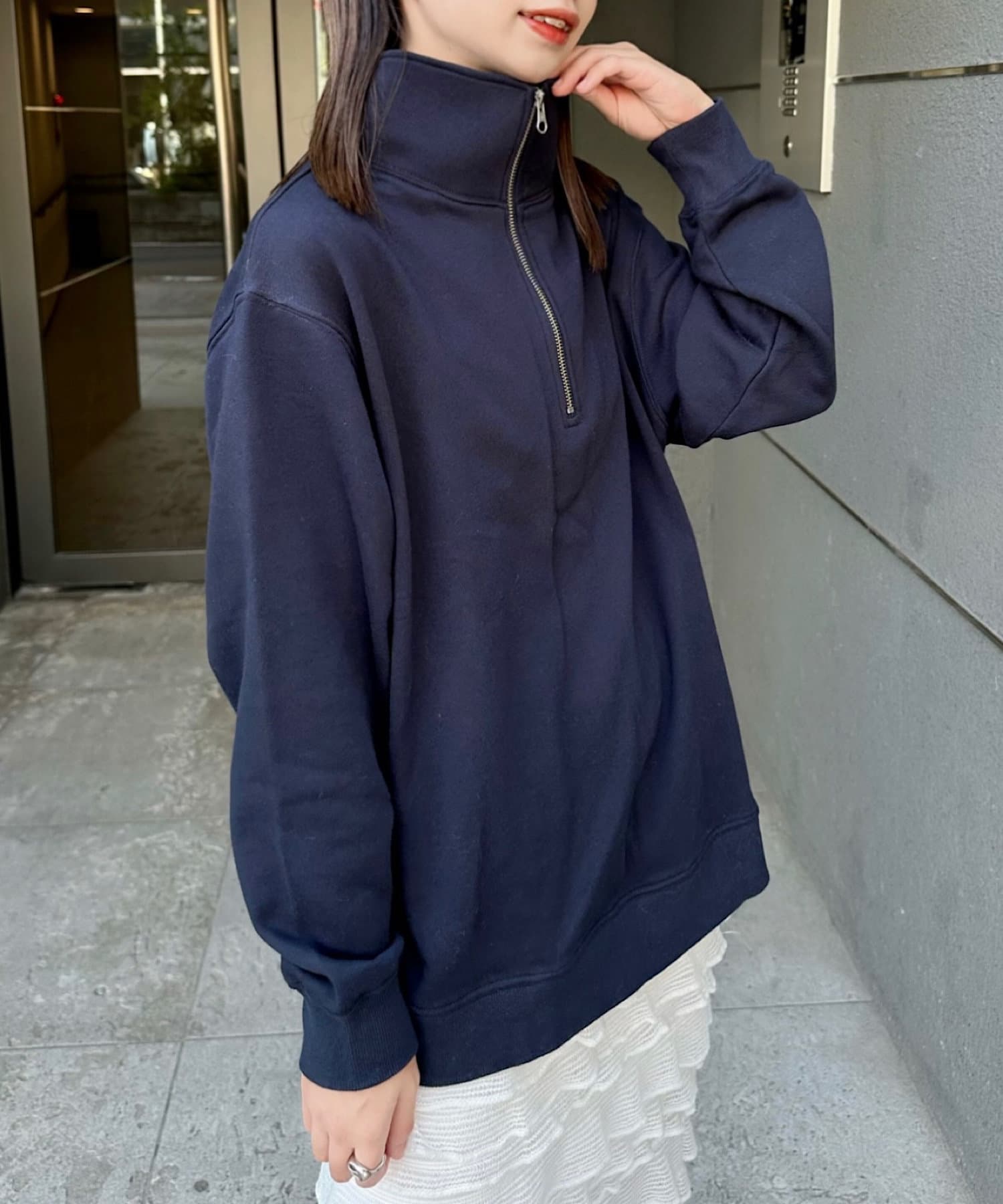 トレンドのハーフジップで首元の雰囲気を変えて着用いただけます。
